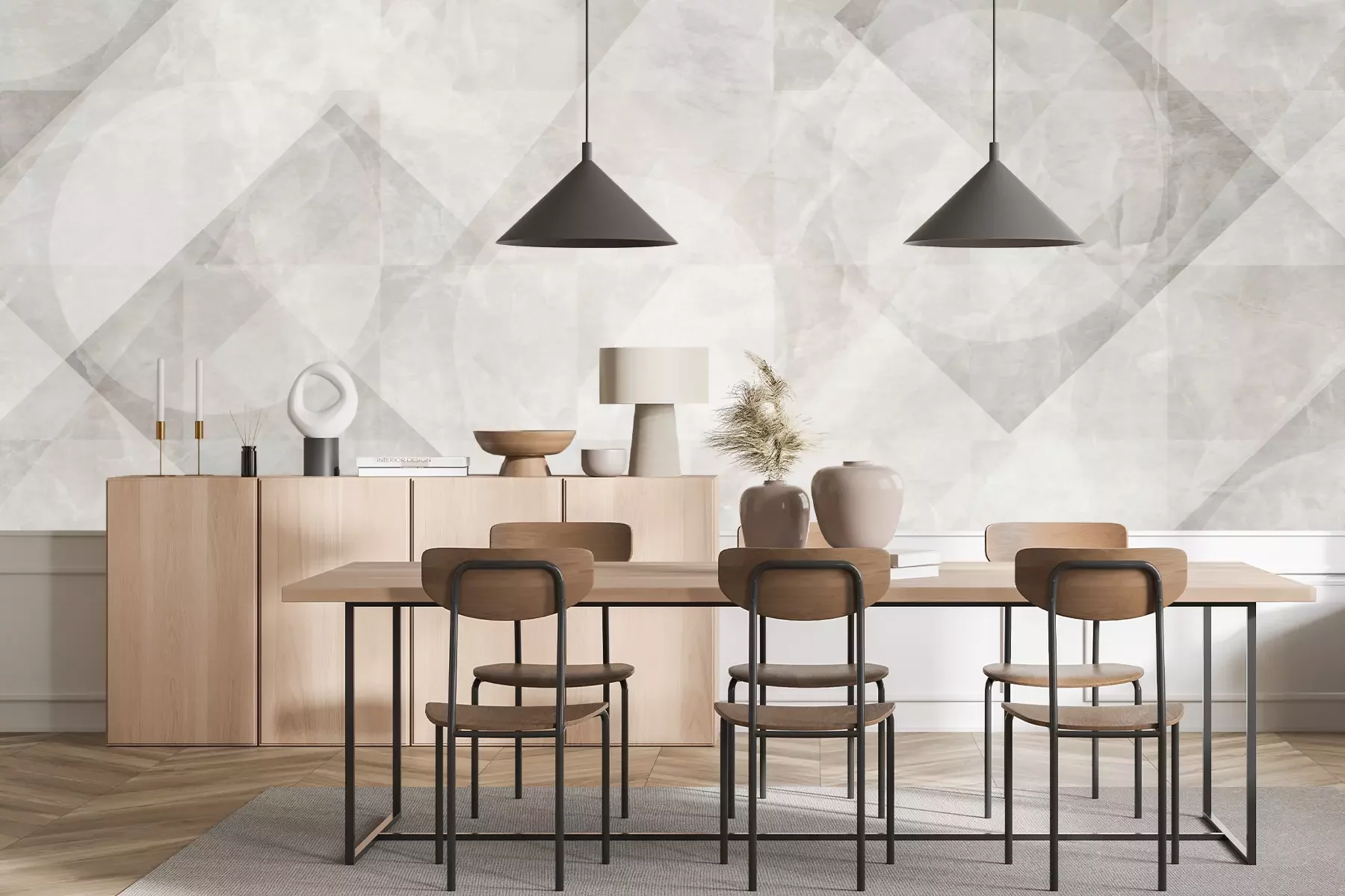 Het materiaal Standard is een hoogwaardig latexmateriaal met een glad, mat oppervlak. Dankzij de HP Latex-printtechnologie zijn de kleuren intens, duurzaam en UV-bestendig, waardoor het patroon jarenlang een onberispelijke uitstraling behoudt. Vervuilde oppervlakken kunnen voorzichtig worden afgeveegd met een droge doek. De maximale breedte van één baan bedraagt 95 cm of 105 cm – afhankelijk van de bestelde fotobehangbreedte. Bij grotere afmetingen wordt het patroon verdeeld over meerdere gelijkmatige banen. Het fotobehang wordt rand-aan-randaangebracht, wat vrijwel onzichtbare naden mogelijk maakt.