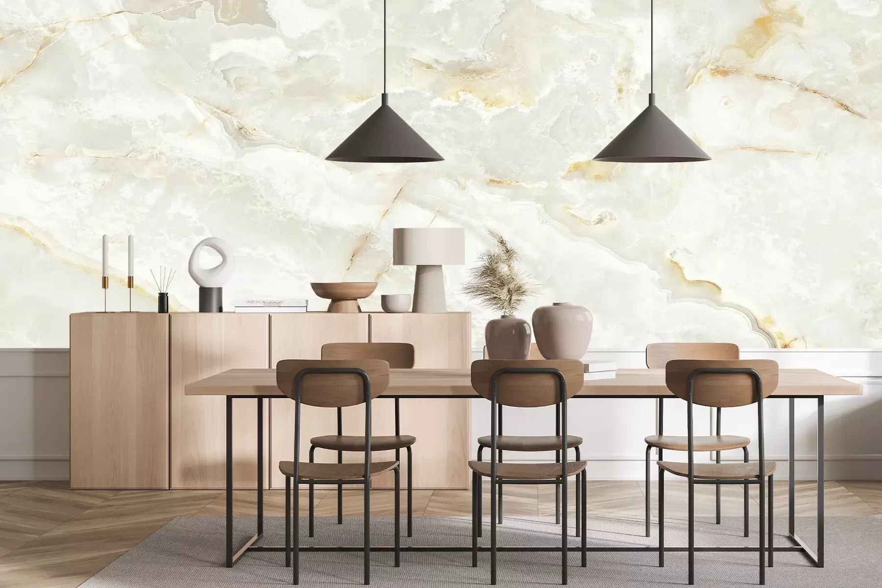 Het materiaal Premium+ is een gestructureerd vinyl op vlies met een gewicht van 255 g/m², dat kleine oneffenheden in de muur effectief camoufleert. De subtiele structuur van fijn zand geeft het oppervlak een exclusieve uitstraling, terwijl de halfmatte afwerking de diepte van de kleuren benadrukt. Het materiaal is dampdoorlatend, waardoor het ook in de keuken en badkamer kan worden gebruikt. De maximale breedte van één baan bedraagt 100 cm – bij grotere afmetingen wordt het fotobehang in meerdere gelijke banen verdeeld. De lijm wordt direct op de muur aangebracht en het behang wordt rand-aan-rand geplakt, wat zorgt voor een esthetisch resultaat zonder zichtbare naden. Het oppervlak kan gemakkelijk worden schoongemaakt door het voorzichtig af te nemen met een vochtige doek.