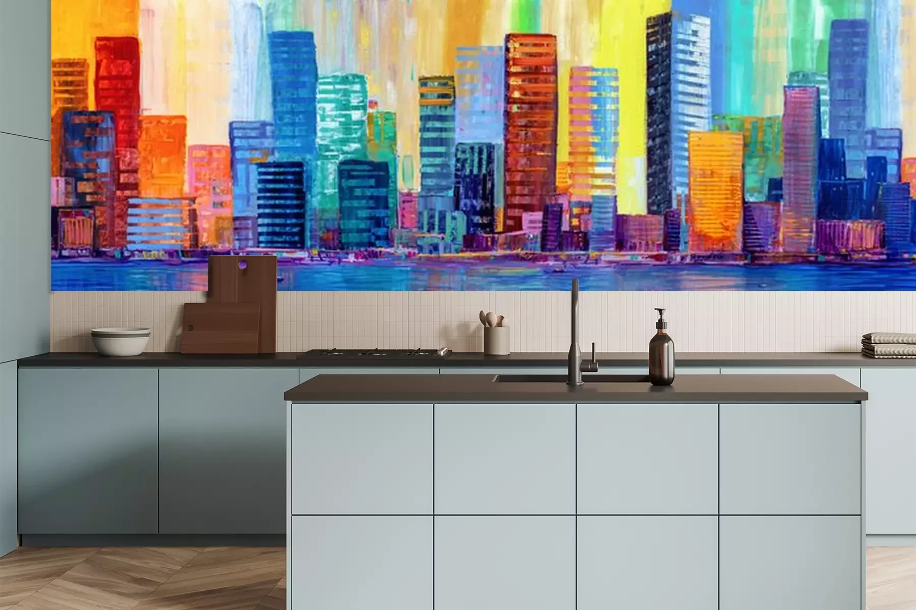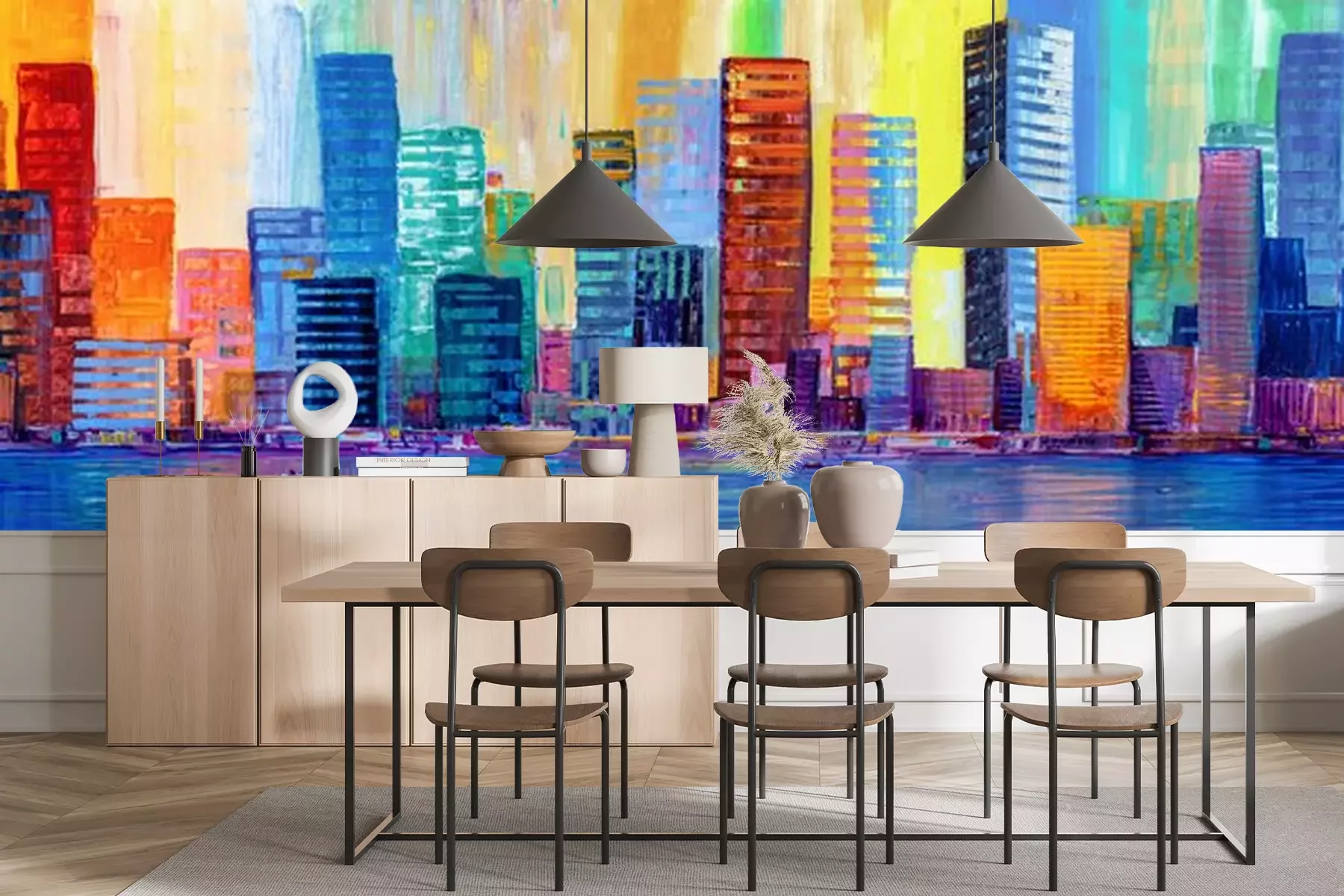 Fotobehang Geschilderde gekleurde wolkenkrabbers
