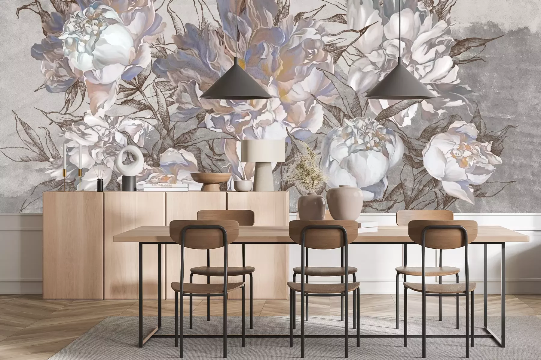 Het materiaal Standard is een hoogwaardig latexmateriaal met een glad, mat oppervlak. Dankzij de HP Latex-printtechnologie zijn de kleuren intens, duurzaam en UV-bestendig, waardoor het patroon jarenlang een onberispelijke uitstraling behoudt. Vervuilde oppervlakken kunnen voorzichtig worden afgeveegd met een droge doek. De maximale breedte van één baan bedraagt 95 cm of 105 cm – afhankelijk van de bestelde fotobehangbreedte. Bij grotere afmetingen wordt het patroon verdeeld over meerdere gelijkmatige banen. Het fotobehang wordt rand-aan-randaangebracht, wat vrijwel onzichtbare naden mogelijk maakt.