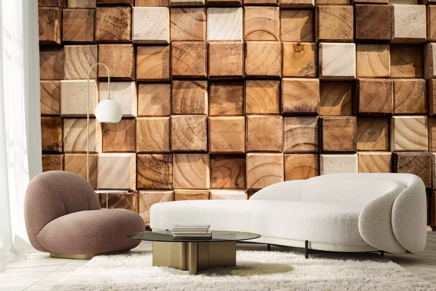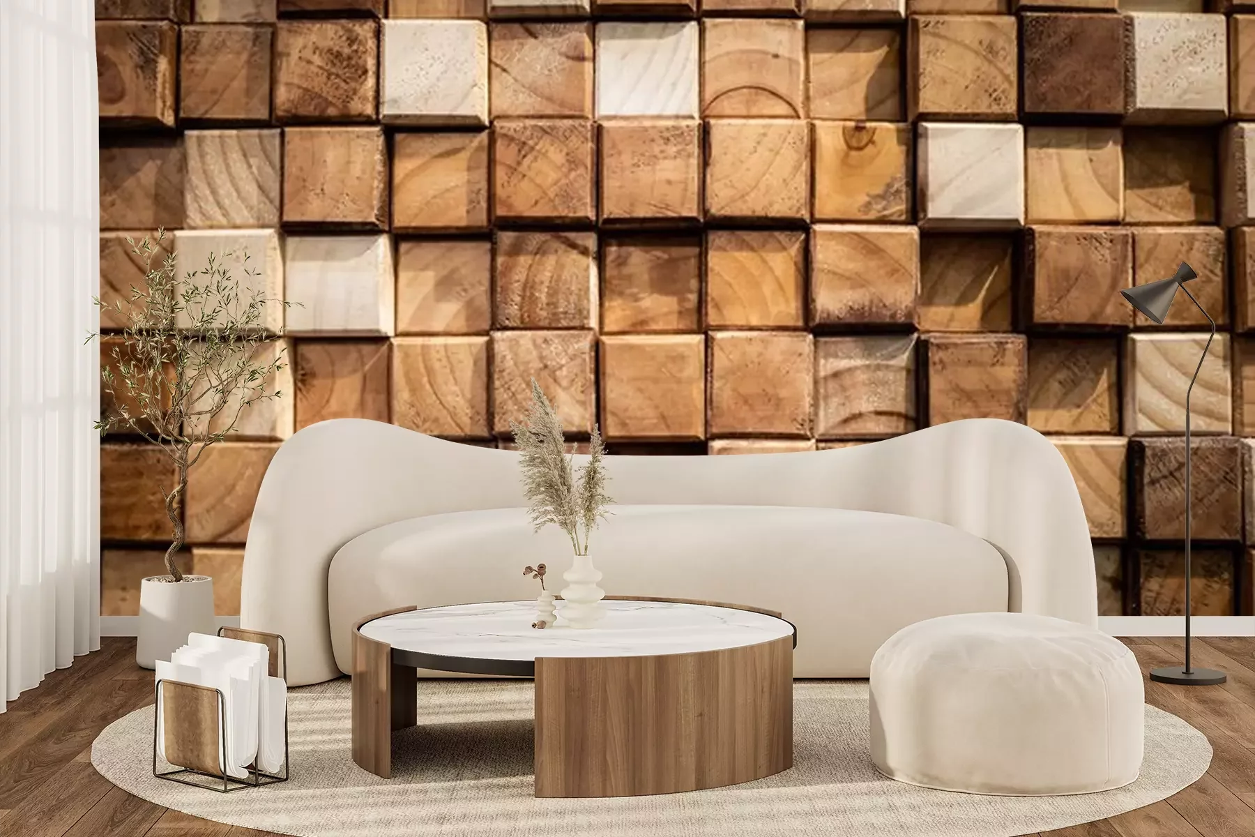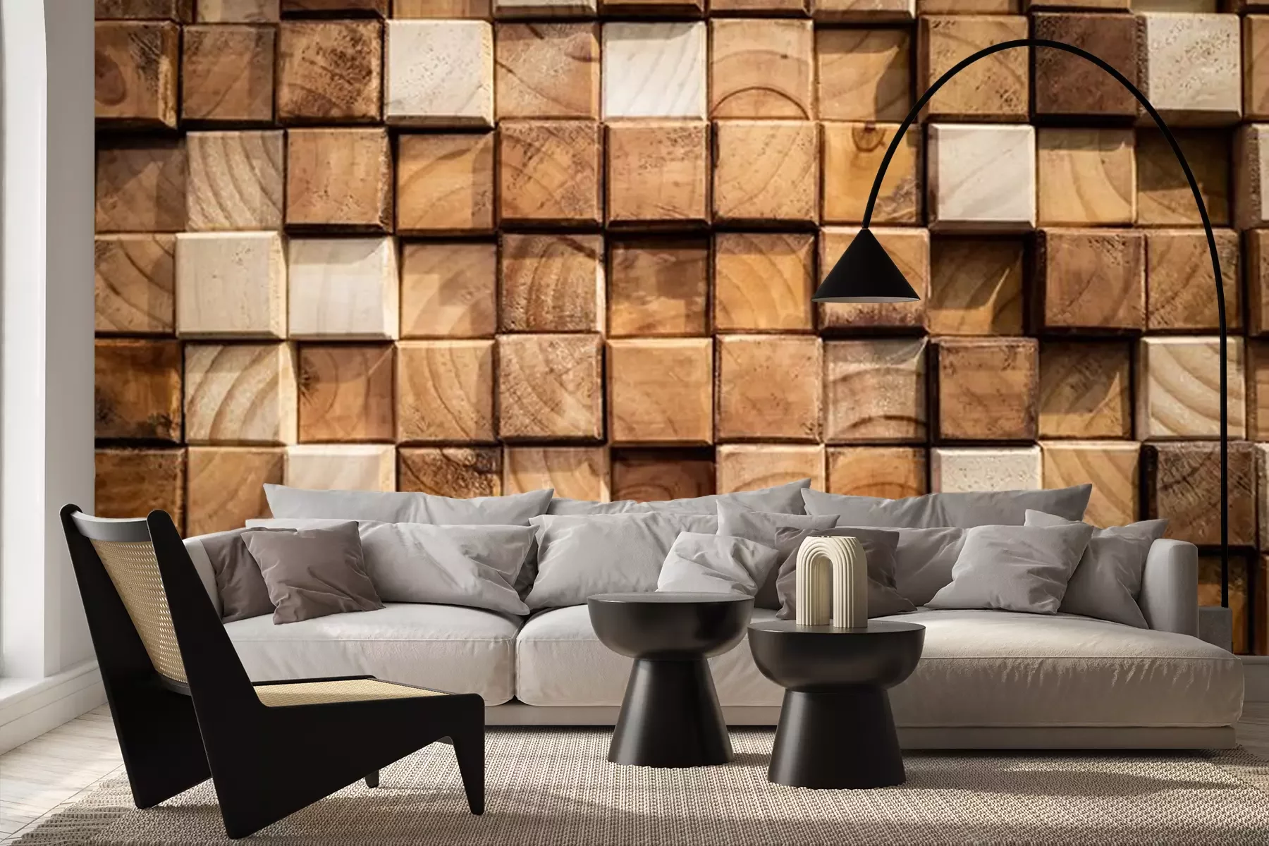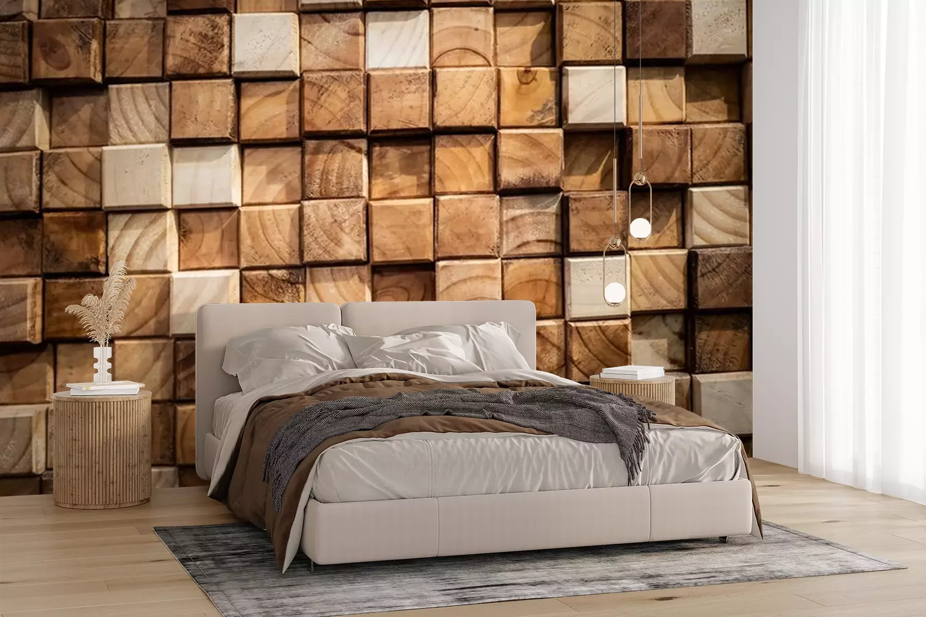 Fotobehang Gestapelde houten traveeën