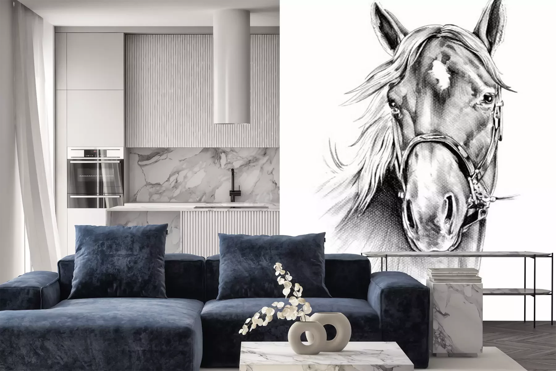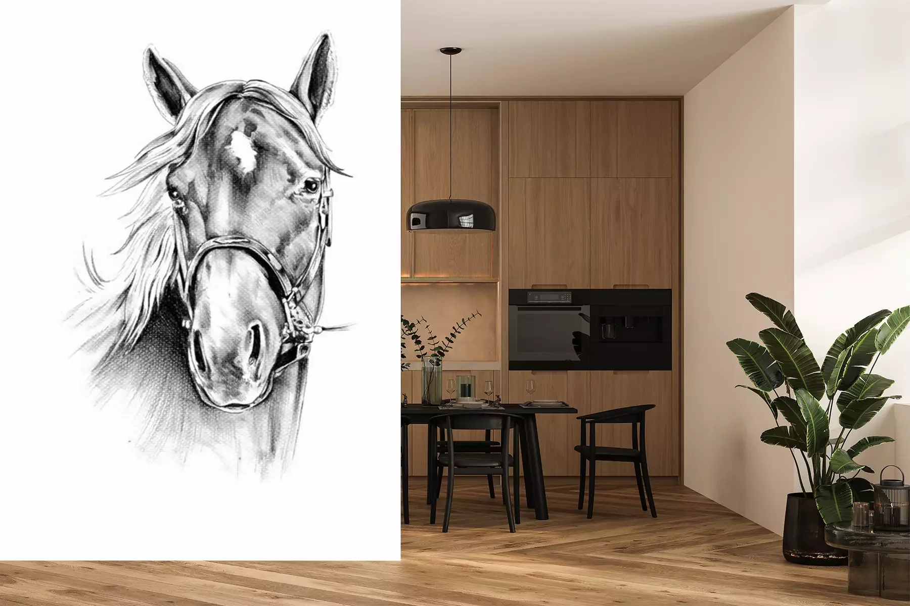Fotobehang Getekend portret van een paard