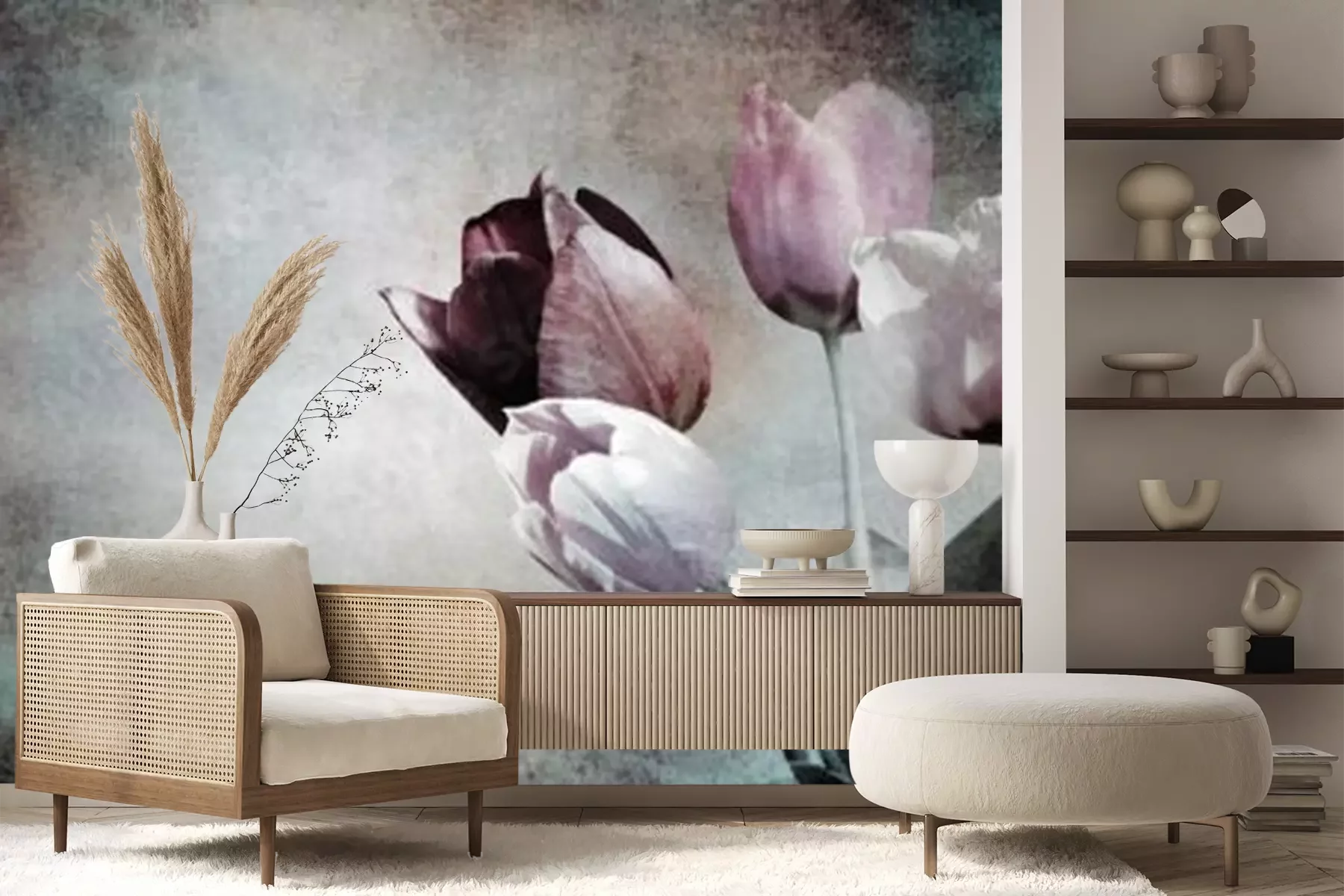 Het materiaal Premium+ is een gestructureerd vinyl op vlies met een gewicht van 255 g/m², dat kleine oneffenheden in de muur effectief camoufleert. De subtiele structuur van fijn zand geeft het oppervlak een exclusieve uitstraling, terwijl de halfmatte afwerking de diepte van de kleuren benadrukt. Het materiaal is dampdoorlatend, waardoor het ook in de keuken en badkamer kan worden gebruikt. De maximale breedte van één baan bedraagt 100 cm – bij grotere afmetingen wordt het fotobehang in meerdere gelijke banen verdeeld. De lijm wordt direct op de muur aangebracht en het behang wordt rand-aan-rand geplakt, wat zorgt voor een esthetisch resultaat zonder zichtbare naden. Het oppervlak kan gemakkelijk worden schoongemaakt door het voorzichtig af te nemen met een vochtige doek.
