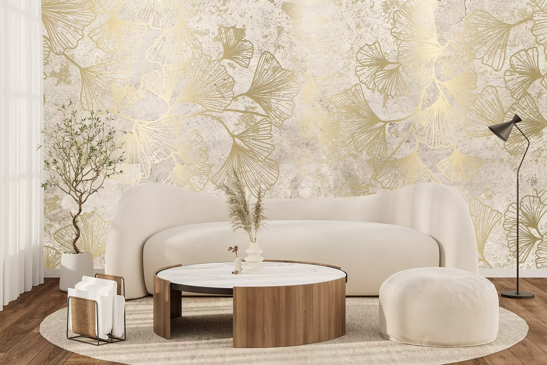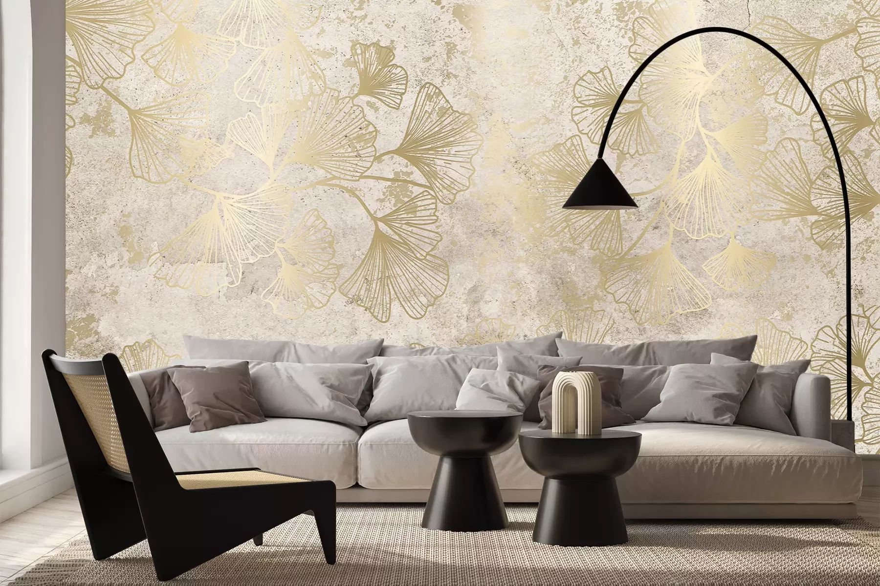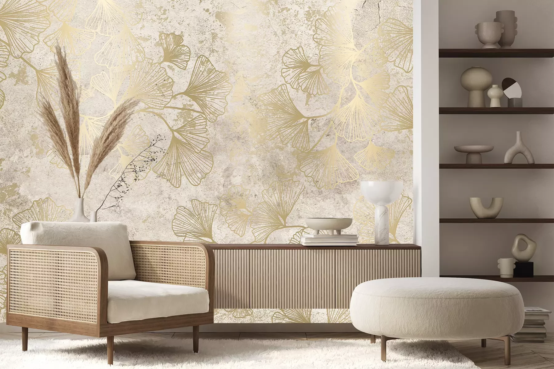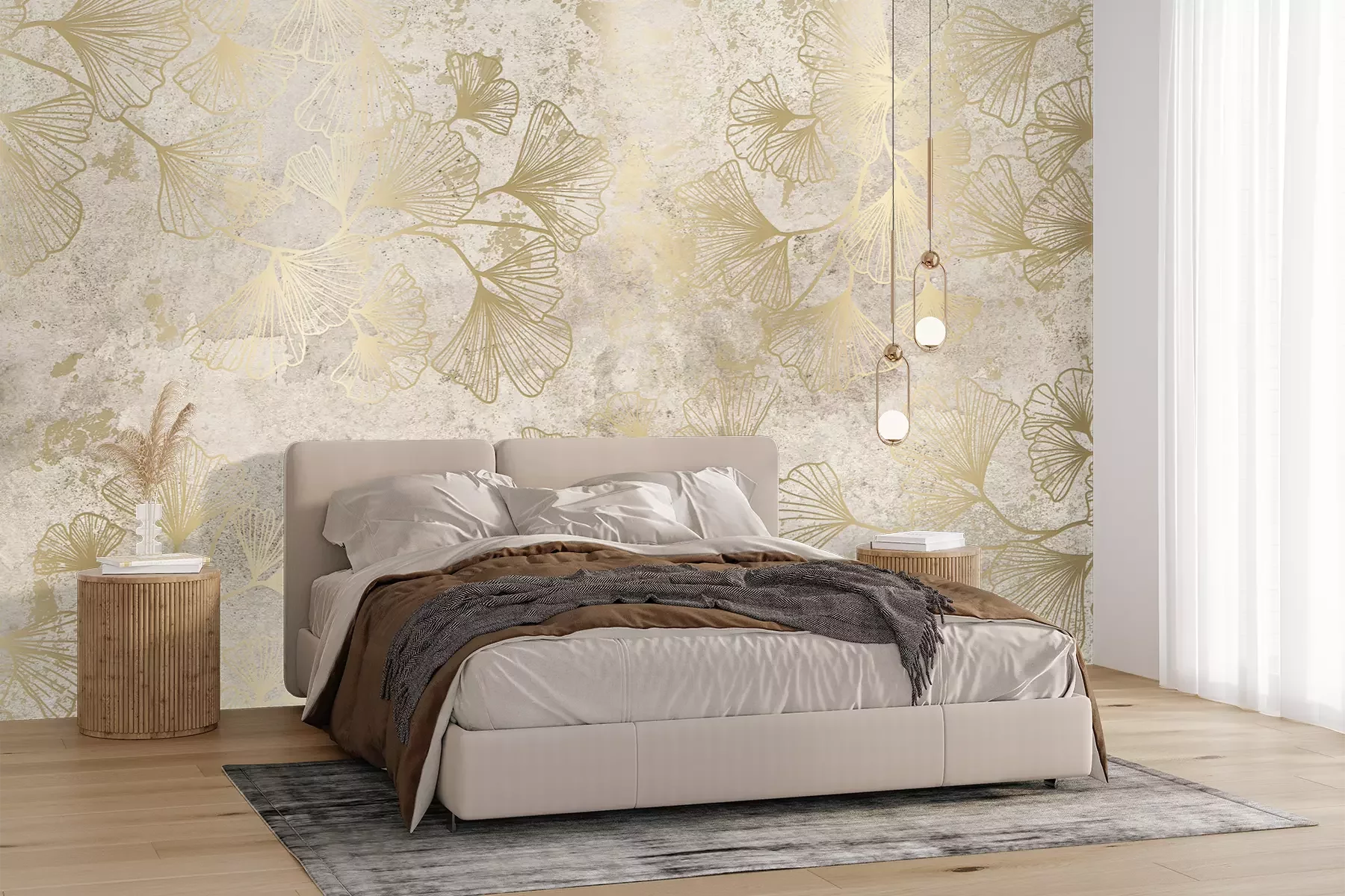 Het materiaal Premium+ is een gestructureerd vinyl op vlies met een gewicht van 255 g/m², dat kleine oneffenheden in de muur effectief camoufleert. De subtiele structuur van fijn zand geeft het oppervlak een exclusieve uitstraling, terwijl de halfmatte afwerking de diepte van de kleuren benadrukt. Het materiaal is dampdoorlatend, waardoor het ook in de keuken en badkamer kan worden gebruikt. De maximale breedte van één baan bedraagt 100 cm – bij grotere afmetingen wordt het fotobehang in meerdere gelijke banen verdeeld. De lijm wordt direct op de muur aangebracht en het behang wordt rand-aan-rand geplakt, wat zorgt voor een esthetisch resultaat zonder zichtbare naden. Het oppervlak kan gemakkelijk worden schoongemaakt door het voorzichtig af te nemen met een vochtige doek.