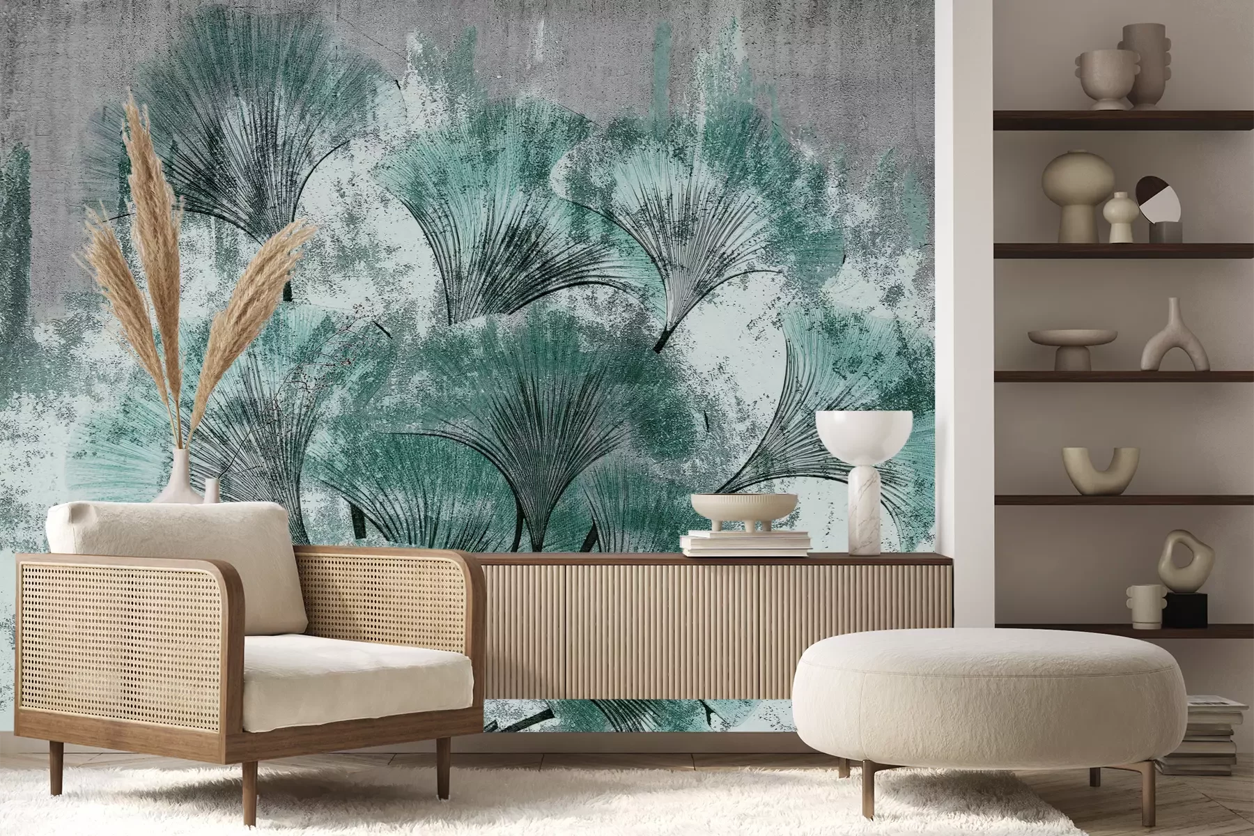 Het materiaal Premium+ is een gestructureerd vinyl op vlies met een gewicht van 255 g/m², dat kleine oneffenheden in de muur effectief camoufleert. De subtiele structuur van fijn zand geeft het oppervlak een exclusieve uitstraling, terwijl de halfmatte afwerking de diepte van de kleuren benadrukt. Het materiaal is dampdoorlatend, waardoor het ook in de keuken en badkamer kan worden gebruikt. De maximale breedte van één baan bedraagt 100 cm – bij grotere afmetingen wordt het fotobehang in meerdere gelijke banen verdeeld. De lijm wordt direct op de muur aangebracht en het behang wordt rand-aan-rand geplakt, wat zorgt voor een esthetisch resultaat zonder zichtbare naden. Het oppervlak kan gemakkelijk worden schoongemaakt door het voorzichtig af te nemen met een vochtige doek.