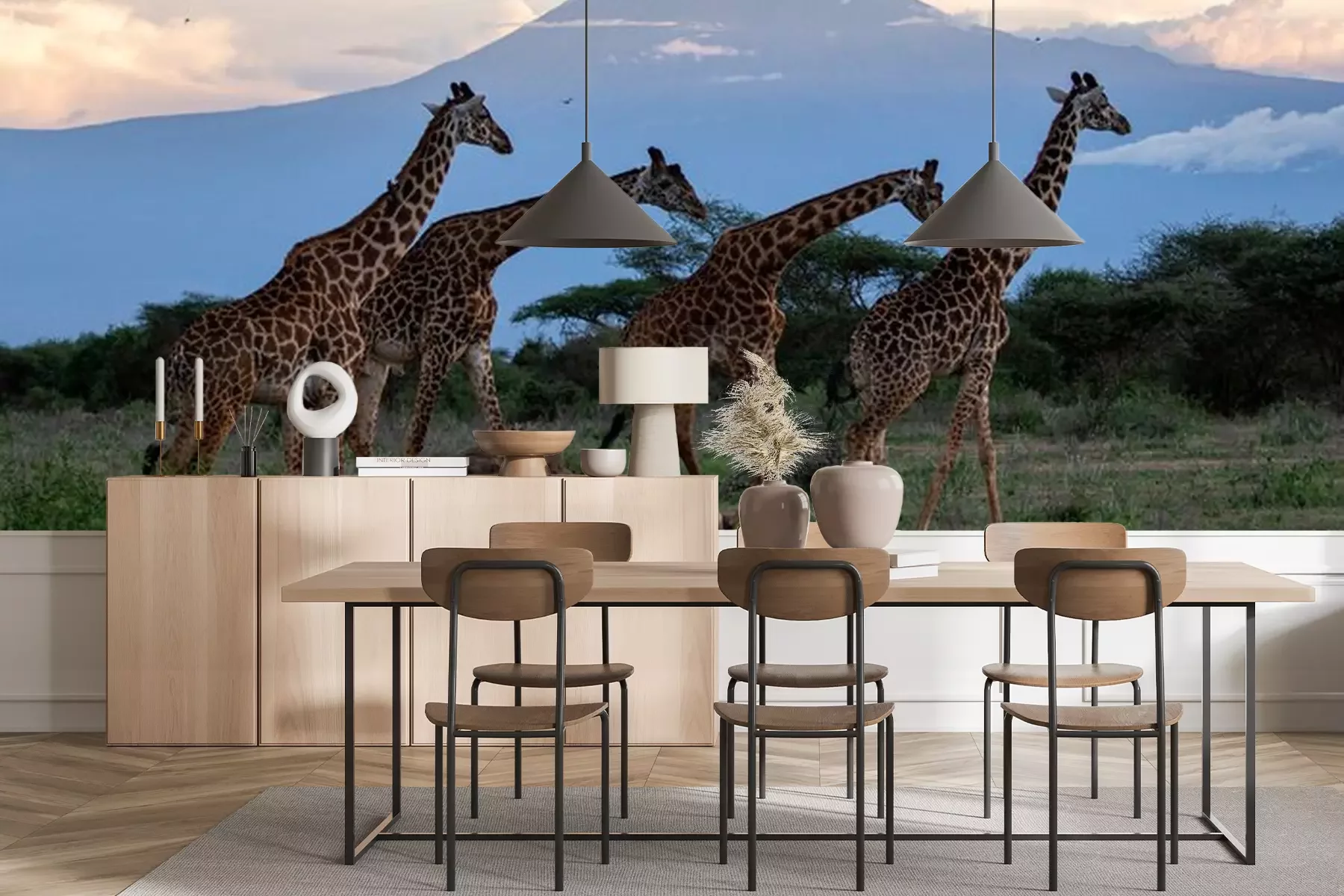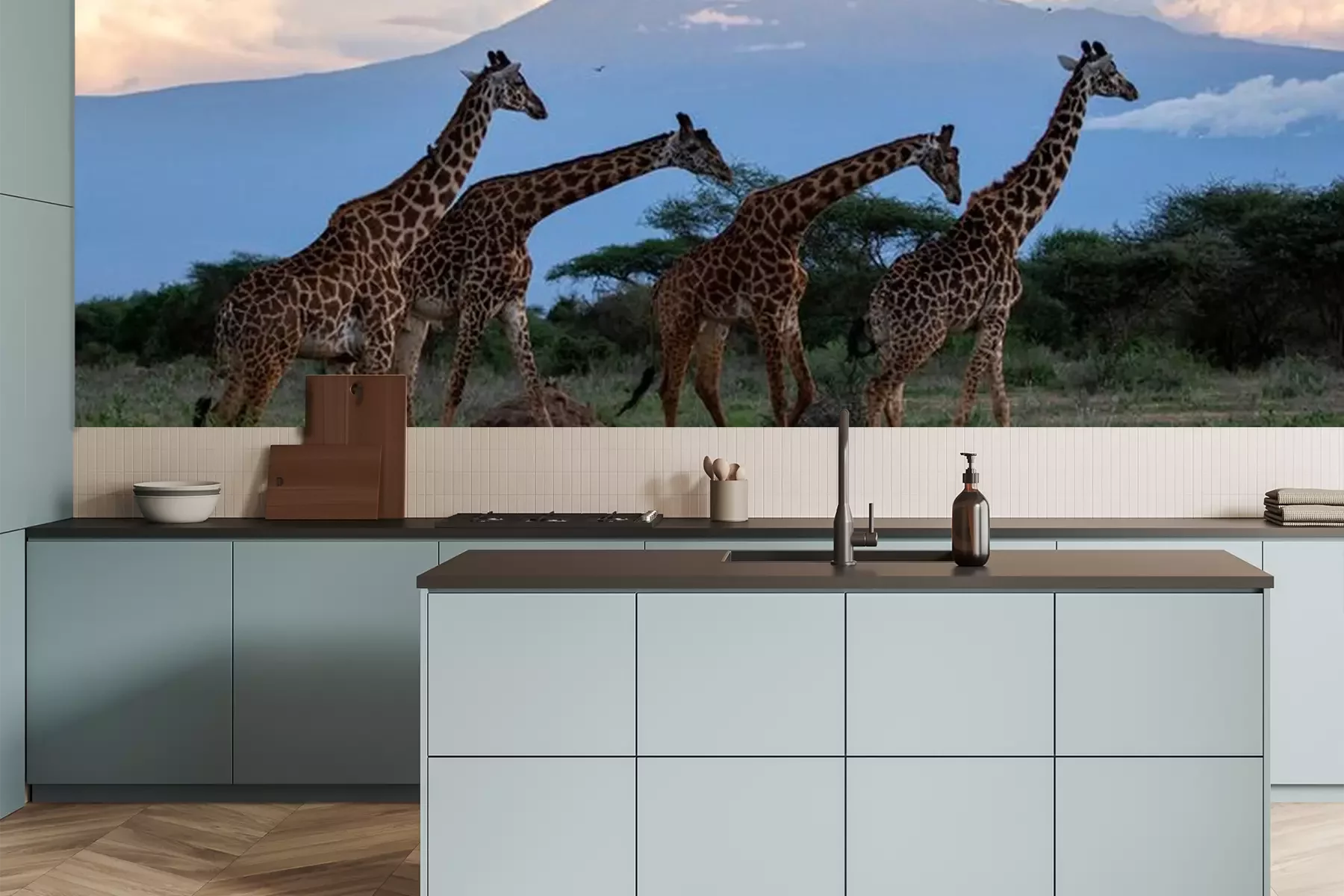 Fotobehang Giraffen op de achtergrond van de berg Kilimanjaro