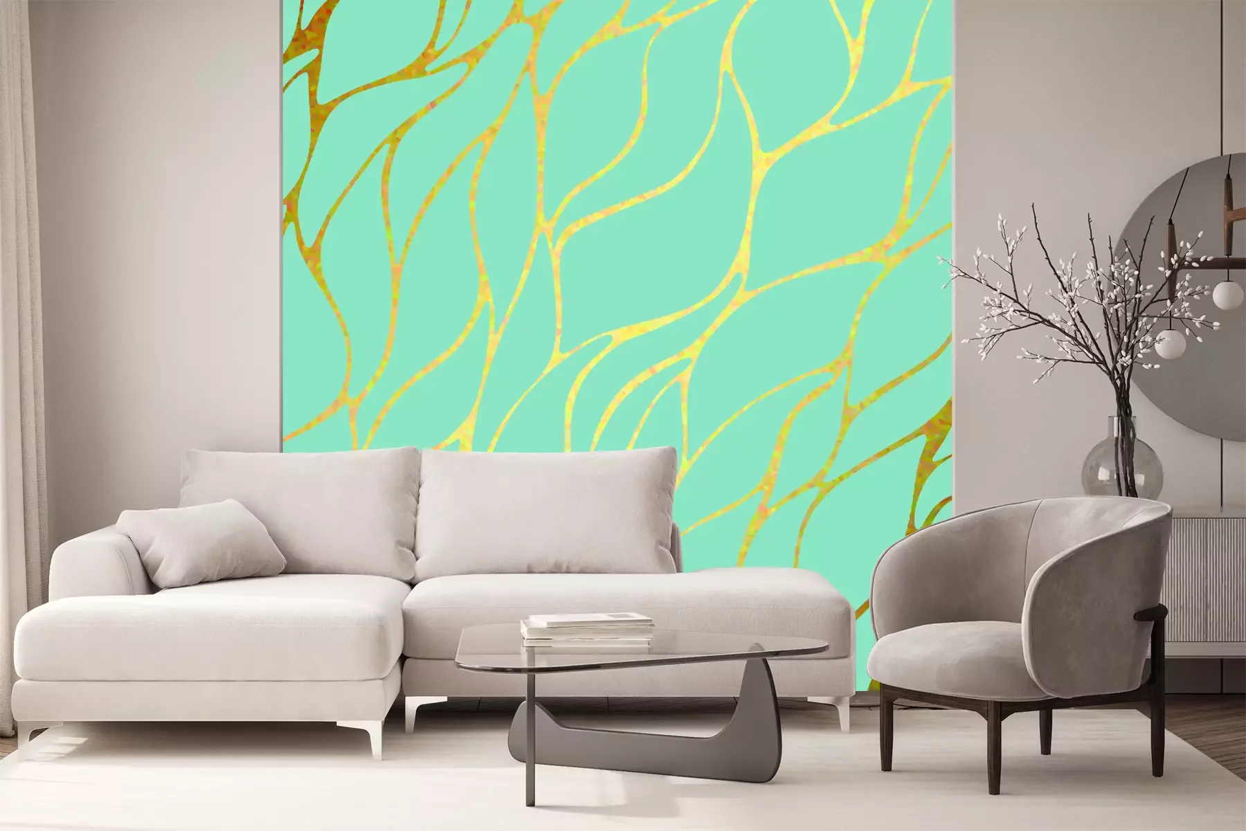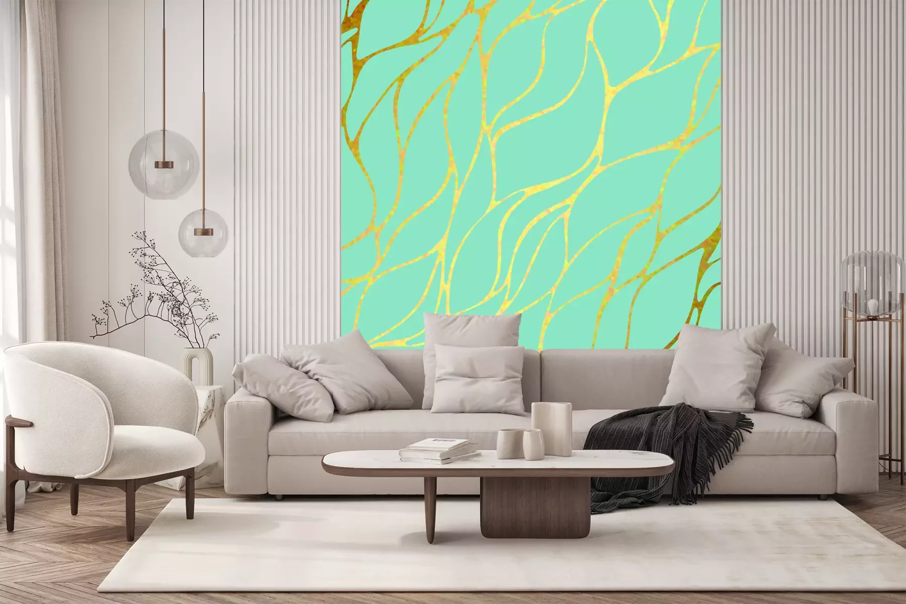 Het materiaal Standard is een hoogwaardig latexmateriaal met een glad, mat oppervlak. Dankzij de HP Latex-printtechnologie zijn de kleuren intens, duurzaam en UV-bestendig, waardoor het patroon jarenlang een onberispelijke uitstraling behoudt. Vervuilde oppervlakken kunnen voorzichtig worden afgeveegd met een droge doek. De maximale breedte van één baan bedraagt 95 cm of 105 cm – afhankelijk van de bestelde fotobehangbreedte. Bij grotere afmetingen wordt het patroon verdeeld over meerdere gelijkmatige banen. Het fotobehang wordt rand-aan-randaangebracht, wat vrijwel onzichtbare naden mogelijk maakt.