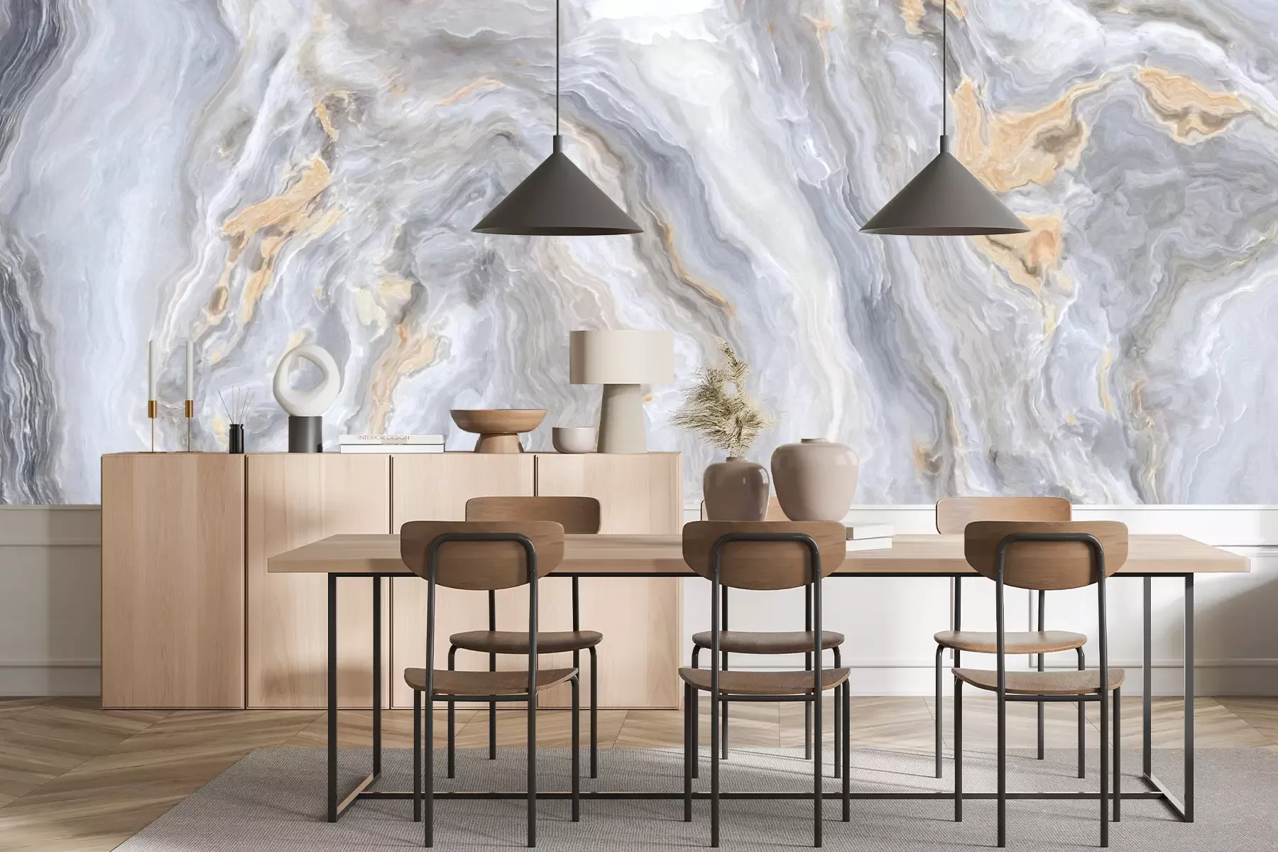 Het materiaal Premium+ is een gestructureerd vinyl op vlies met een gewicht van 255 g/m², dat kleine oneffenheden in de muur effectief camoufleert. De subtiele structuur van fijn zand geeft het oppervlak een exclusieve uitstraling, terwijl de halfmatte afwerking de diepte van de kleuren benadrukt. Het materiaal is dampdoorlatend, waardoor het ook in de keuken en badkamer kan worden gebruikt. De maximale breedte van één baan bedraagt 100 cm – bij grotere afmetingen wordt het fotobehang in meerdere gelijke banen verdeeld. De lijm wordt direct op de muur aangebracht en het behang wordt rand-aan-rand geplakt, wat zorgt voor een esthetisch resultaat zonder zichtbare naden. Het oppervlak kan gemakkelijk worden schoongemaakt door het voorzichtig af te nemen met een vochtige doek.