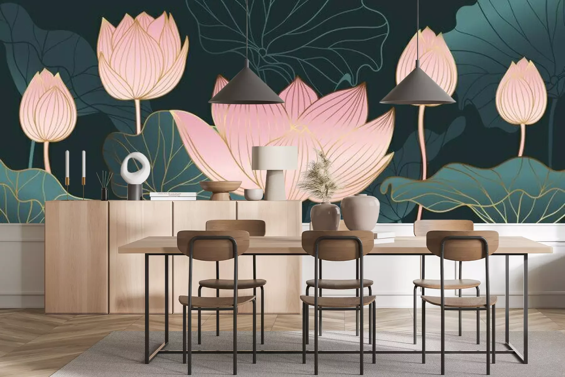 Het materiaal Standard is een hoogwaardig latexmateriaal met een glad, mat oppervlak. Dankzij de HP Latex-printtechnologie zijn de kleuren intens, duurzaam en UV-bestendig, waardoor het patroon jarenlang een onberispelijke uitstraling behoudt. Vervuilde oppervlakken kunnen voorzichtig worden afgeveegd met een droge doek. De maximale breedte van één baan bedraagt 95 cm of 105 cm – afhankelijk van de bestelde fotobehangbreedte. Bij grotere afmetingen wordt het patroon verdeeld over meerdere gelijkmatige banen. Het fotobehang wordt rand-aan-randaangebracht, wat vrijwel onzichtbare naden mogelijk maakt.
