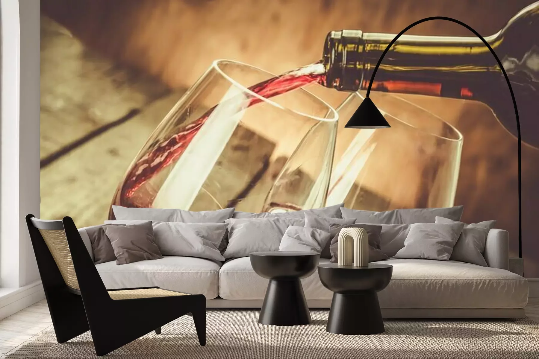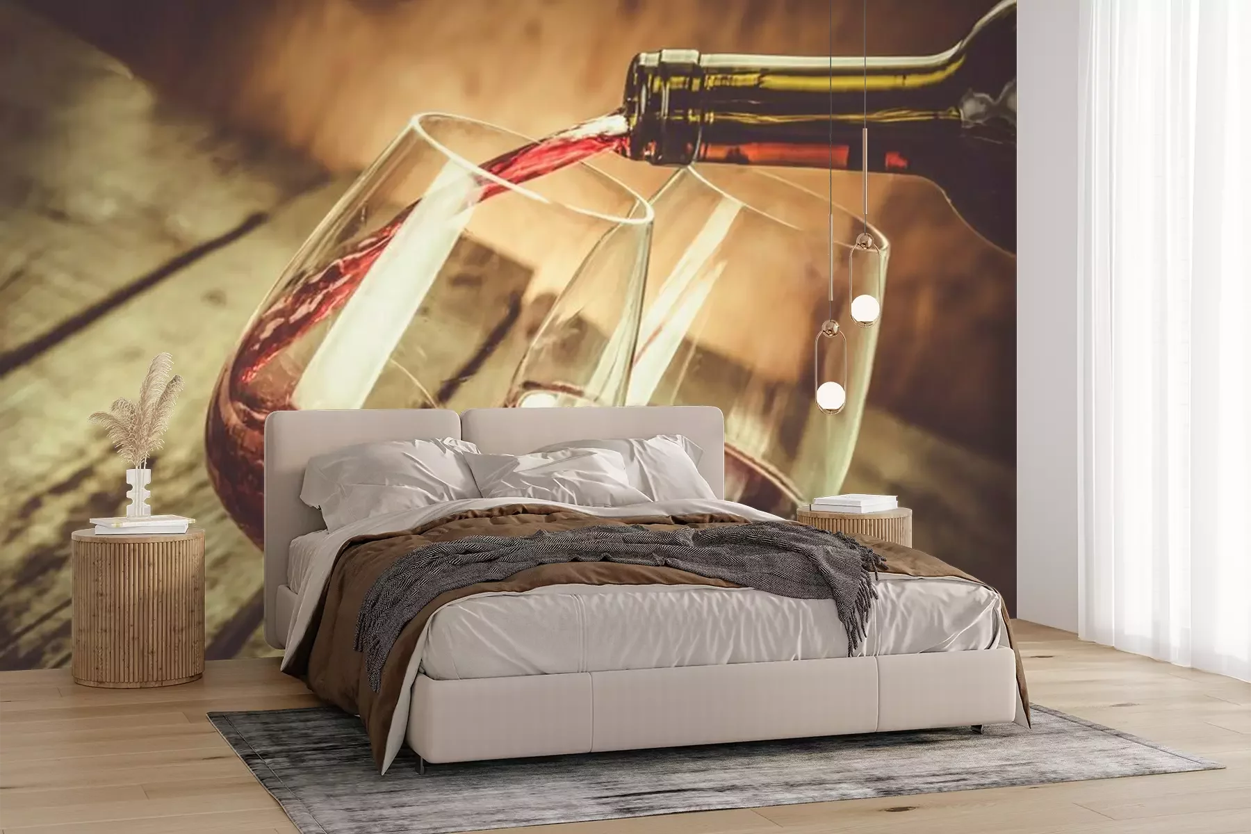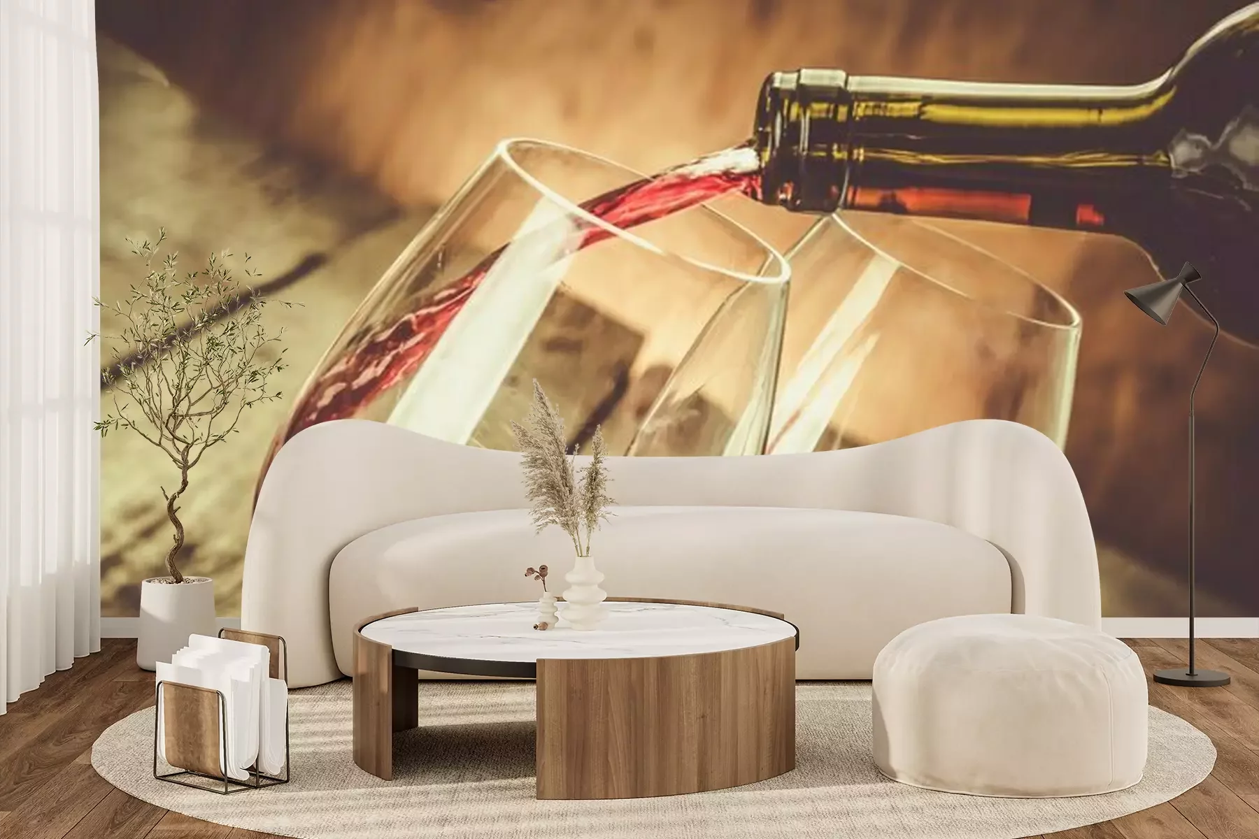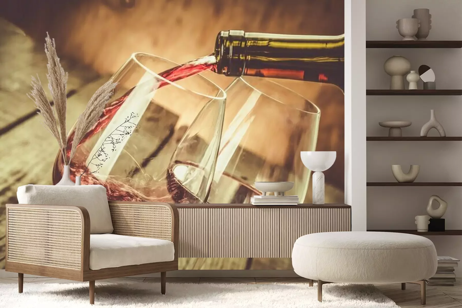 Fotobehang Glazen wijn op een houten achtergrond