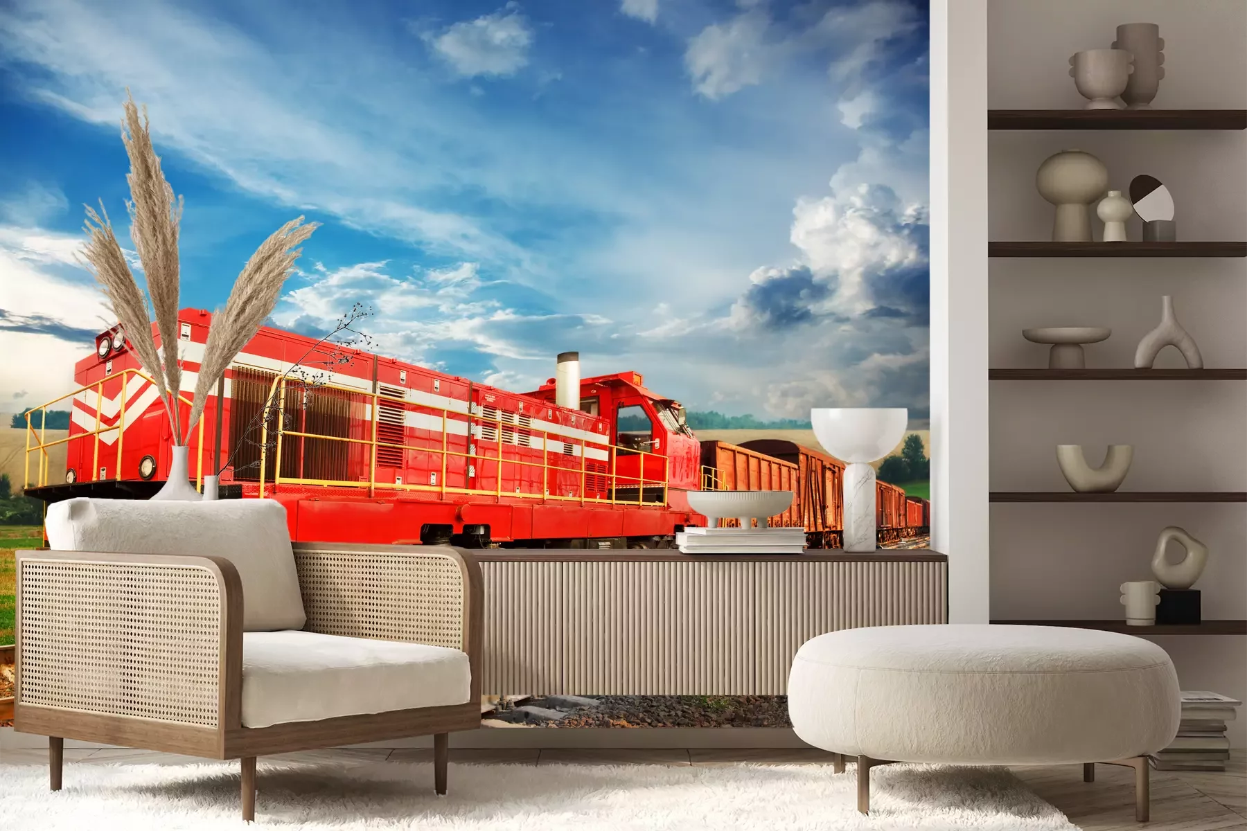 Het materiaal Premium+ is een gestructureerd vinyl op vlies met een gewicht van 255 g/m², dat kleine oneffenheden in de muur effectief camoufleert. De subtiele structuur van fijn zand geeft het oppervlak een exclusieve uitstraling, terwijl de halfmatte afwerking de diepte van de kleuren benadrukt. Het materiaal is dampdoorlatend, waardoor het ook in de keuken en badkamer kan worden gebruikt. De maximale breedte van één baan bedraagt 100 cm – bij grotere afmetingen wordt het fotobehang in meerdere gelijke banen verdeeld. De lijm wordt direct op de muur aangebracht en het behang wordt rand-aan-rand geplakt, wat zorgt voor een esthetisch resultaat zonder zichtbare naden. Het oppervlak kan gemakkelijk worden schoongemaakt door het voorzichtig af te nemen met een vochtige doek.