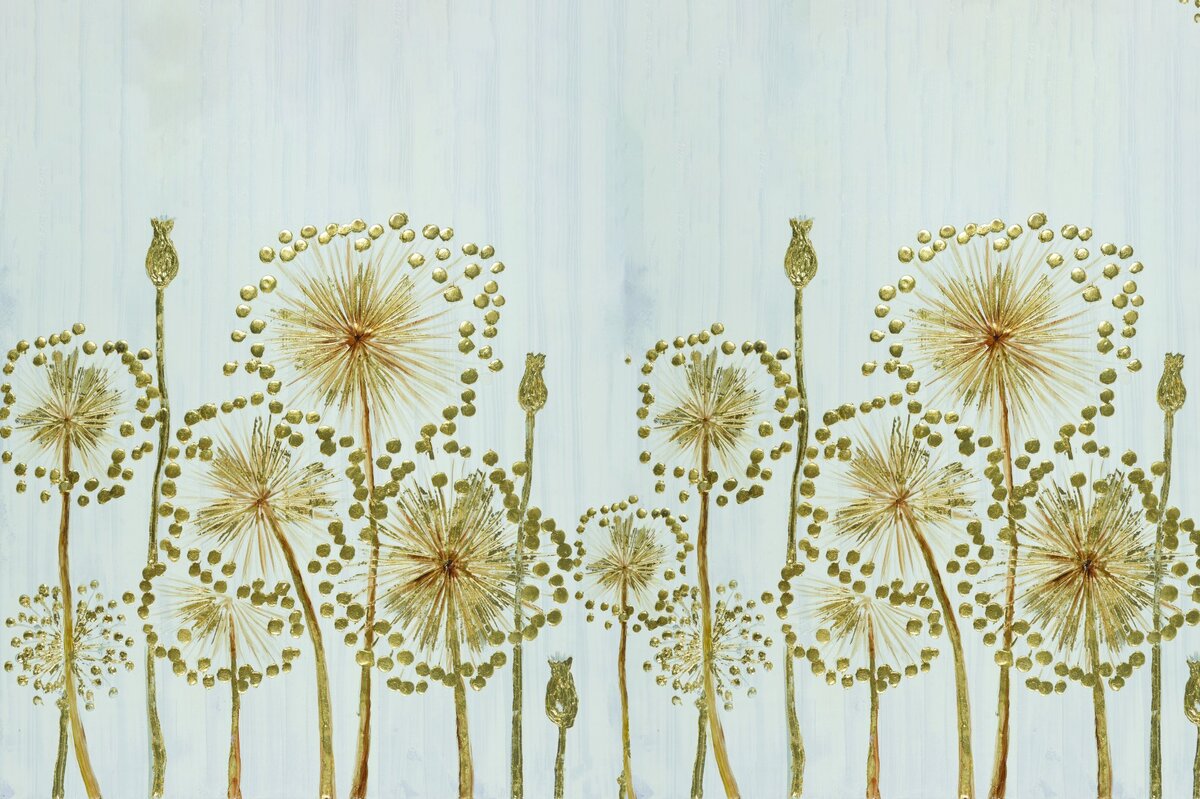 Fotobehang: Gouden bloemen op een strakgrijze achtergrond