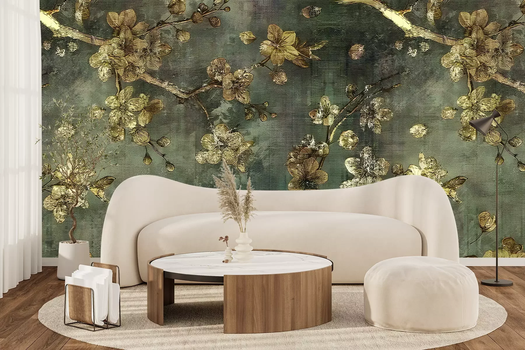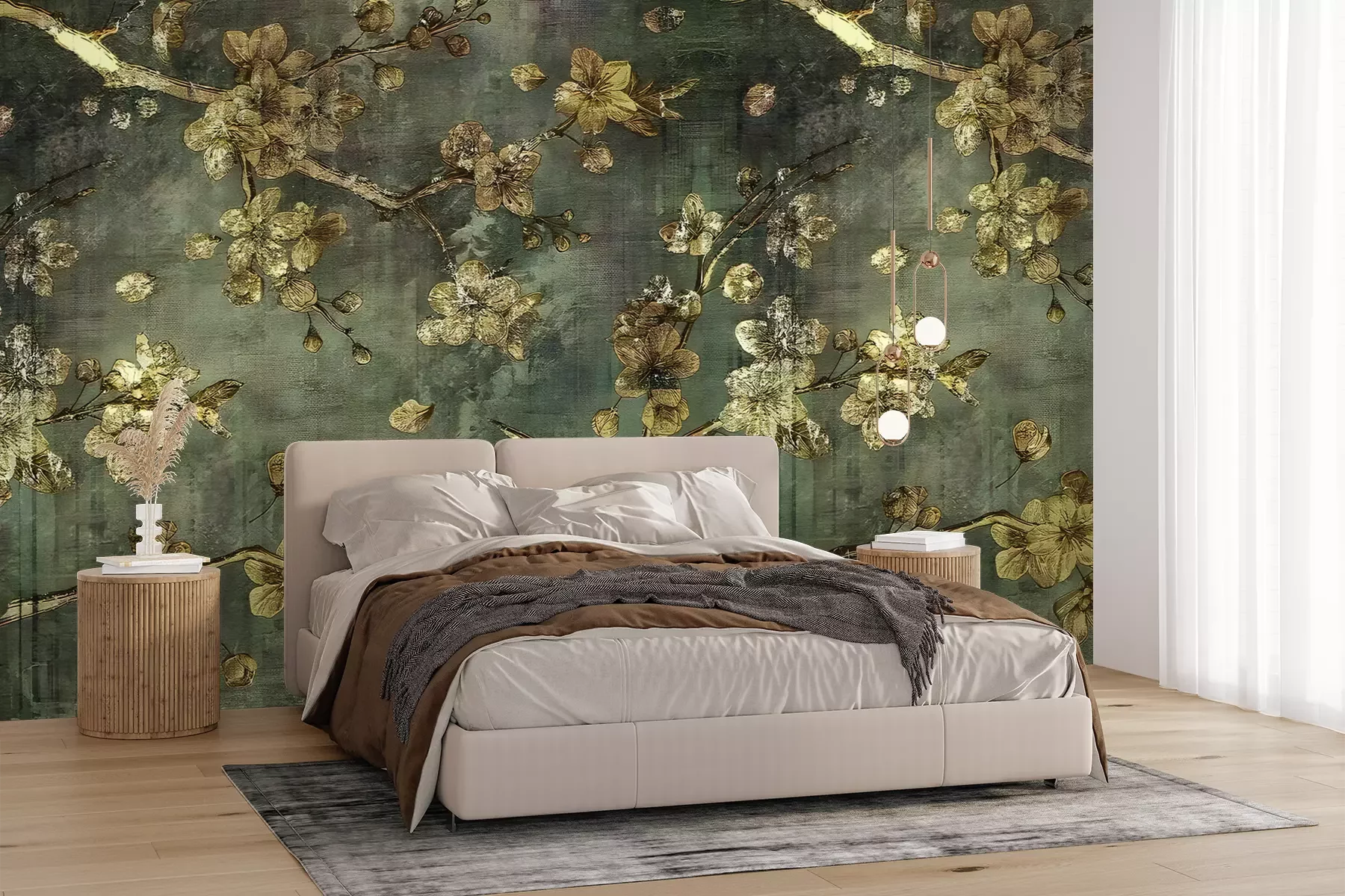 Het materiaal Premium+ is een gestructureerd vinyl op vlies met een gewicht van 255 g/m², dat kleine oneffenheden in de muur effectief camoufleert. De subtiele structuur van fijn zand geeft het oppervlak een exclusieve uitstraling, terwijl de halfmatte afwerking de diepte van de kleuren benadrukt. Het materiaal is dampdoorlatend, waardoor het ook in de keuken en badkamer kan worden gebruikt. De maximale breedte van één baan bedraagt 100 cm – bij grotere afmetingen wordt het fotobehang in meerdere gelijke banen verdeeld. De lijm wordt direct op de muur aangebracht en het behang wordt rand-aan-rand geplakt, wat zorgt voor een esthetisch resultaat zonder zichtbare naden. Het oppervlak kan gemakkelijk worden schoongemaakt door het voorzichtig af te nemen met een vochtige doek.