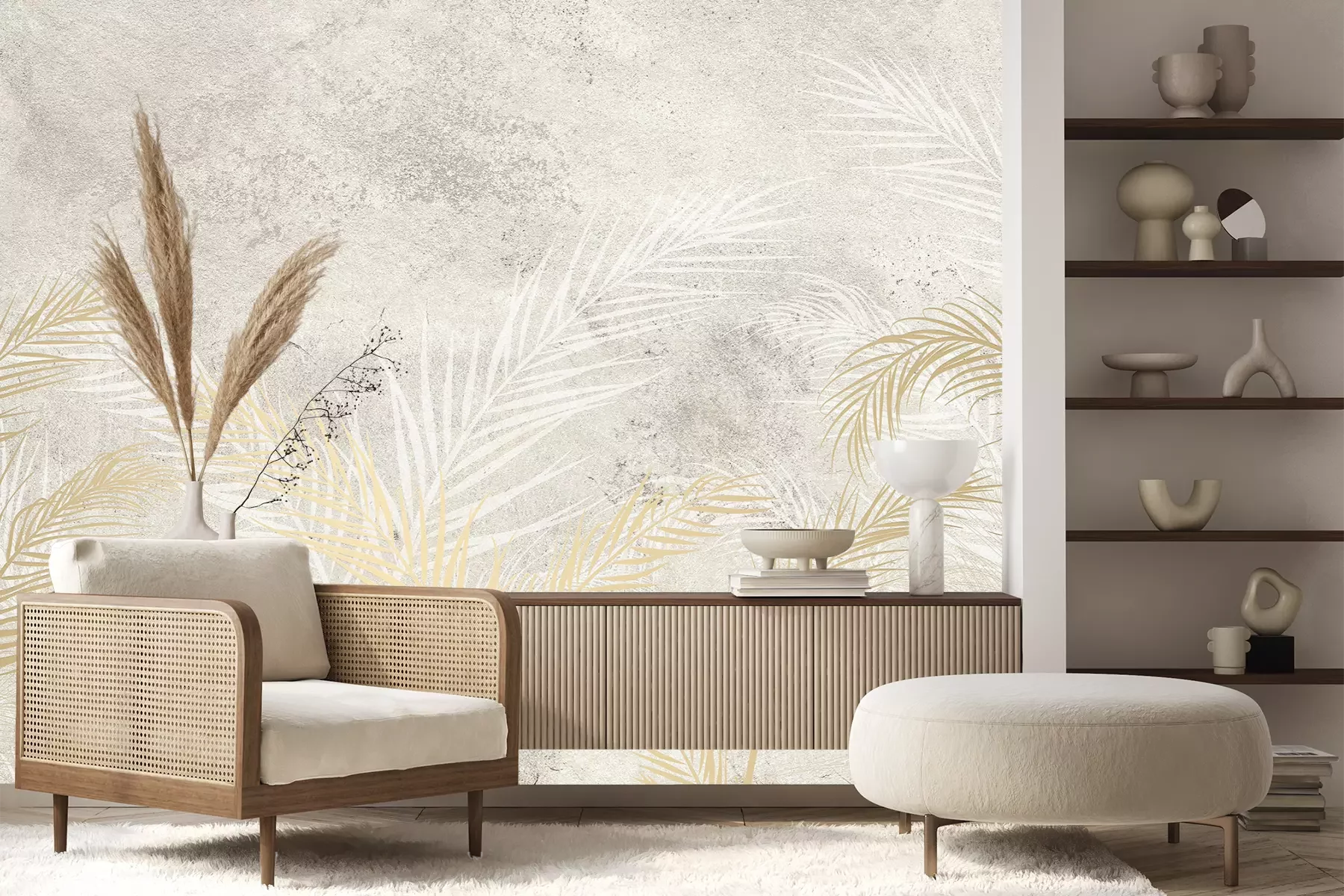 Het materiaal Premium+ is een gestructureerd vinyl op vlies met een gewicht van 255 g/m², dat kleine oneffenheden in de muur effectief camoufleert. De subtiele structuur van fijn zand geeft het oppervlak een exclusieve uitstraling, terwijl de halfmatte afwerking de diepte van de kleuren benadrukt. Het materiaal is dampdoorlatend, waardoor het ook in de keuken en badkamer kan worden gebruikt. De maximale breedte van één baan bedraagt 100 cm – bij grotere afmetingen wordt het fotobehang in meerdere gelijke banen verdeeld. De lijm wordt direct op de muur aangebracht en het behang wordt rand-aan-rand geplakt, wat zorgt voor een esthetisch resultaat zonder zichtbare naden. Het oppervlak kan gemakkelijk worden schoongemaakt door het voorzichtig af te nemen met een vochtige doek.