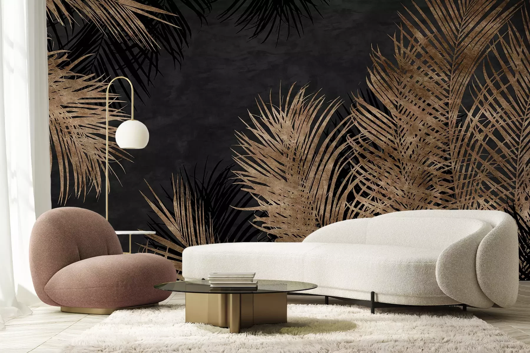 Als je op zoek bent naar een opvallende kamerdecoratie, is een plantenmotief op een fotobehang een uitstekende oplossing. Bladeren zijn een decoratief motief dat je gemakkelijk in veel verschillende interieurstijlen kunt integreren, waardoor je een mooi en harmonieus geheel creëert. We hebben ervoor gezorgd dat het patroon is uitgevoerd in een opvallende maar tegelijkertijd gebalanceerde kleurstelling. Een donker fotobehang toont de bladeren van exotische planten in een elegante, goudachtige tint, waardoor het een indrukwekkend onderdeel van de inrichting wordt. Tegelijkertijd is het geen compositie die de kamer zou kunnen overheersen. Het voordeel van dit patroon is dat het er altijd prachtig uitziet, ongeacht de trends, omdat de natuur tijdloos is. In welke stijlen komt ons fotobehang goed tot zijn recht? Palmbladeren vormen de perfecte aanvulling op een glamourinterieur, waarin vergulde elementen en tropische bladeren naadloos passen. De donkere achtergrondkleur geeft een elegante uitstraling, terwijl de palmen de ruimte een gezellige sfeer geven. Een heel ander idee is om het plantenmotief te combineren met een retro-inrichting. Oude meubels zullen prachtig uitkomen tegen de achtergrond van het plantenpatroon. De hier gepresenteerde wanddecoratie is zo veelzijdig dat deze in de meeste woonruimtes kan worden gebruikt. In de woonkamer of slaapkamer, waar je een rustgevende sfeer wilt creëren, zal ons fotobehang perfect passen. Tropische bladeren zullen ook geweldig staan in de hal, die dankzij het exotische motief meer karakter krijgt, waardoor het interieur vanaf de ingang indruk maakt. Omdat onze wanddecoraties van hoge kwaliteit zijn, kunnen ze ook in commerciële ruimtes worden gebruikt. Voor welke interieurs is zo'n fotobehang geschikt? Bladeren in een goudachtige tint zullen de hotellobby, een café, een restaurant, een schoonheidssalon, een spa of diverse wachtruimtes sieren. Het is een eenvoudige en snelle manier om een ruimte tijdloze elegantie te geven.