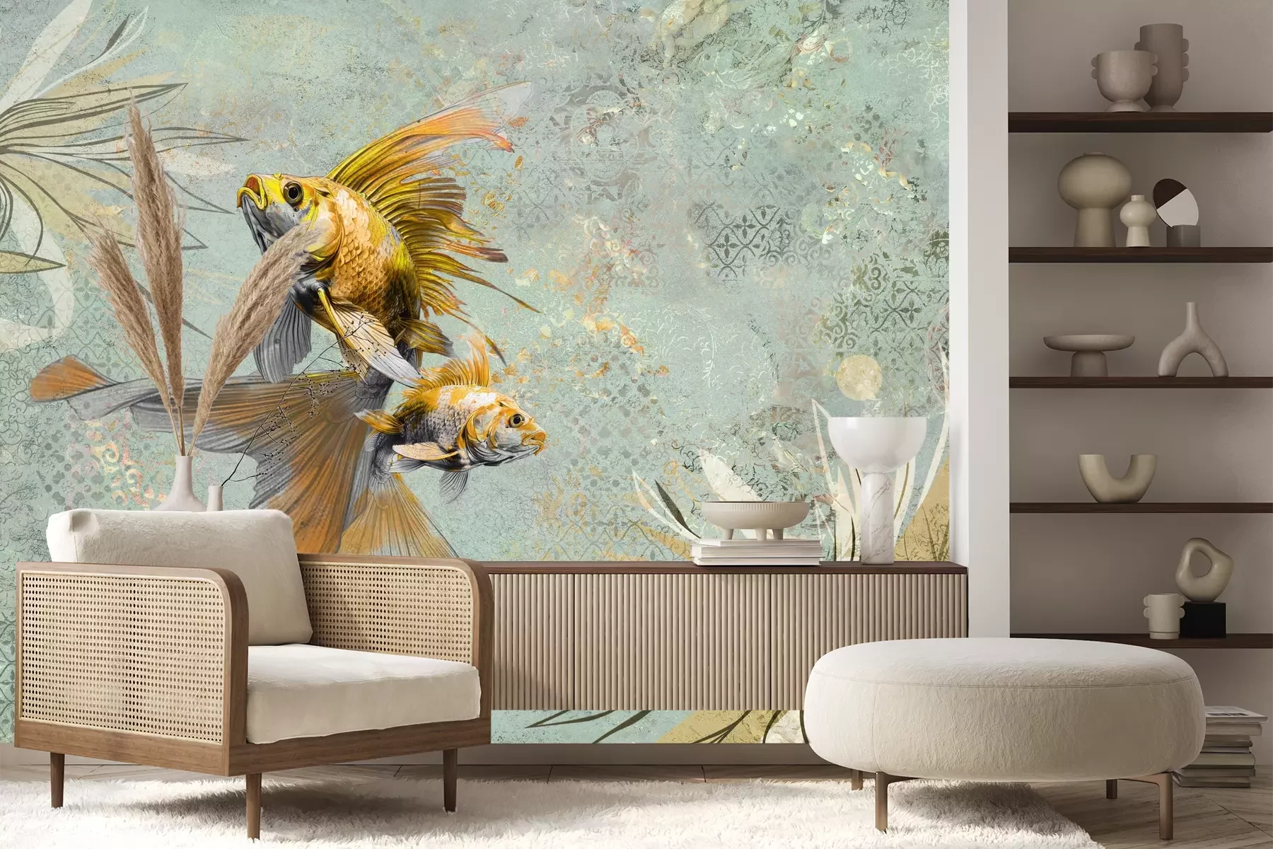 Het materiaal Premium+ is een gestructureerd vinyl op vlies met een gewicht van 255 g/m², dat kleine oneffenheden in de muur effectief camoufleert. De subtiele structuur van fijn zand geeft het oppervlak een exclusieve uitstraling, terwijl de halfmatte afwerking de diepte van de kleuren benadrukt. Het materiaal is dampdoorlatend, waardoor het ook in de keuken en badkamer kan worden gebruikt. De maximale breedte van één baan bedraagt 100 cm – bij grotere afmetingen wordt het fotobehang in meerdere gelijke banen verdeeld. De lijm wordt direct op de muur aangebracht en het behang wordt rand-aan-rand geplakt, wat zorgt voor een esthetisch resultaat zonder zichtbare naden. Het oppervlak kan gemakkelijk worden schoongemaakt door het voorzichtig af te nemen met een vochtige doek.