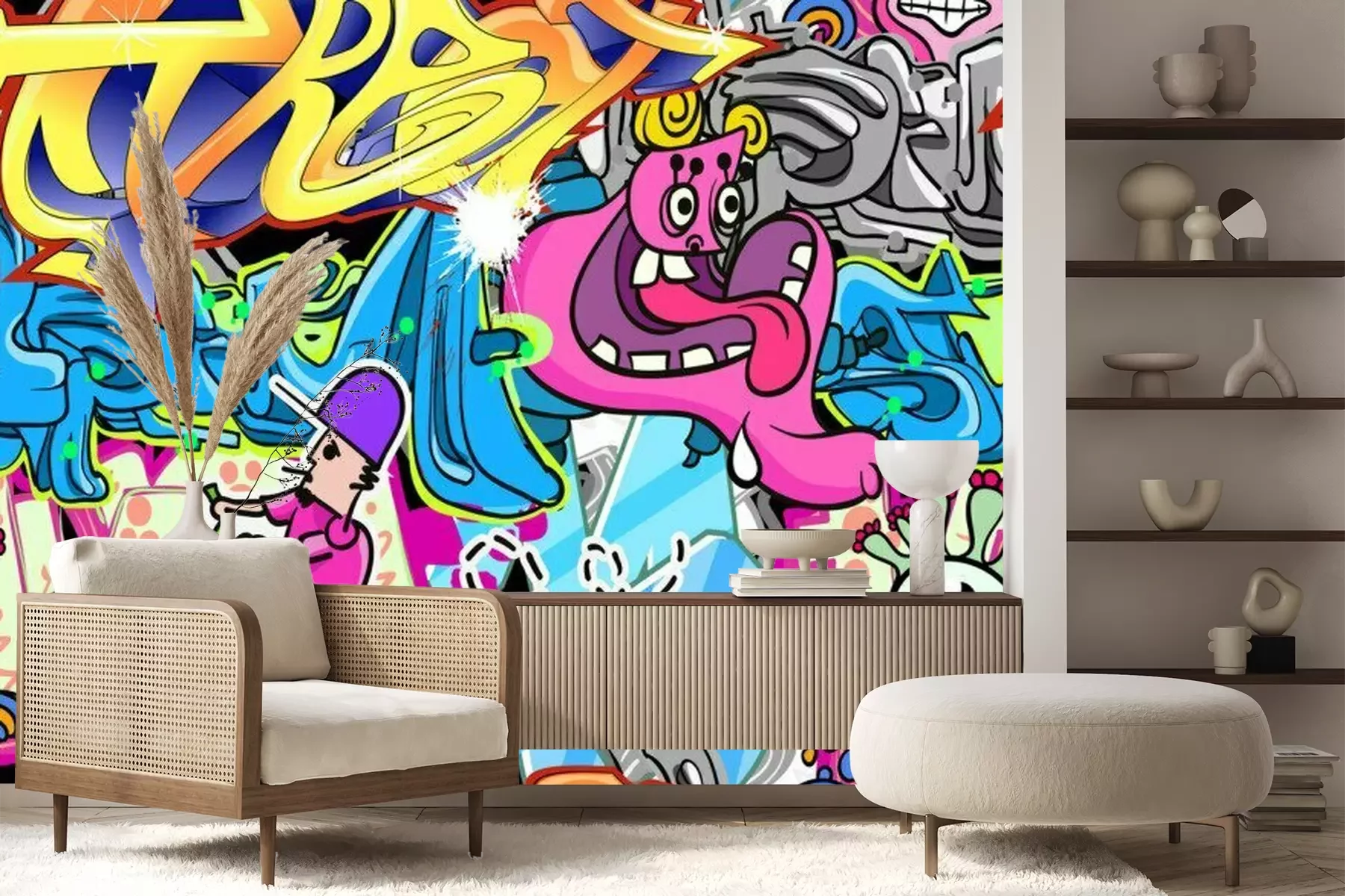Kleurrijke straatgraffitiProbleemloze bezorging verzorgd door vertrouwde vervoerders