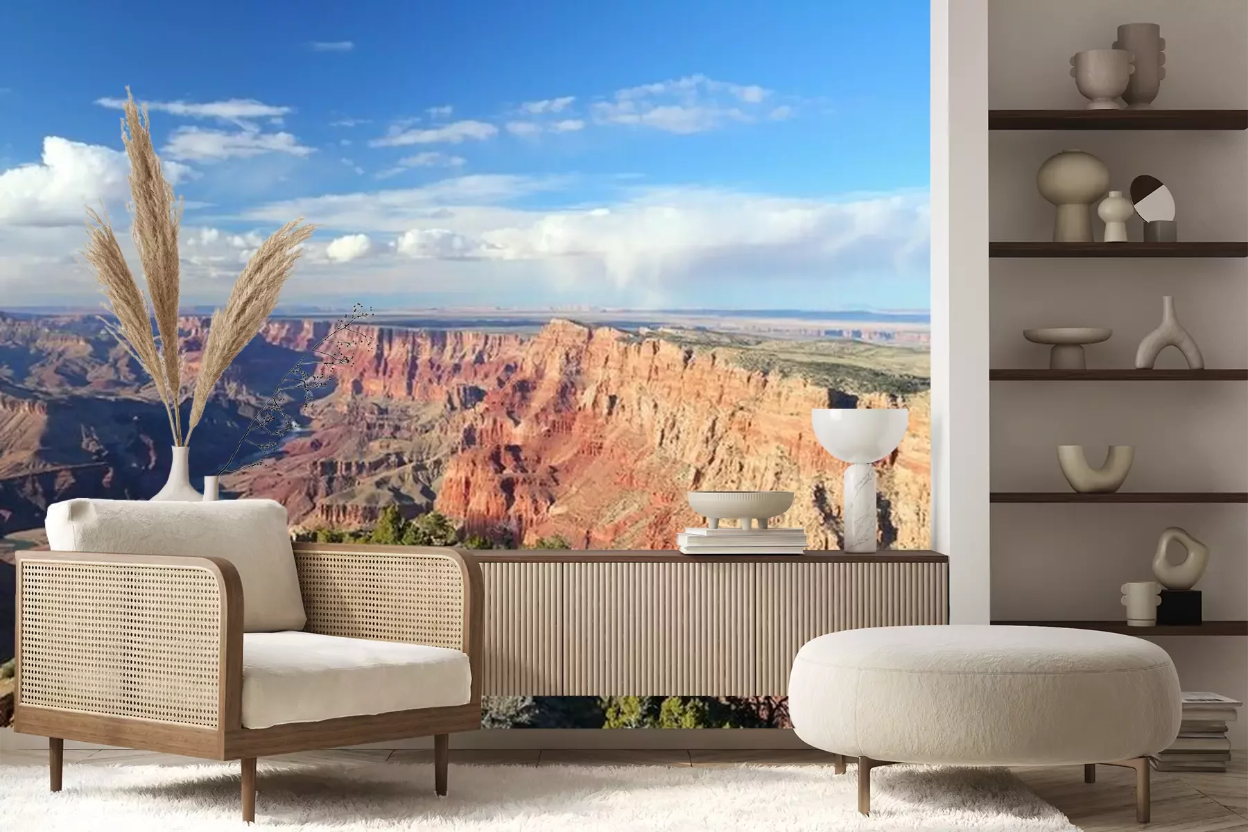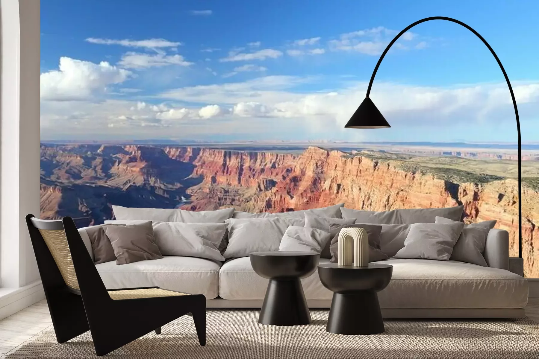 Het materiaal Premium+ is een gestructureerd vinyl op vlies met een gewicht van 255 g/m², dat kleine oneffenheden in de muur effectief camoufleert. De subtiele structuur van fijn zand geeft het oppervlak een exclusieve uitstraling, terwijl de halfmatte afwerking de diepte van de kleuren benadrukt. Het materiaal is dampdoorlatend, waardoor het ook in de keuken en badkamer kan worden gebruikt. De maximale breedte van één baan bedraagt 100 cm – bij grotere afmetingen wordt het fotobehang in meerdere gelijke banen verdeeld. De lijm wordt direct op de muur aangebracht en het behang wordt rand-aan-rand geplakt, wat zorgt voor een esthetisch resultaat zonder zichtbare naden. Het oppervlak kan gemakkelijk worden schoongemaakt door het voorzichtig af te nemen met een vochtige doek.