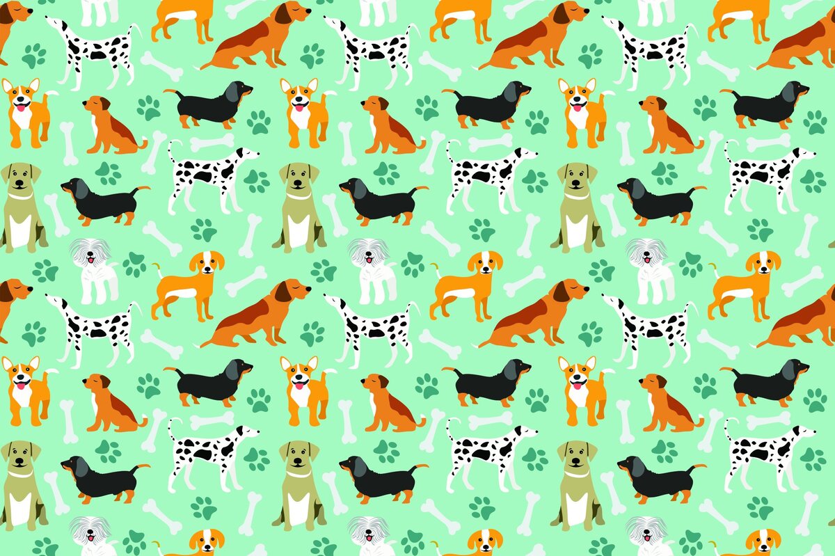 Fotobehang: Grappige honden en botten in een illustratief patroon