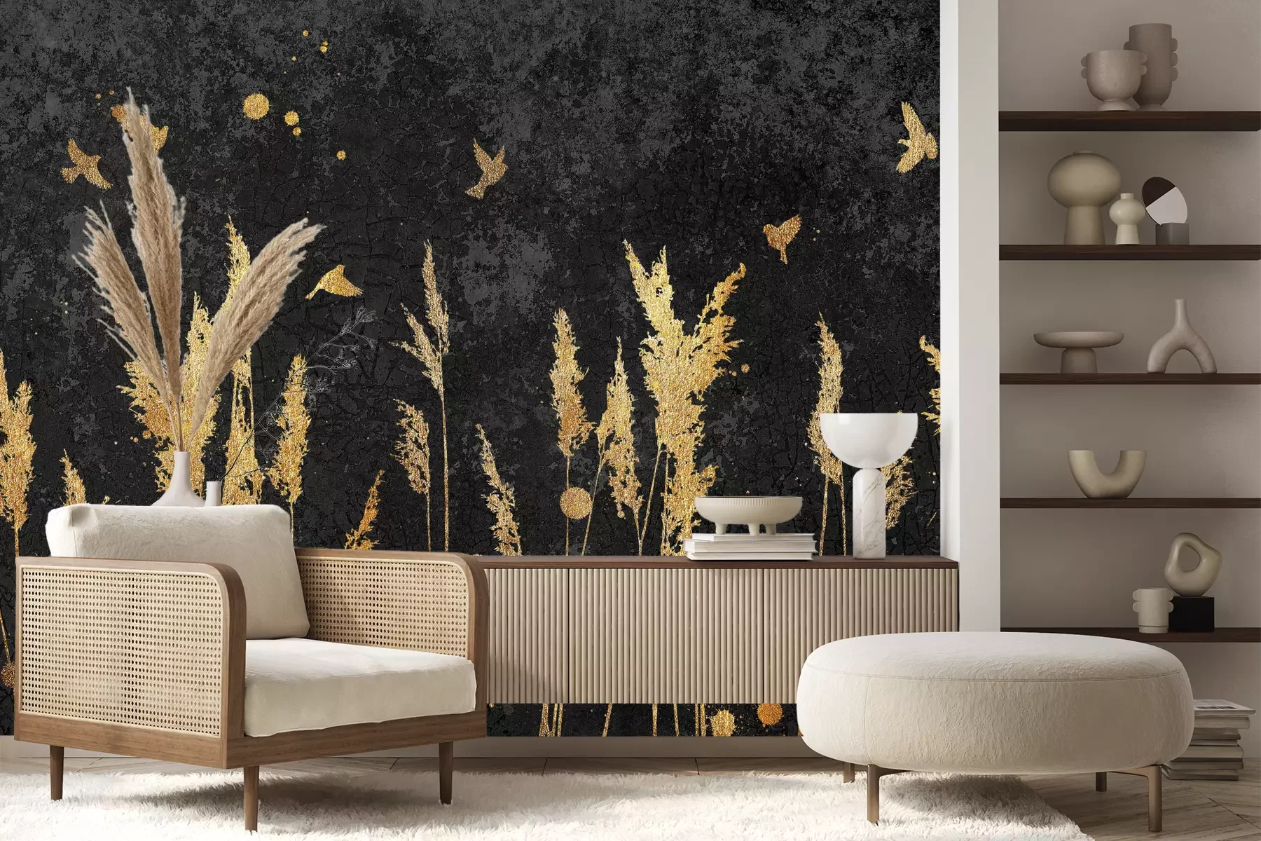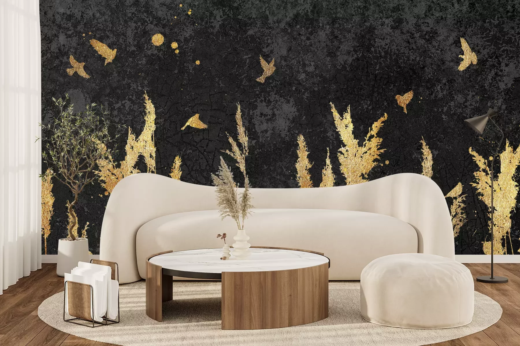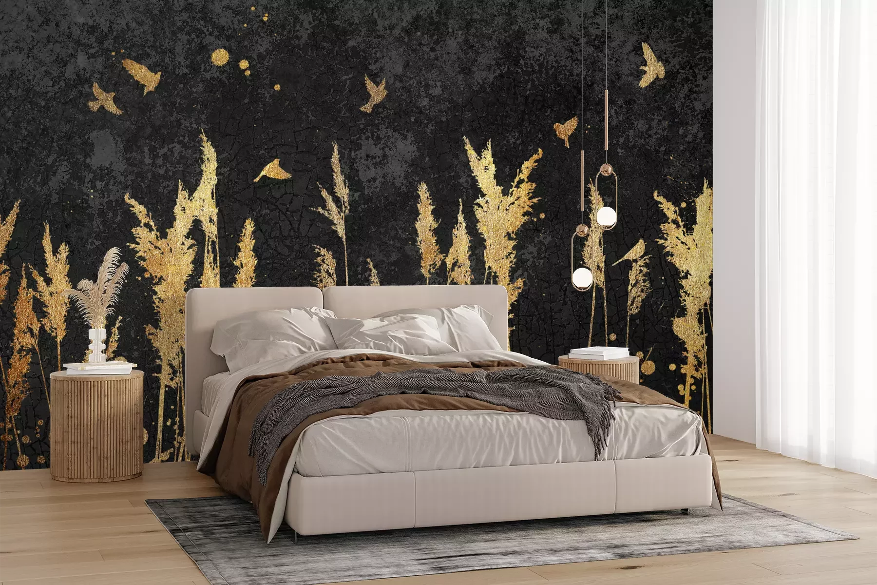 Het materiaal Premium+ is een gestructureerd vinyl op vlies met een gewicht van 255 g/m², dat kleine oneffenheden in de muur effectief camoufleert. De subtiele structuur van fijn zand geeft het oppervlak een exclusieve uitstraling, terwijl de halfmatte afwerking de diepte van de kleuren benadrukt. Het materiaal is dampdoorlatend, waardoor het ook in de keuken en badkamer kan worden gebruikt. De maximale breedte van één baan bedraagt 100 cm – bij grotere afmetingen wordt het fotobehang in meerdere gelijke banen verdeeld. De lijm wordt direct op de muur aangebracht en het behang wordt rand-aan-rand geplakt, wat zorgt voor een esthetisch resultaat zonder zichtbare naden. Het oppervlak kan gemakkelijk worden schoongemaakt door het voorzichtig af te nemen met een vochtige doek.