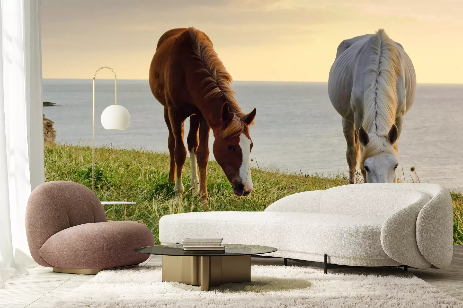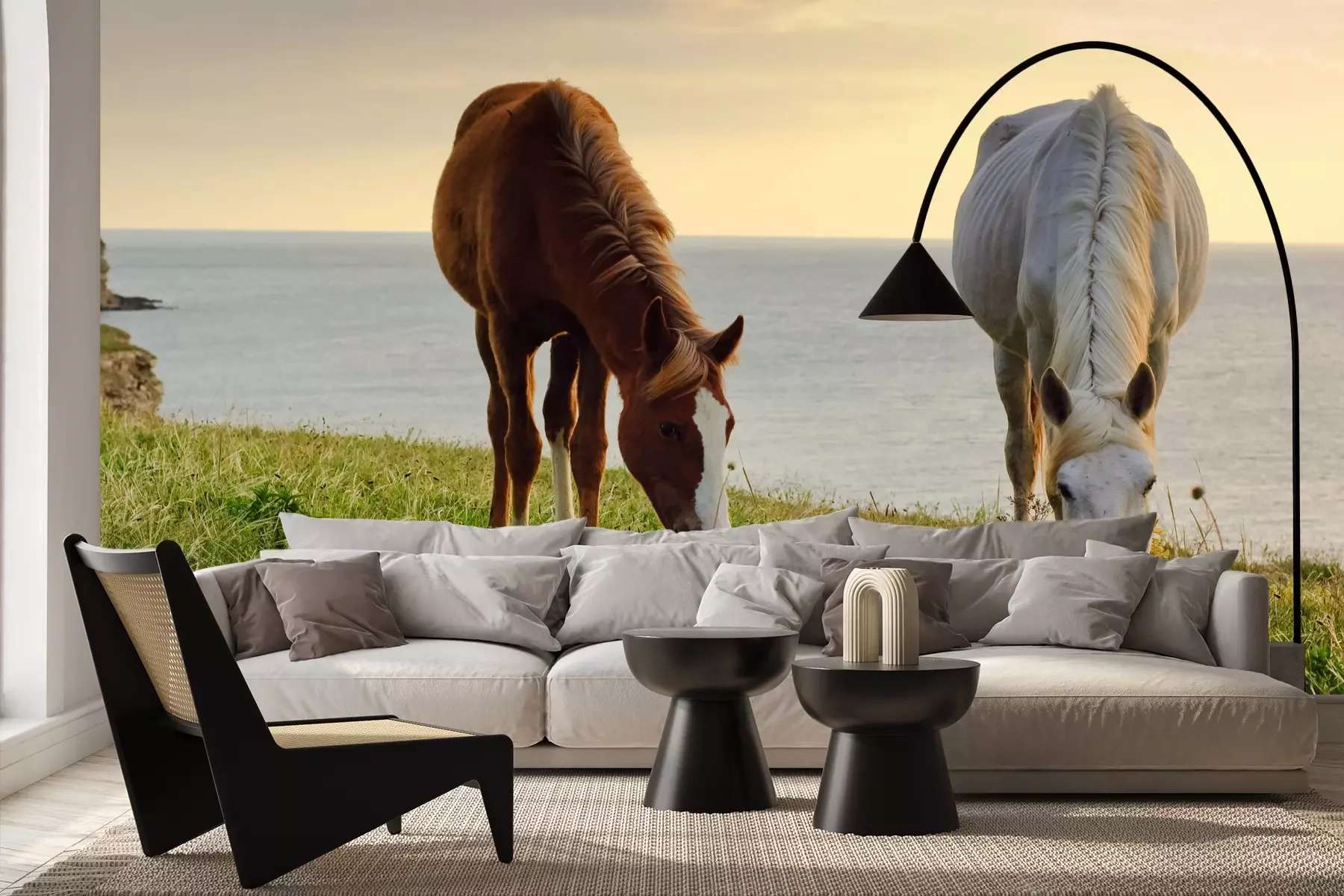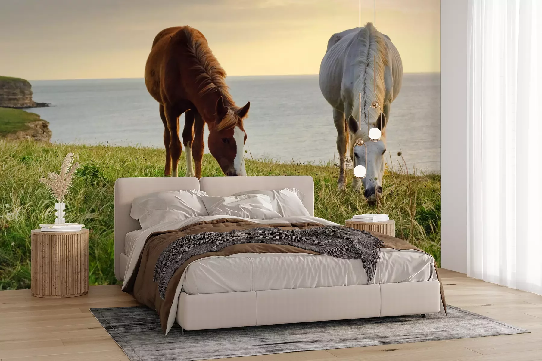 Het materiaal Premium+ is een gestructureerd vinyl op vlies met een gewicht van 255 g/m², dat kleine oneffenheden in de muur effectief camoufleert. De subtiele structuur van fijn zand geeft het oppervlak een exclusieve uitstraling, terwijl de halfmatte afwerking de diepte van de kleuren benadrukt. Het materiaal is dampdoorlatend, waardoor het ook in de keuken en badkamer kan worden gebruikt. De maximale breedte van één baan bedraagt 100 cm – bij grotere afmetingen wordt het fotobehang in meerdere gelijke banen verdeeld. De lijm wordt direct op de muur aangebracht en het behang wordt rand-aan-rand geplakt, wat zorgt voor een esthetisch resultaat zonder zichtbare naden. Het oppervlak kan gemakkelijk worden schoongemaakt door het voorzichtig af te nemen met een vochtige doek.