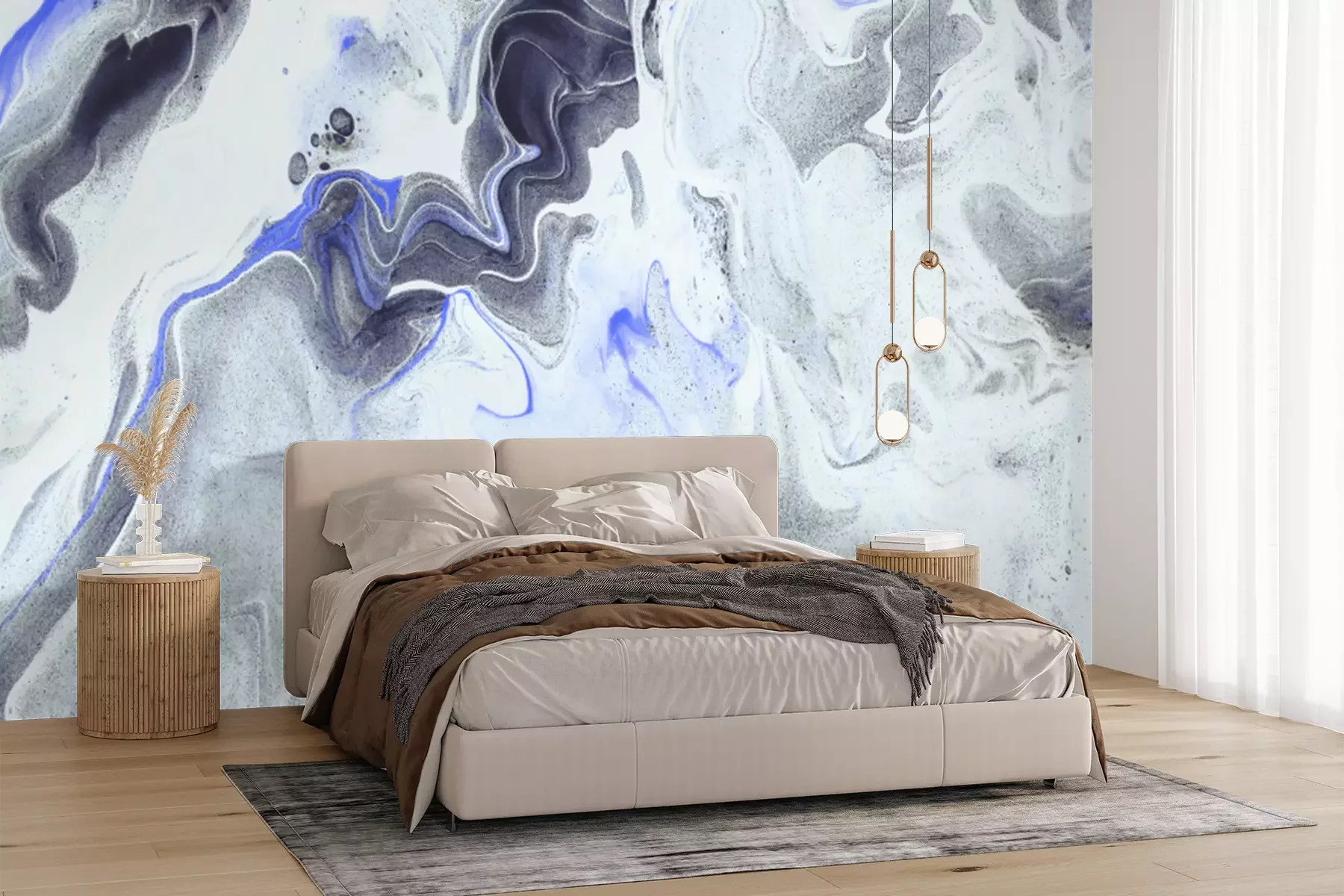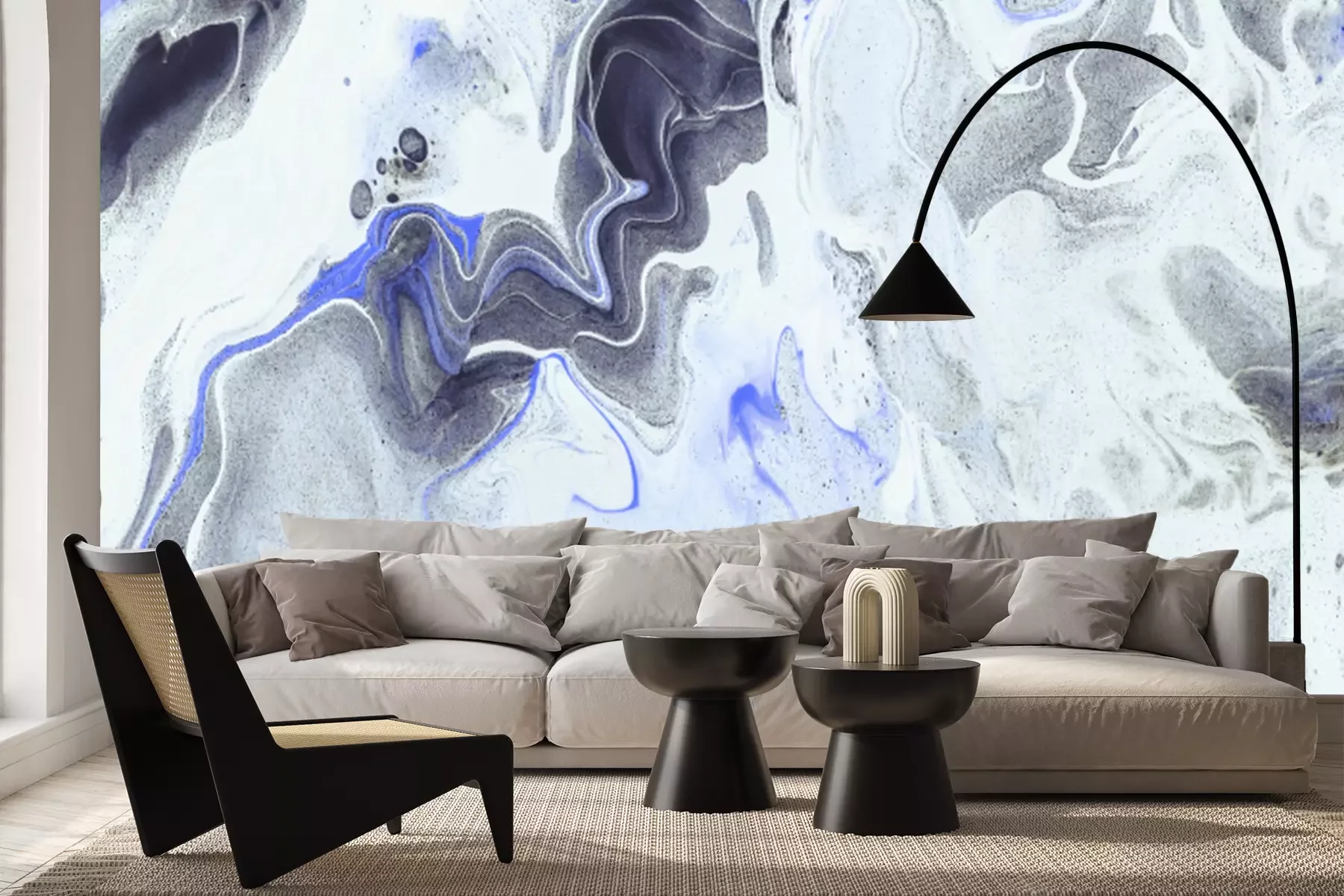 Grijs marmer met blauwe accenten
