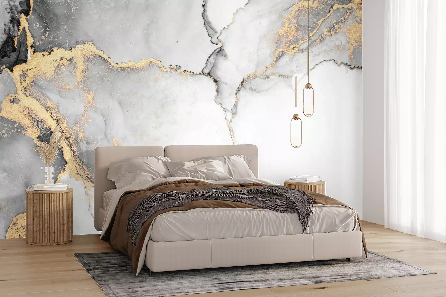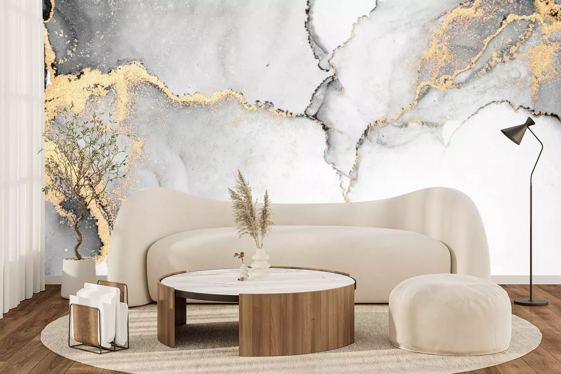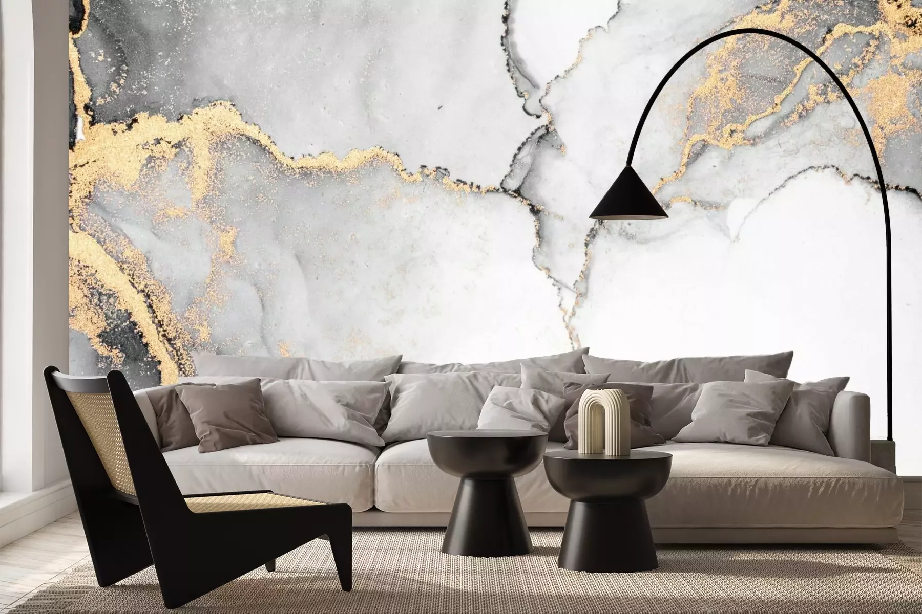 Aquarelmarmer met zwarte en gouden kleurFotobehang