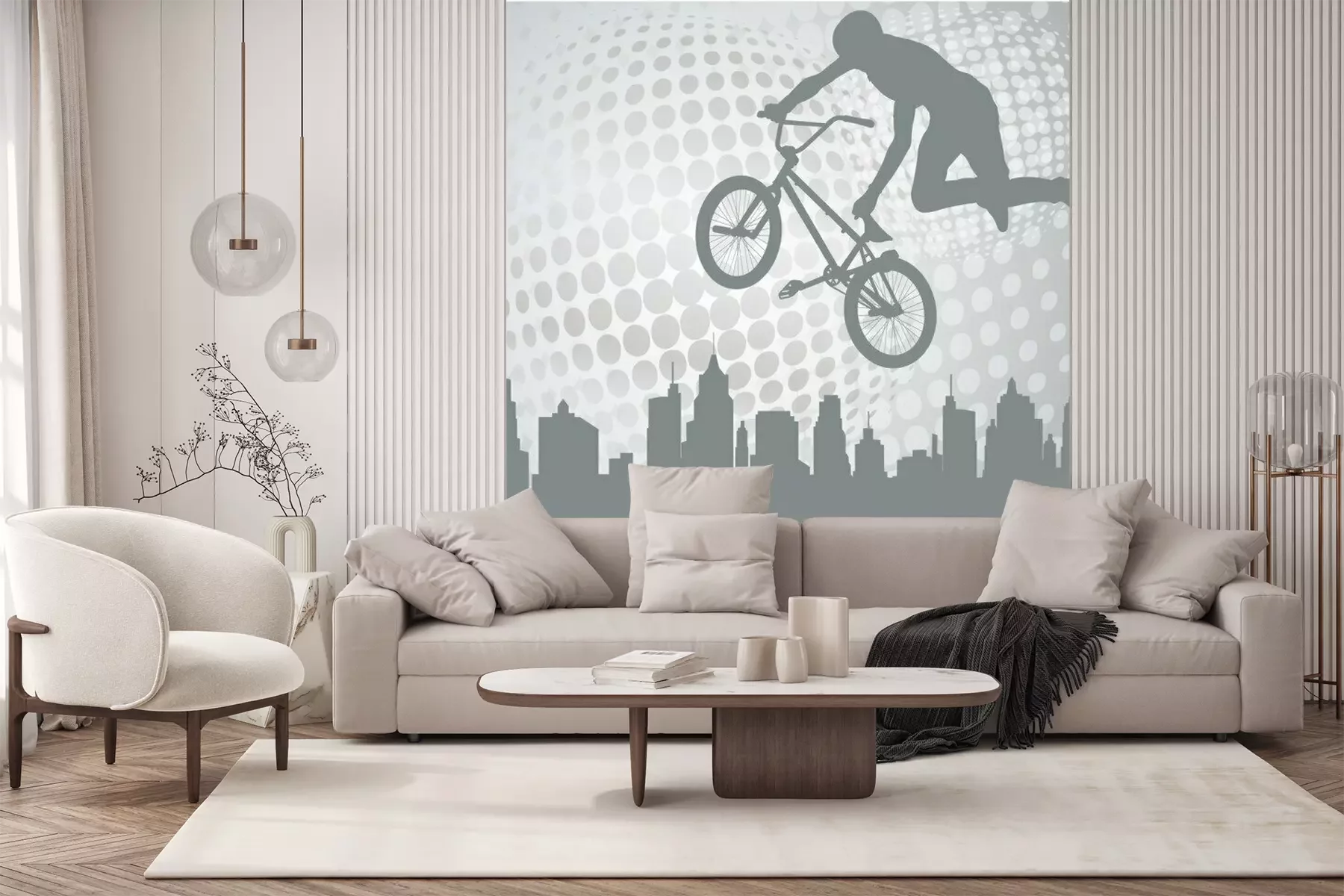 Het fotobehang wordt geleverd in banen. De afmetingen en het aantal banen waaruit het volledige fotobehang bestaat, zijn afhankelijk van het gekozen materiaal. Wanneer het formaat de maximale materiaalbreedte overschrijdt, bestaat de print uit meerdere gelijkmatige banen.