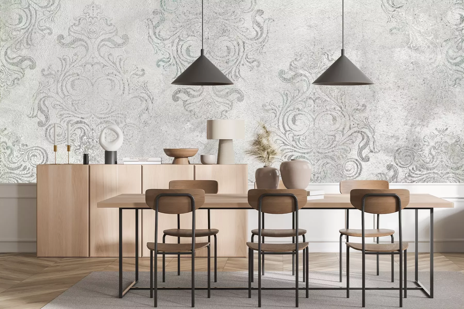 Het materiaal Standard is een hoogwaardig latexmateriaal met een glad, mat oppervlak. Dankzij de HP Latex-printtechnologie zijn de kleuren intens, duurzaam en UV-bestendig, waardoor het patroon jarenlang een onberispelijke uitstraling behoudt. Vervuilde oppervlakken kunnen voorzichtig worden afgeveegd met een droge doek. De maximale breedte van één baan bedraagt 95 cm of 105 cm – afhankelijk van de bestelde fotobehangbreedte. Bij grotere afmetingen wordt het patroon verdeeld over meerdere gelijkmatige banen. Het fotobehang wordt rand-aan-randaangebracht, wat vrijwel onzichtbare naden mogelijk maakt.