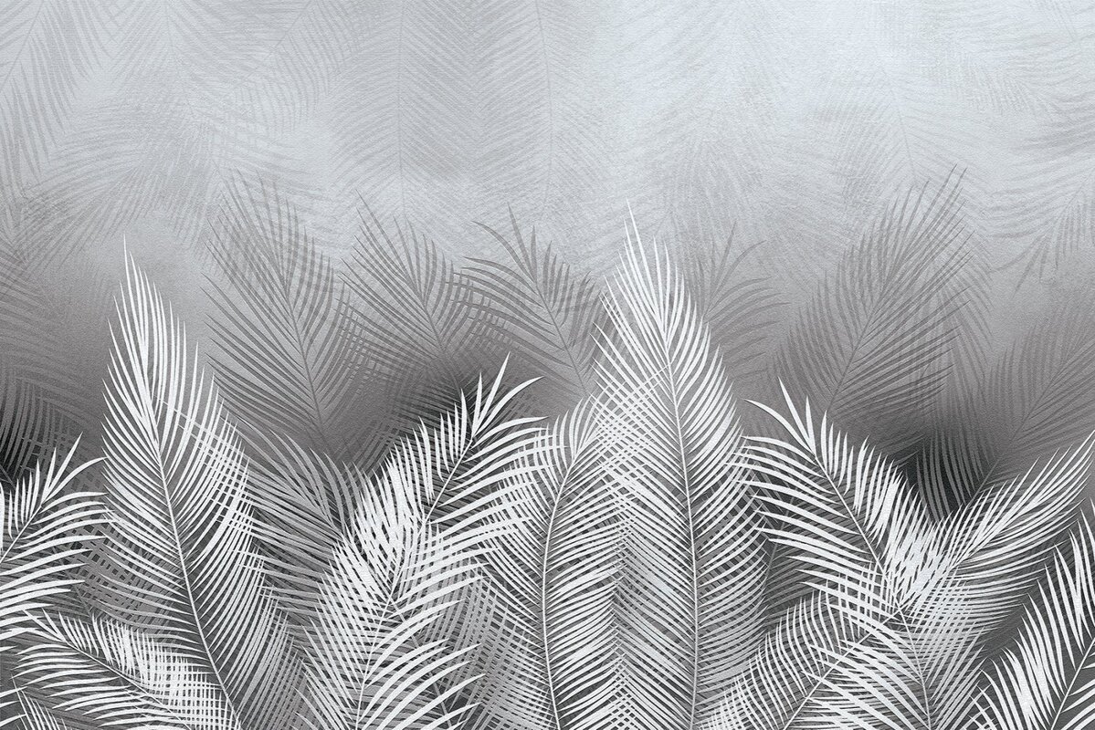 Fotobehang: Grijze en witte palmbladeren met een betonnen achtergrondeffect