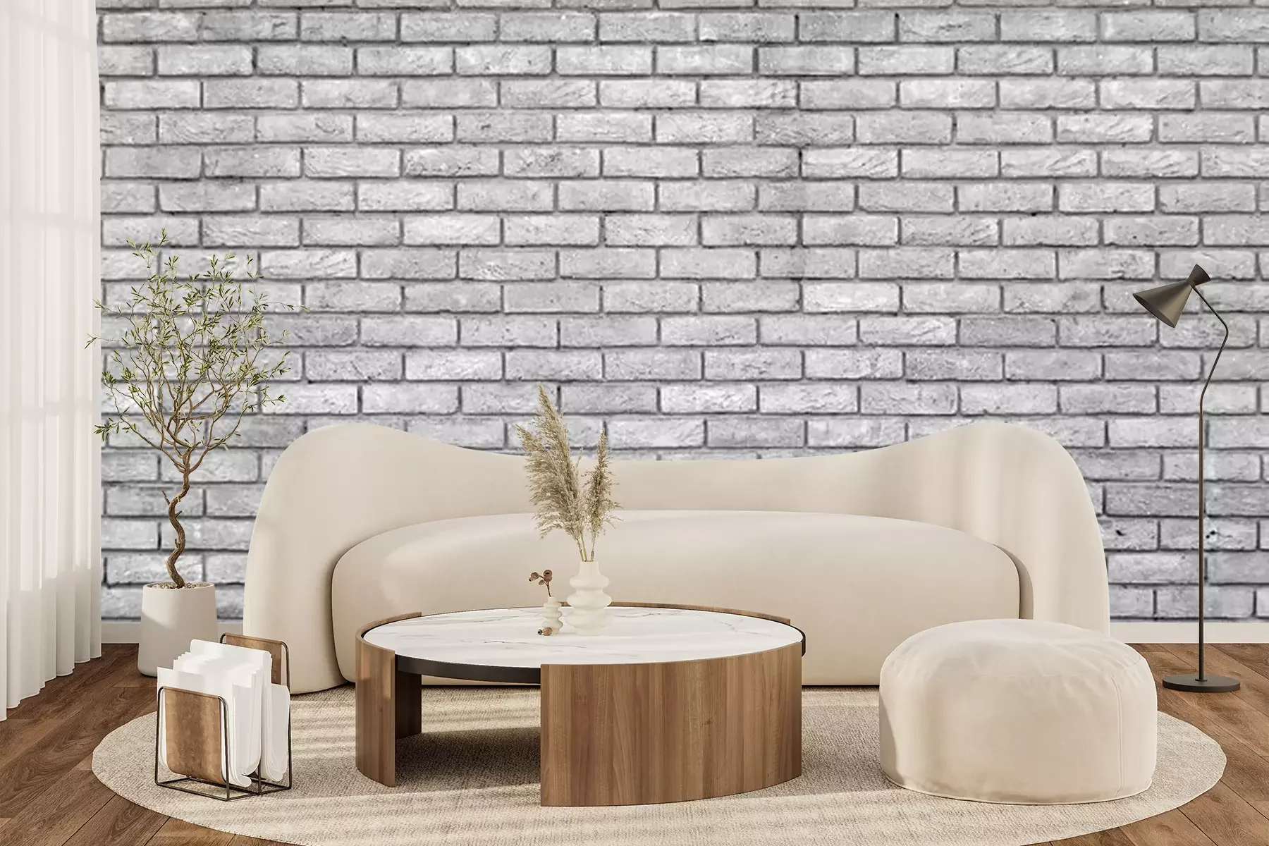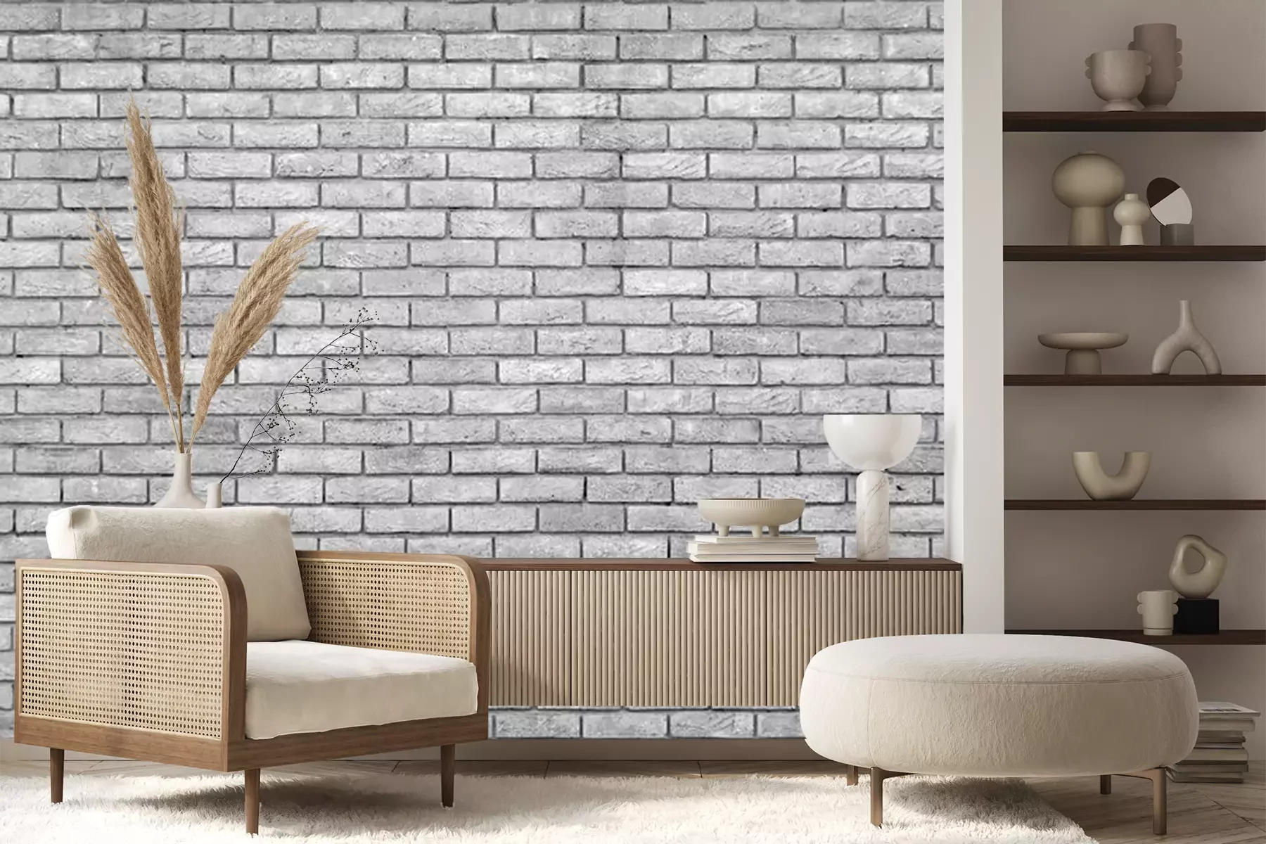 Fotobehang Grijze monochrome bakstenen textuur