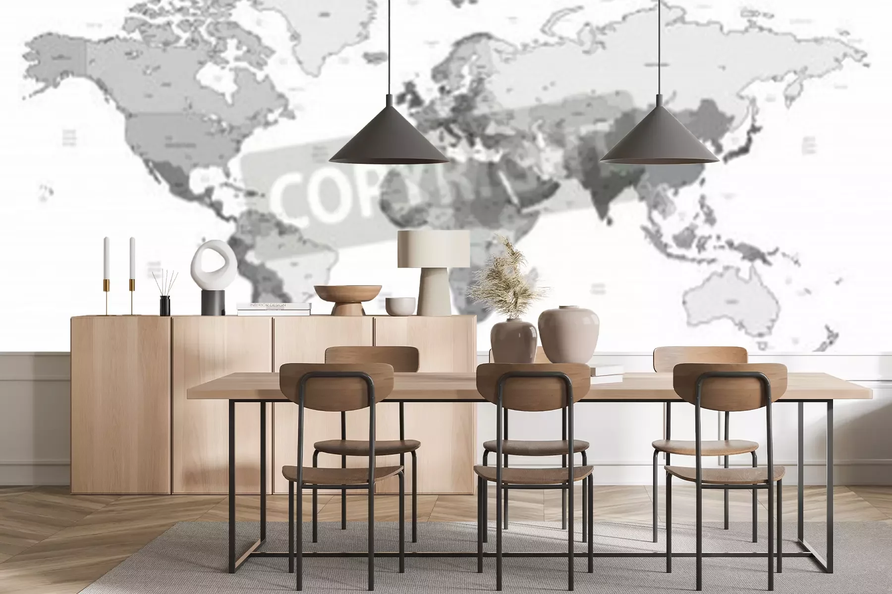 Fotobehang Grijze wereldkaart