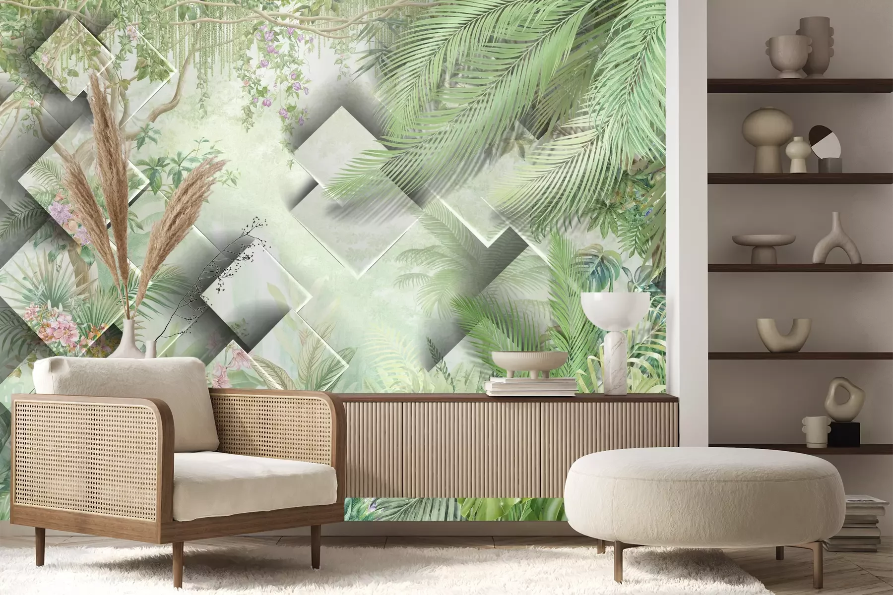 Het materiaal Premium+ is een gestructureerd vinyl op vlies met een gewicht van 255 g/m², dat kleine oneffenheden in de muur effectief camoufleert. De subtiele structuur van fijn zand geeft het oppervlak een exclusieve uitstraling, terwijl de halfmatte afwerking de diepte van de kleuren benadrukt. Het materiaal is dampdoorlatend, waardoor het ook in de keuken en badkamer kan worden gebruikt. De maximale breedte van één baan bedraagt 100 cm – bij grotere afmetingen wordt het fotobehang in meerdere gelijke banen verdeeld. De lijm wordt direct op de muur aangebracht en het behang wordt rand-aan-rand geplakt, wat zorgt voor een esthetisch resultaat zonder zichtbare naden. Het oppervlak kan gemakkelijk worden schoongemaakt door het voorzichtig af te nemen met een vochtige doek.