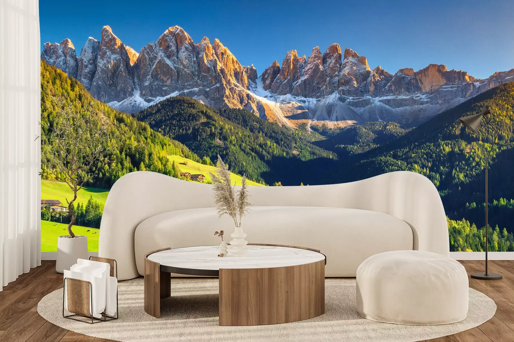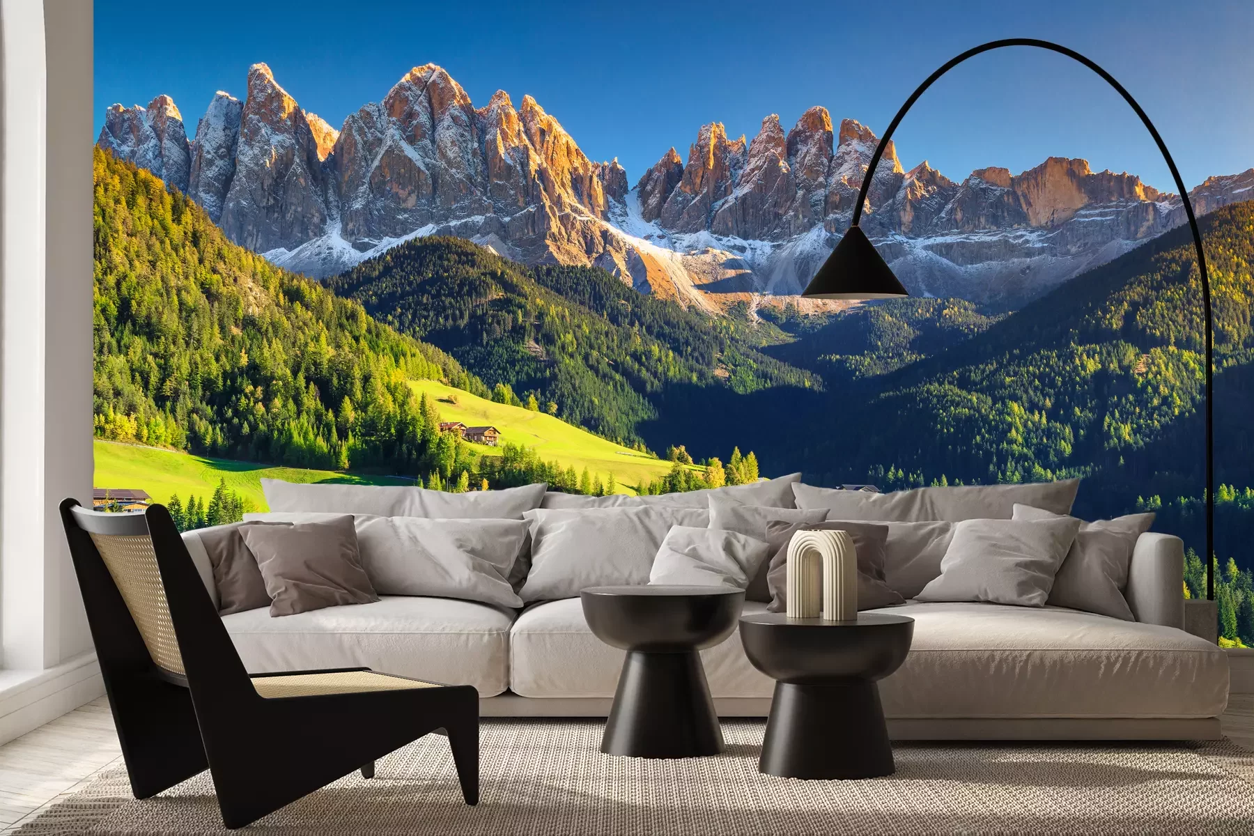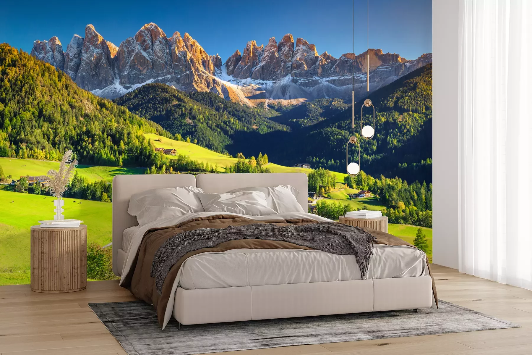 Het materiaal Premium+ is een gestructureerd vinyl op vlies met een gewicht van 255 g/m², dat kleine oneffenheden in de muur effectief camoufleert. De subtiele structuur van fijn zand geeft het oppervlak een exclusieve uitstraling, terwijl de halfmatte afwerking de diepte van de kleuren benadrukt. Het materiaal is dampdoorlatend, waardoor het ook in de keuken en badkamer kan worden gebruikt. De maximale breedte van één baan bedraagt 100 cm – bij grotere afmetingen wordt het fotobehang in meerdere gelijke banen verdeeld. De lijm wordt direct op de muur aangebracht en het behang wordt rand-aan-rand geplakt, wat zorgt voor een esthetisch resultaat zonder zichtbare naden. Het oppervlak kan gemakkelijk worden schoongemaakt door het voorzichtig af te nemen met een vochtige doek.