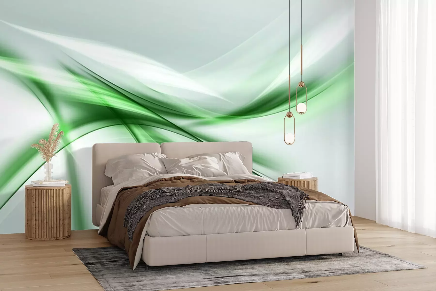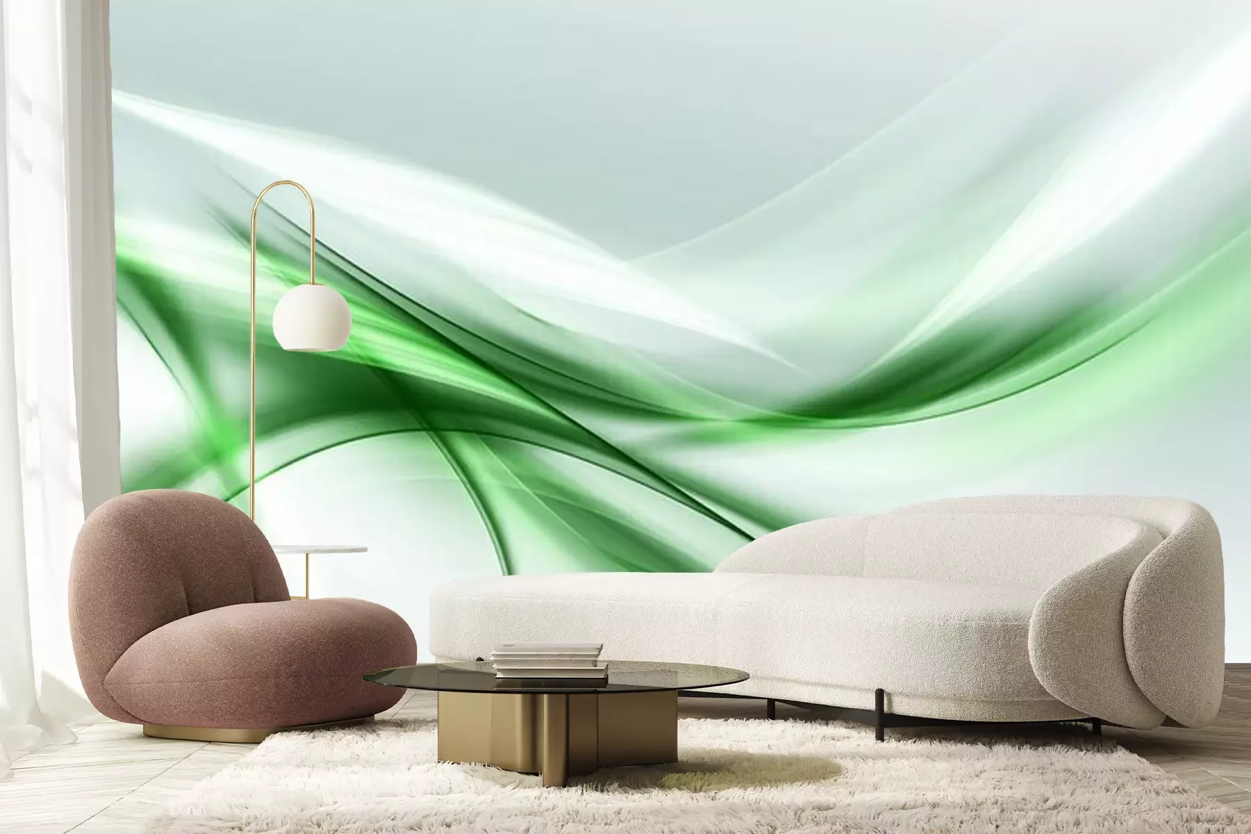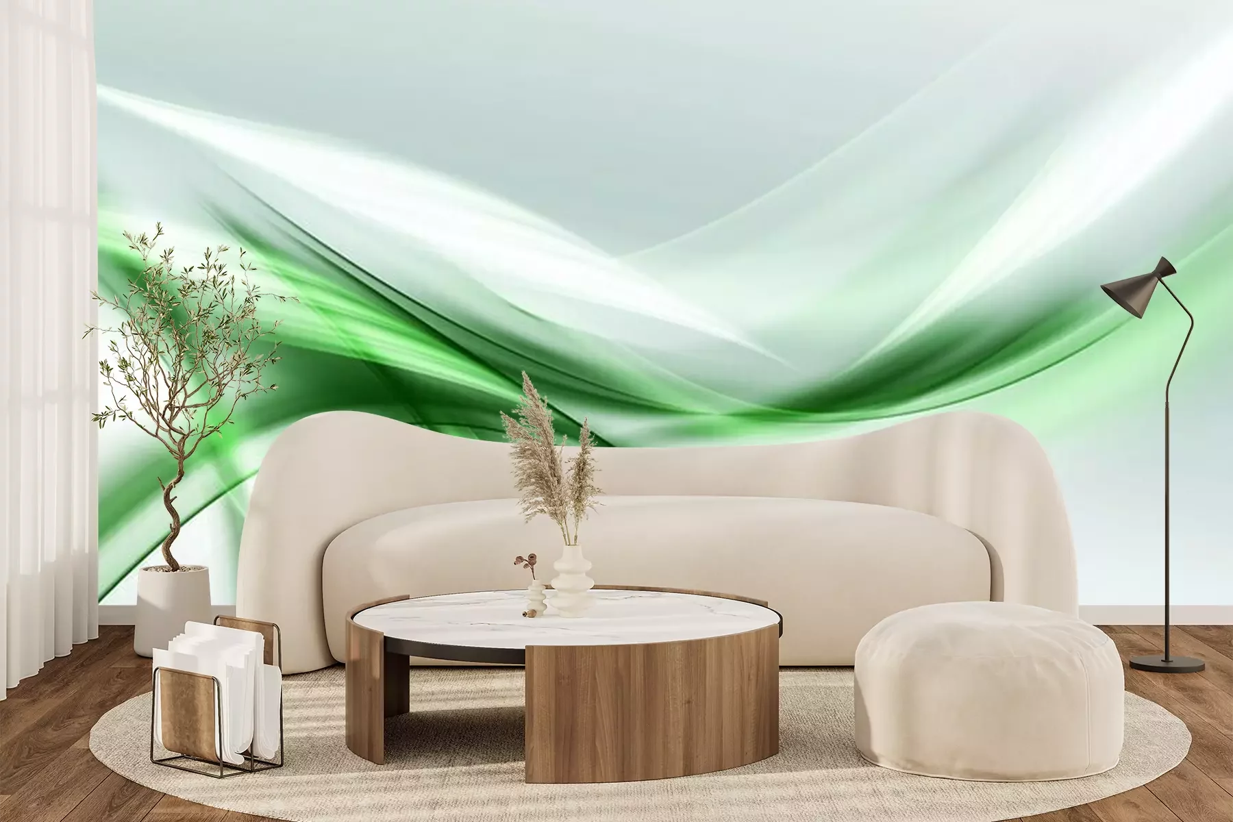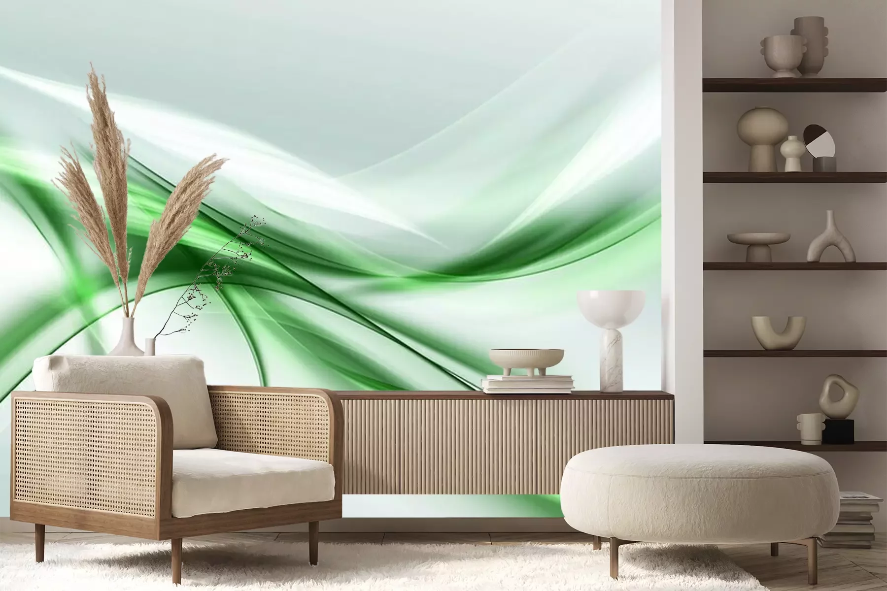 Fotobehang Groen-witte abstractie