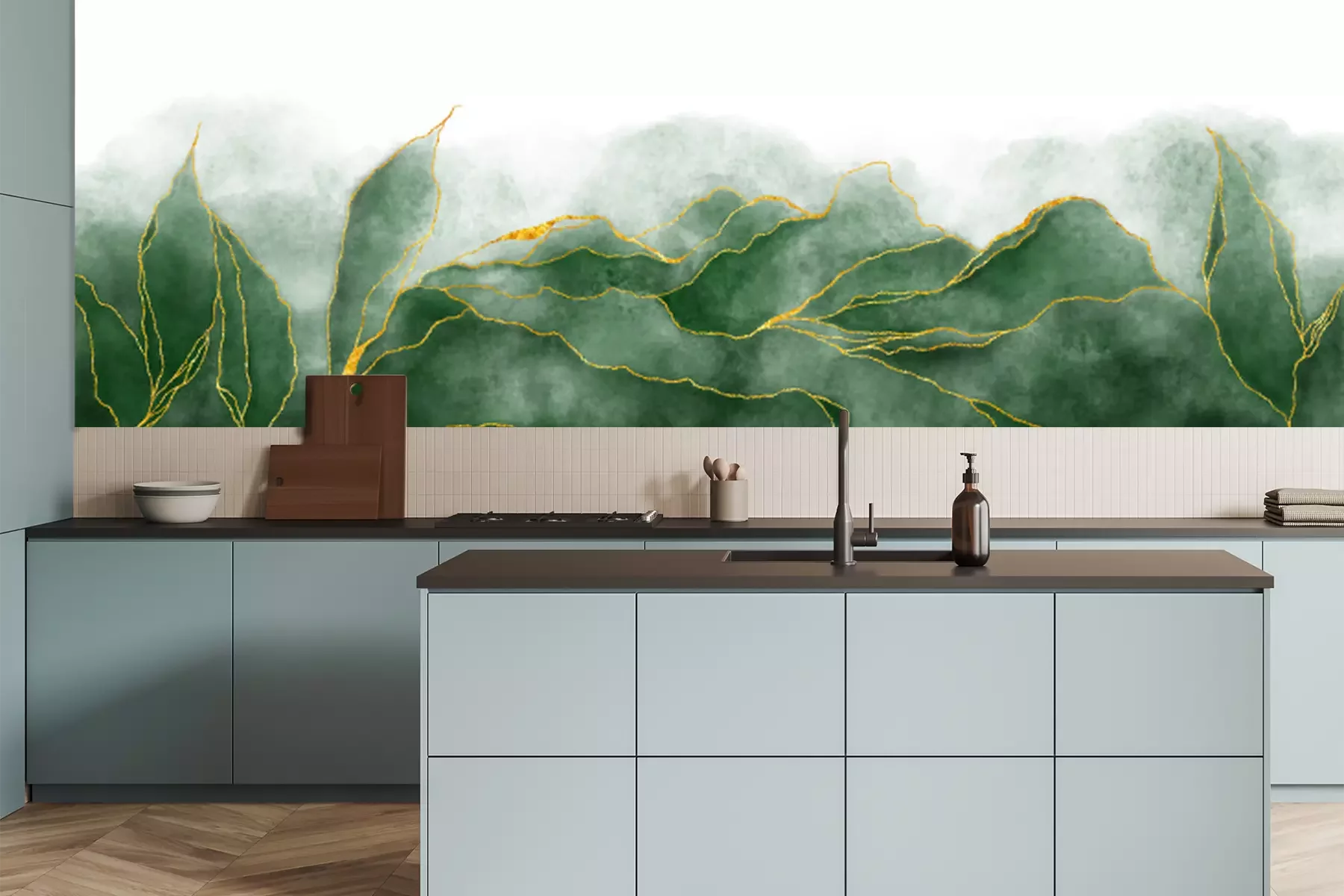 Fotobehang Groene bladeren van marmer