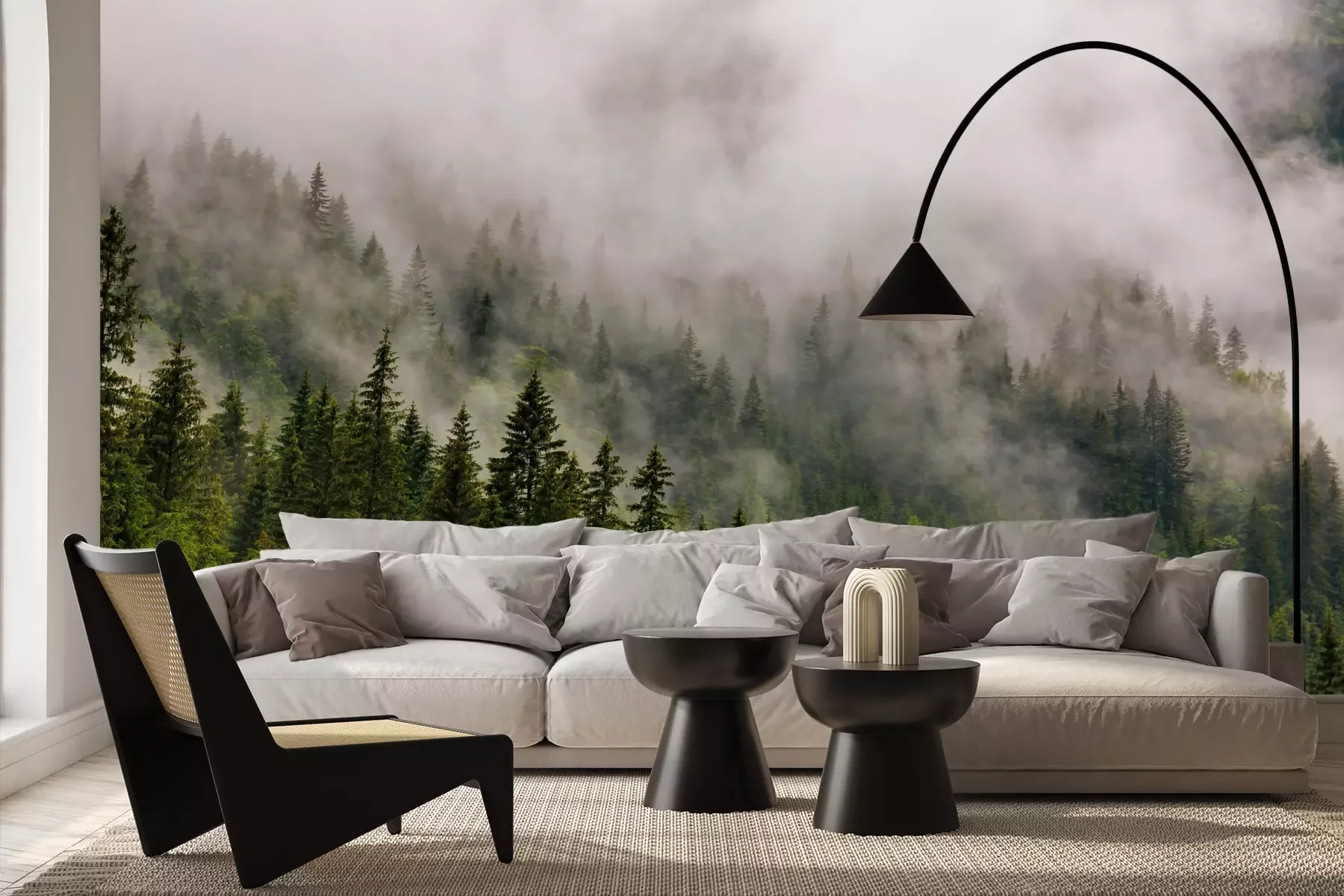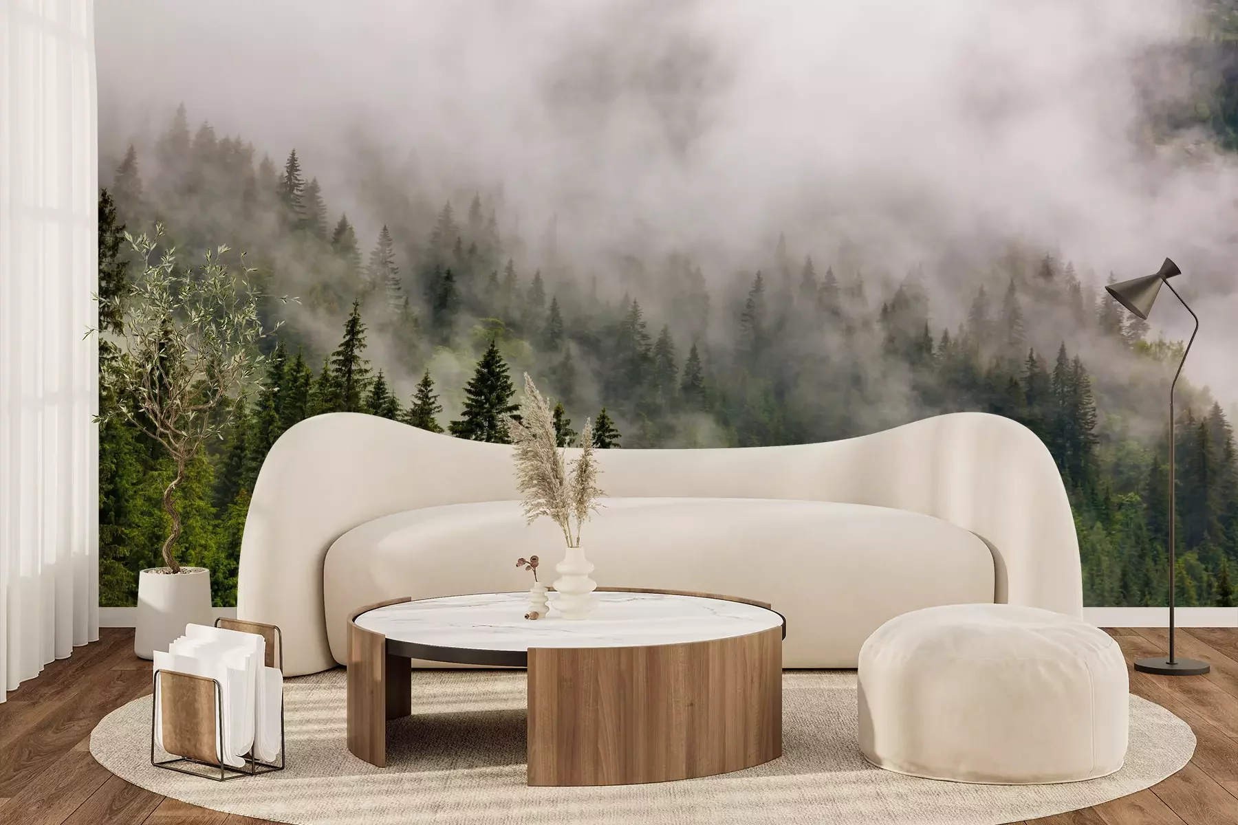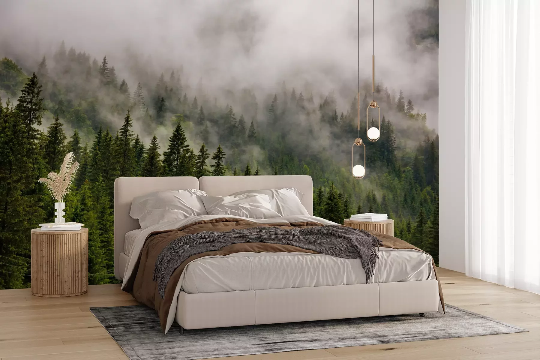 Het materiaal Premium+ is een gestructureerd vinyl op vlies met een gewicht van 255 g/m², dat kleine oneffenheden in de muur effectief camoufleert. De subtiele structuur van fijn zand geeft het oppervlak een exclusieve uitstraling, terwijl de halfmatte afwerking de diepte van de kleuren benadrukt. Het materiaal is dampdoorlatend, waardoor het ook in de keuken en badkamer kan worden gebruikt. De maximale breedte van één baan bedraagt 100 cm – bij grotere afmetingen wordt het fotobehang in meerdere gelijke banen verdeeld. De lijm wordt direct op de muur aangebracht en het behang wordt rand-aan-rand geplakt, wat zorgt voor een esthetisch resultaat zonder zichtbare naden. Het oppervlak kan gemakkelijk worden schoongemaakt door het voorzichtig af te nemen met een vochtige doek.