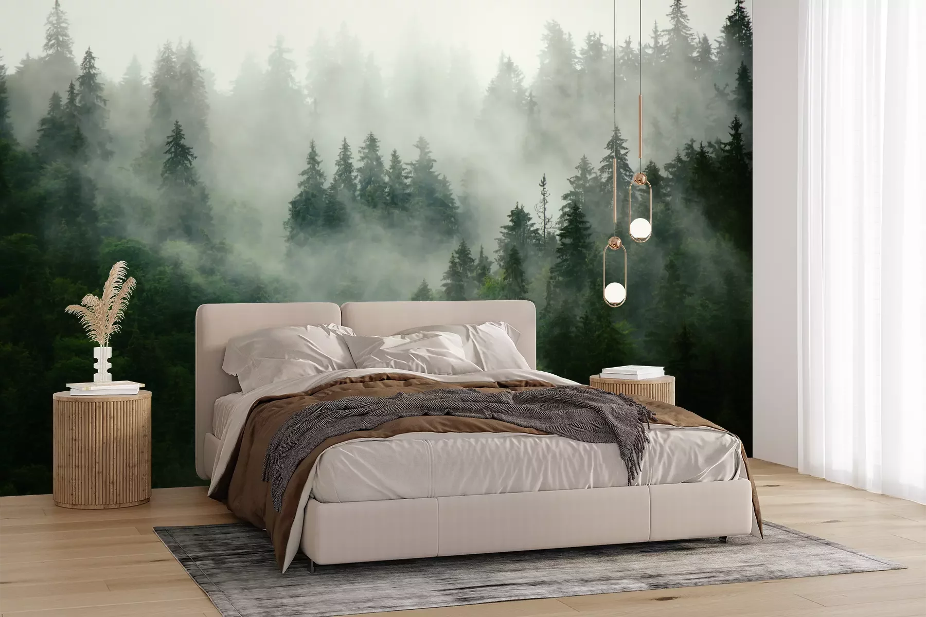 Het materiaal Premium+ is een gestructureerd vinyl op vlies met een gewicht van 255 g/m², dat kleine oneffenheden in de muur effectief camoufleert. De subtiele structuur van fijn zand geeft het oppervlak een exclusieve uitstraling, terwijl de halfmatte afwerking de diepte van de kleuren benadrukt. Het materiaal is dampdoorlatend, waardoor het ook in de keuken en badkamer kan worden gebruikt. De maximale breedte van één baan bedraagt 100 cm – bij grotere afmetingen wordt het fotobehang in meerdere gelijke banen verdeeld. De lijm wordt direct op de muur aangebracht en het behang wordt rand-aan-rand geplakt, wat zorgt voor een esthetisch resultaat zonder zichtbare naden. Het oppervlak kan gemakkelijk worden schoongemaakt door het voorzichtig af te nemen met een vochtige doek.