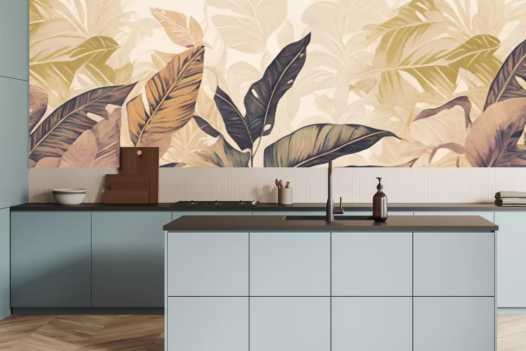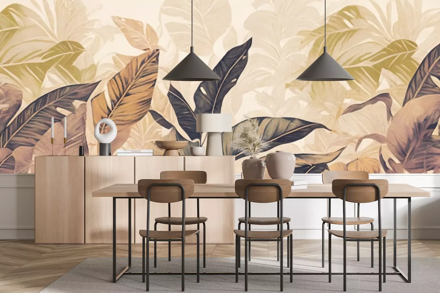 Fotobehang Groene jungle in de kleuren beige en bruin