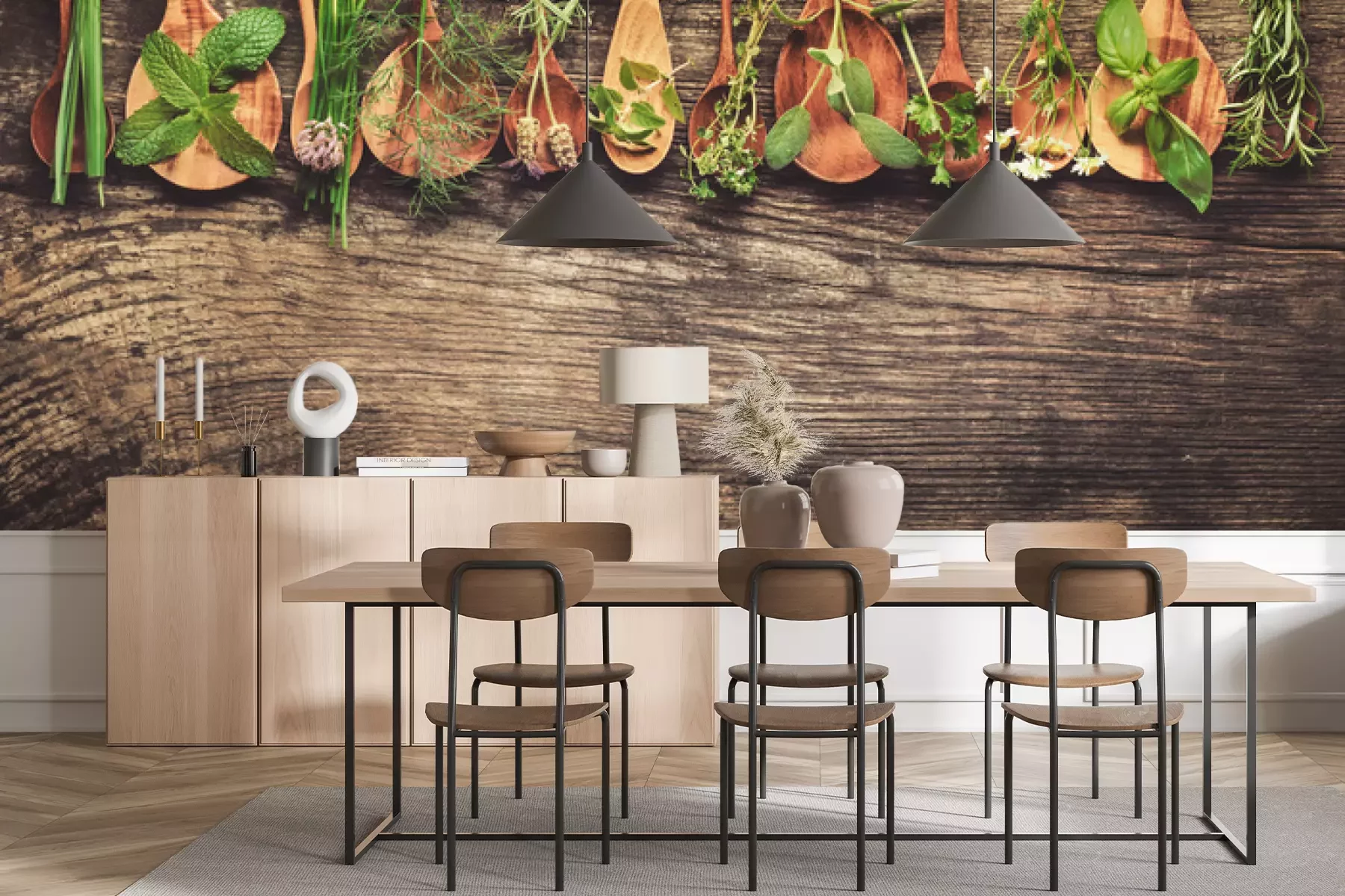 Het materiaal Standard is een hoogwaardig latexmateriaal met een glad, mat oppervlak. Dankzij de HP Latex-printtechnologie zijn de kleuren intens, duurzaam en UV-bestendig, waardoor het patroon jarenlang een onberispelijke uitstraling behoudt. Vervuilde oppervlakken kunnen voorzichtig worden afgeveegd met een droge doek. De maximale breedte van één baan bedraagt 95 cm of 105 cm – afhankelijk van de bestelde fotobehangbreedte. Bij grotere afmetingen wordt het patroon verdeeld over meerdere gelijkmatige banen. Het fotobehang wordt rand-aan-randaangebracht, wat vrijwel onzichtbare naden mogelijk maakt.