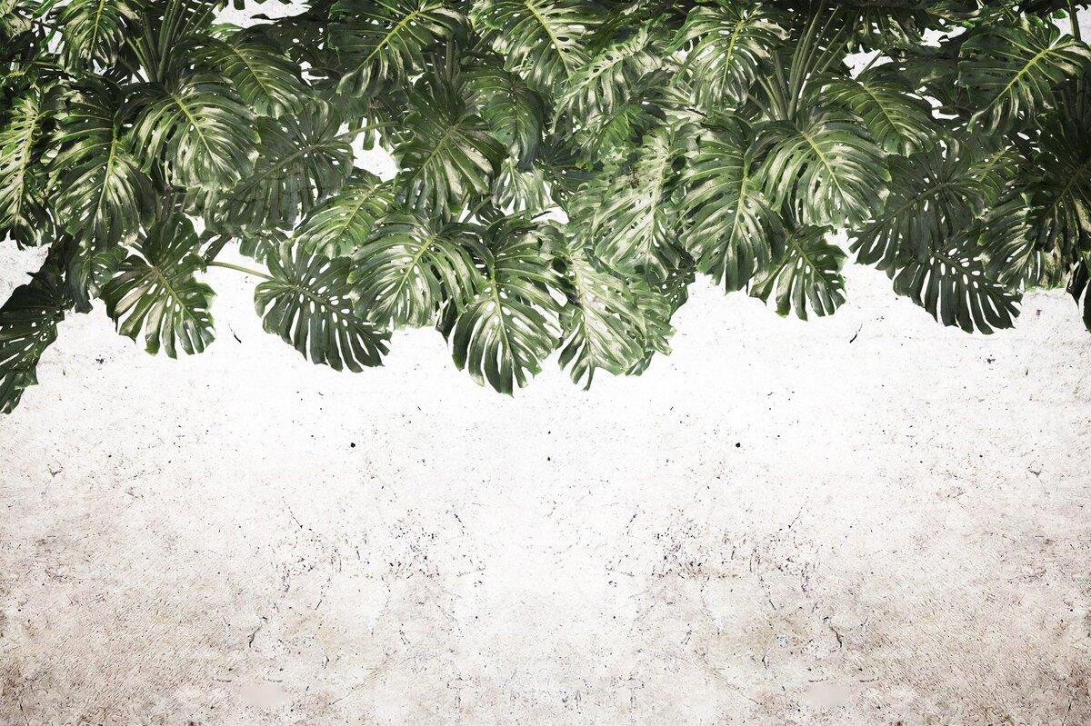 Fotobehang: Groene monsterabladeren hangen erboven