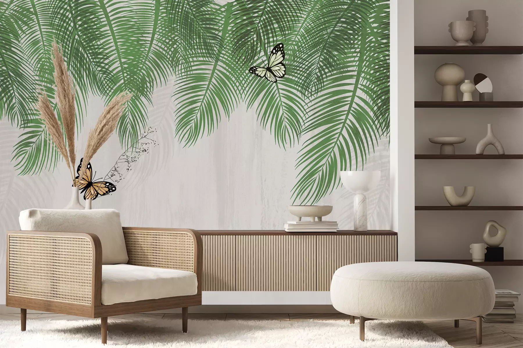 Het materiaal Premium+ is een gestructureerd vinyl op vlies met een gewicht van 255 g/m², dat kleine oneffenheden in de muur effectief camoufleert. De subtiele structuur van fijn zand geeft het oppervlak een exclusieve uitstraling, terwijl de halfmatte afwerking de diepte van de kleuren benadrukt. Het materiaal is dampdoorlatend, waardoor het ook in de keuken en badkamer kan worden gebruikt. De maximale breedte van één baan bedraagt 100 cm – bij grotere afmetingen wordt het fotobehang in meerdere gelijke banen verdeeld. De lijm wordt direct op de muur aangebracht en het behang wordt rand-aan-rand geplakt, wat zorgt voor een esthetisch resultaat zonder zichtbare naden. Het oppervlak kan gemakkelijk worden schoongemaakt door het voorzichtig af te nemen met een vochtige doek.