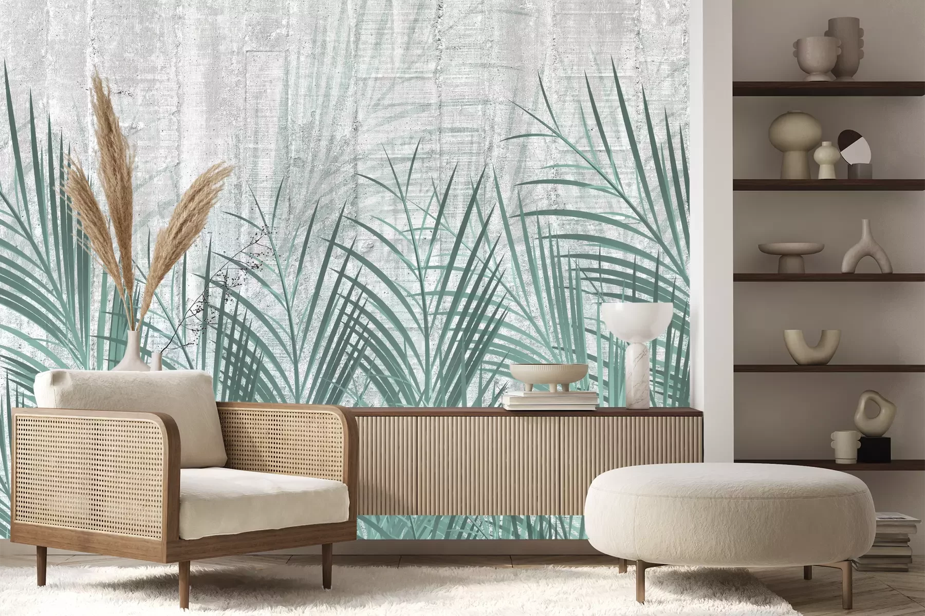 Het materiaal Premium+ is een gestructureerd vinyl op vlies met een gewicht van 255 g/m², dat kleine oneffenheden in de muur effectief camoufleert. De subtiele structuur van fijn zand geeft het oppervlak een exclusieve uitstraling, terwijl de halfmatte afwerking de diepte van de kleuren benadrukt. Het materiaal is dampdoorlatend, waardoor het ook in de keuken en badkamer kan worden gebruikt. De maximale breedte van één baan bedraagt 100 cm – bij grotere afmetingen wordt het fotobehang in meerdere gelijke banen verdeeld. De lijm wordt direct op de muur aangebracht en het behang wordt rand-aan-rand geplakt, wat zorgt voor een esthetisch resultaat zonder zichtbare naden. Het oppervlak kan gemakkelijk worden schoongemaakt door het voorzichtig af te nemen met een vochtige doek.