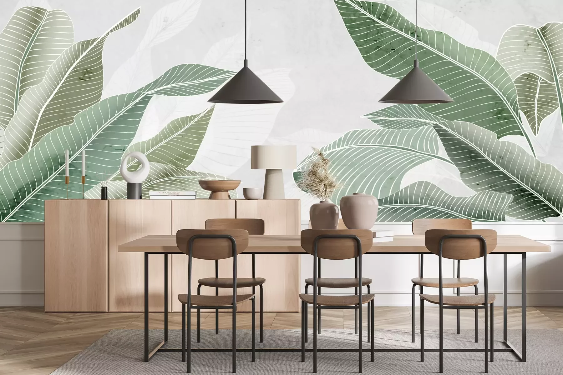 Het materiaal Premium+ is een gestructureerd vinyl op vlies met een gewicht van 255 g/m², dat kleine oneffenheden in de muur effectief camoufleert. De subtiele structuur van fijn zand geeft het oppervlak een exclusieve uitstraling, terwijl de halfmatte afwerking de diepte van de kleuren benadrukt. Het materiaal is dampdoorlatend, waardoor het ook in de keuken en badkamer kan worden gebruikt. De maximale breedte van één baan bedraagt 100 cm – bij grotere afmetingen wordt het fotobehang in meerdere gelijke banen verdeeld. De lijm wordt direct op de muur aangebracht en het behang wordt rand-aan-rand geplakt, wat zorgt voor een esthetisch resultaat zonder zichtbare naden. Het oppervlak kan gemakkelijk worden schoongemaakt door het voorzichtig af te nemen met een vochtige doek.