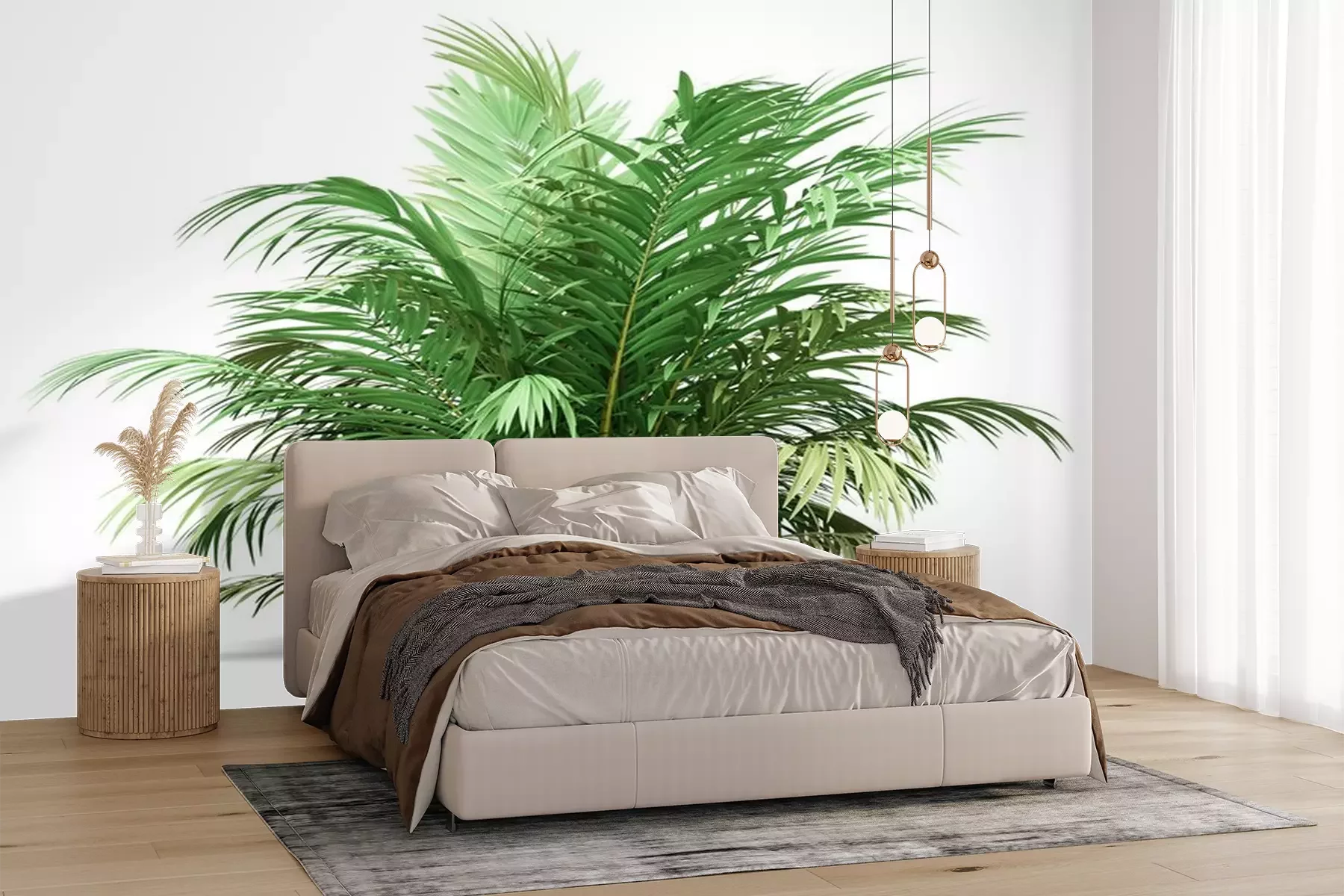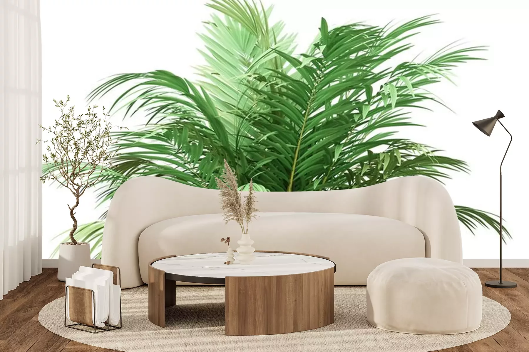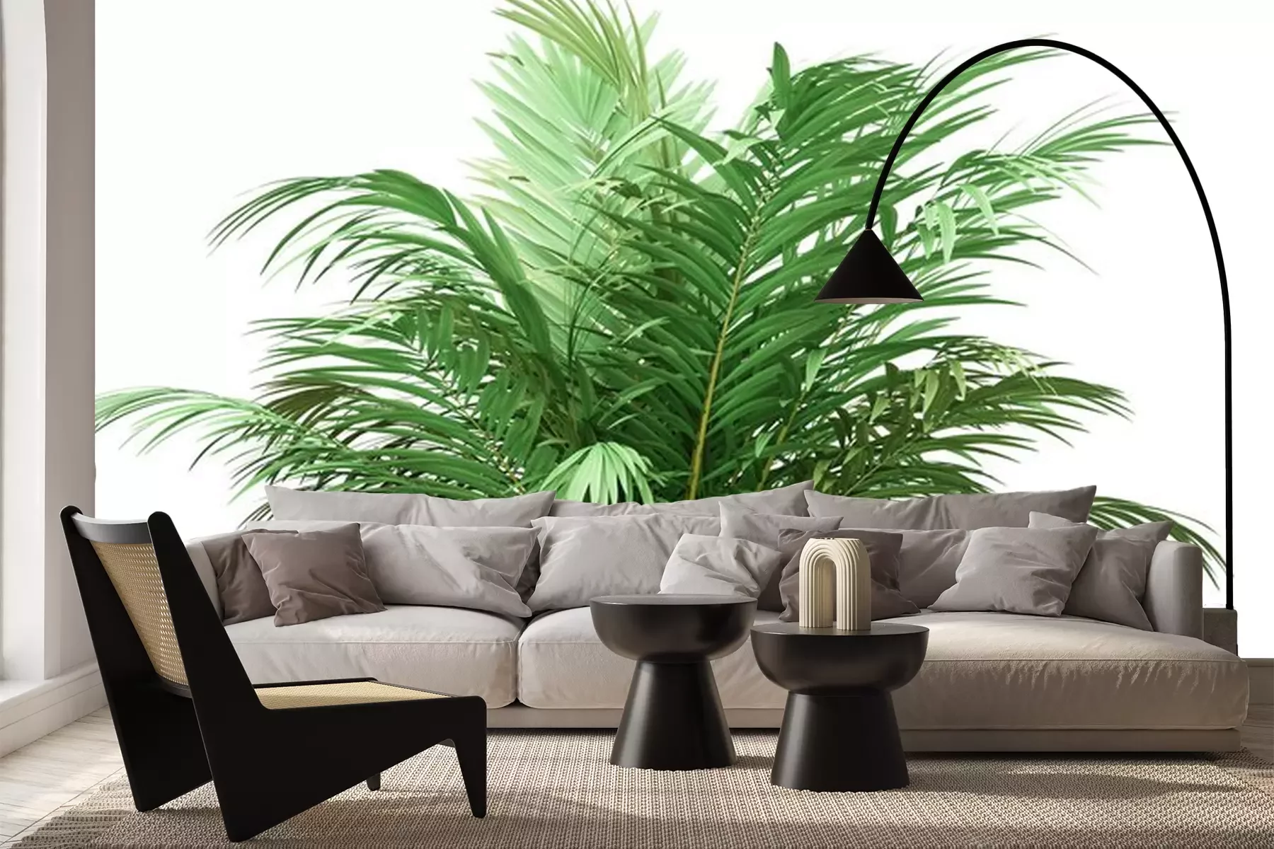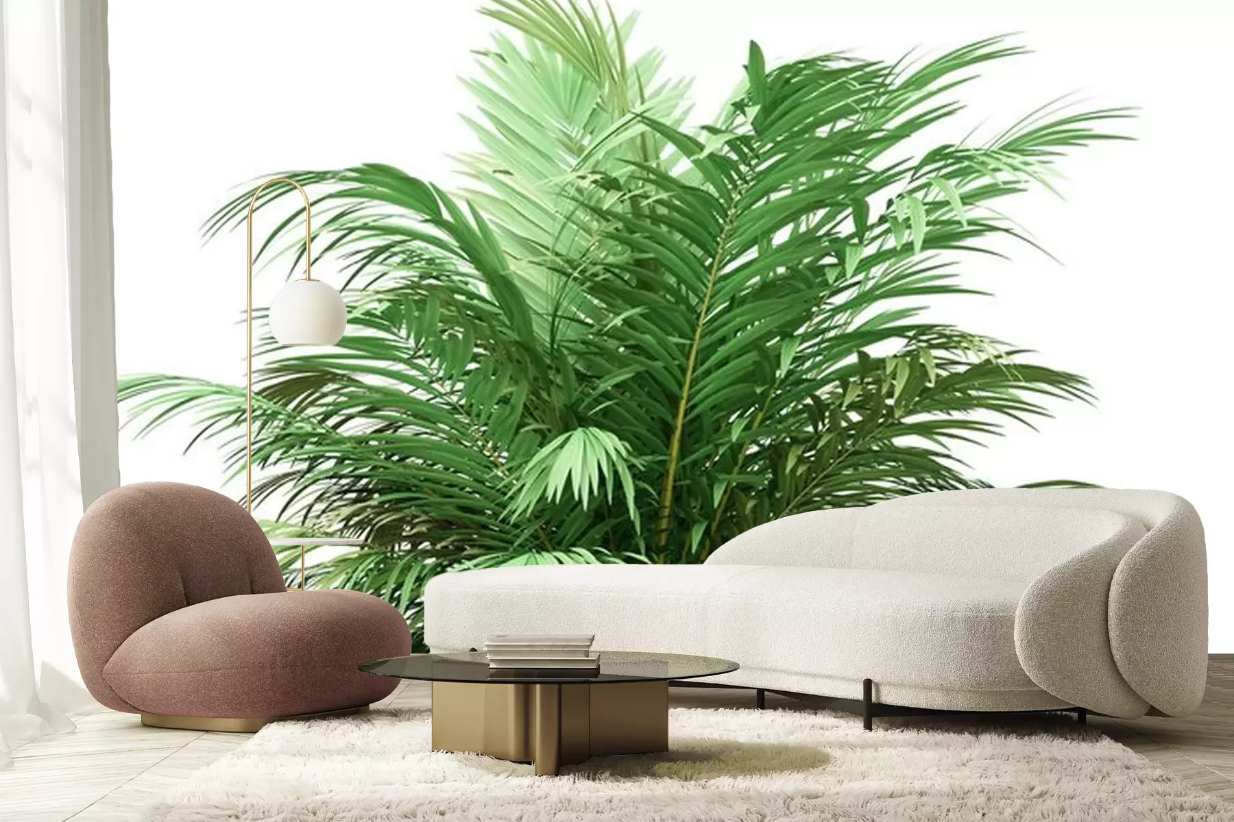 Fotobehang Groene palmboom op witte achtergrond