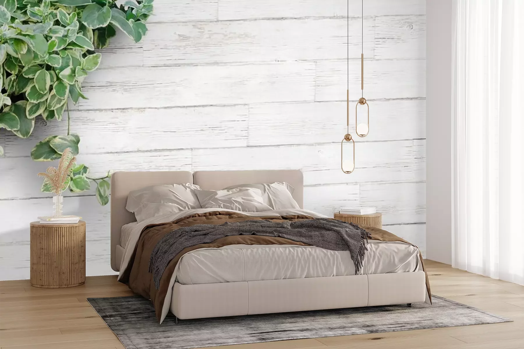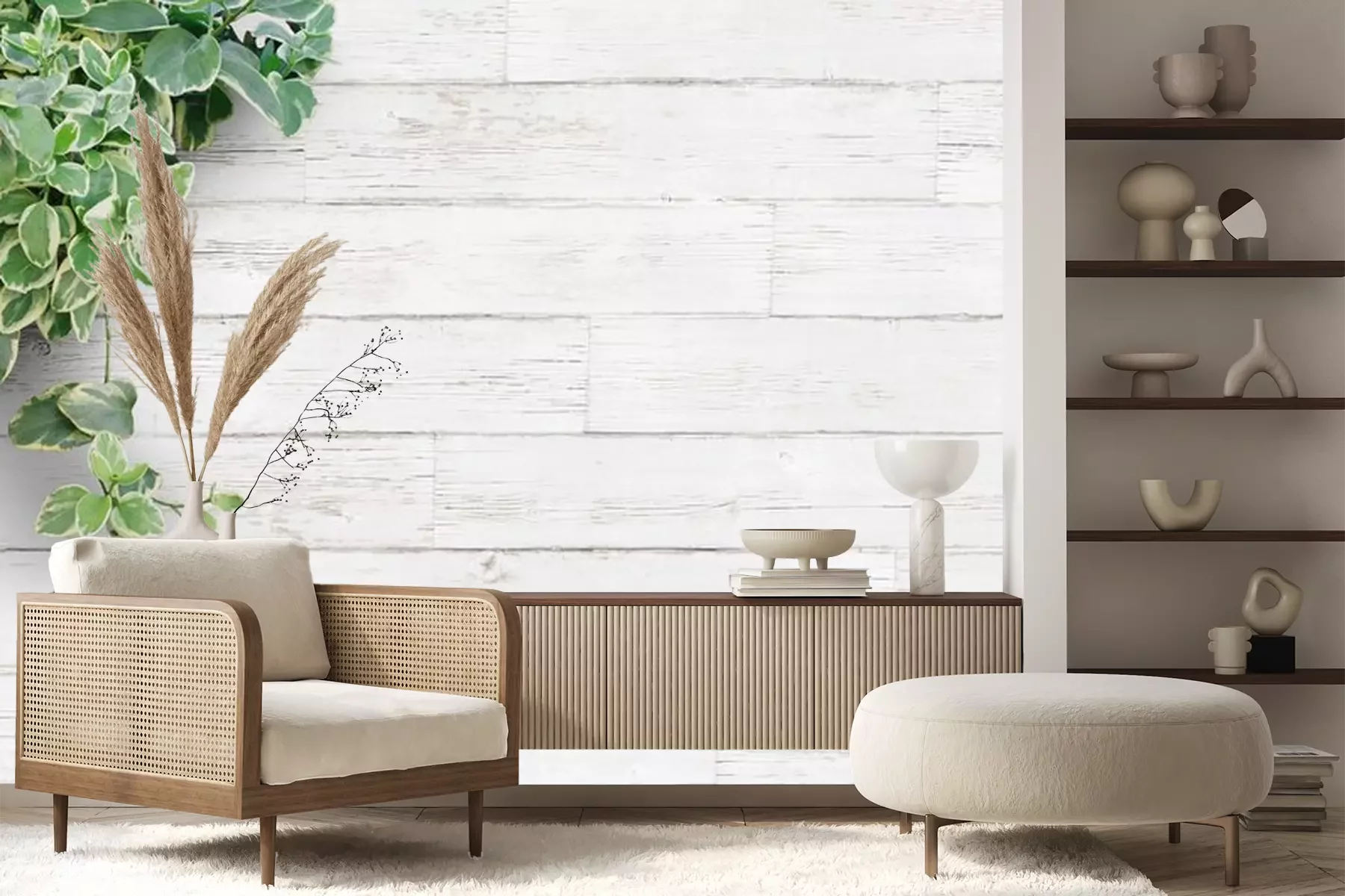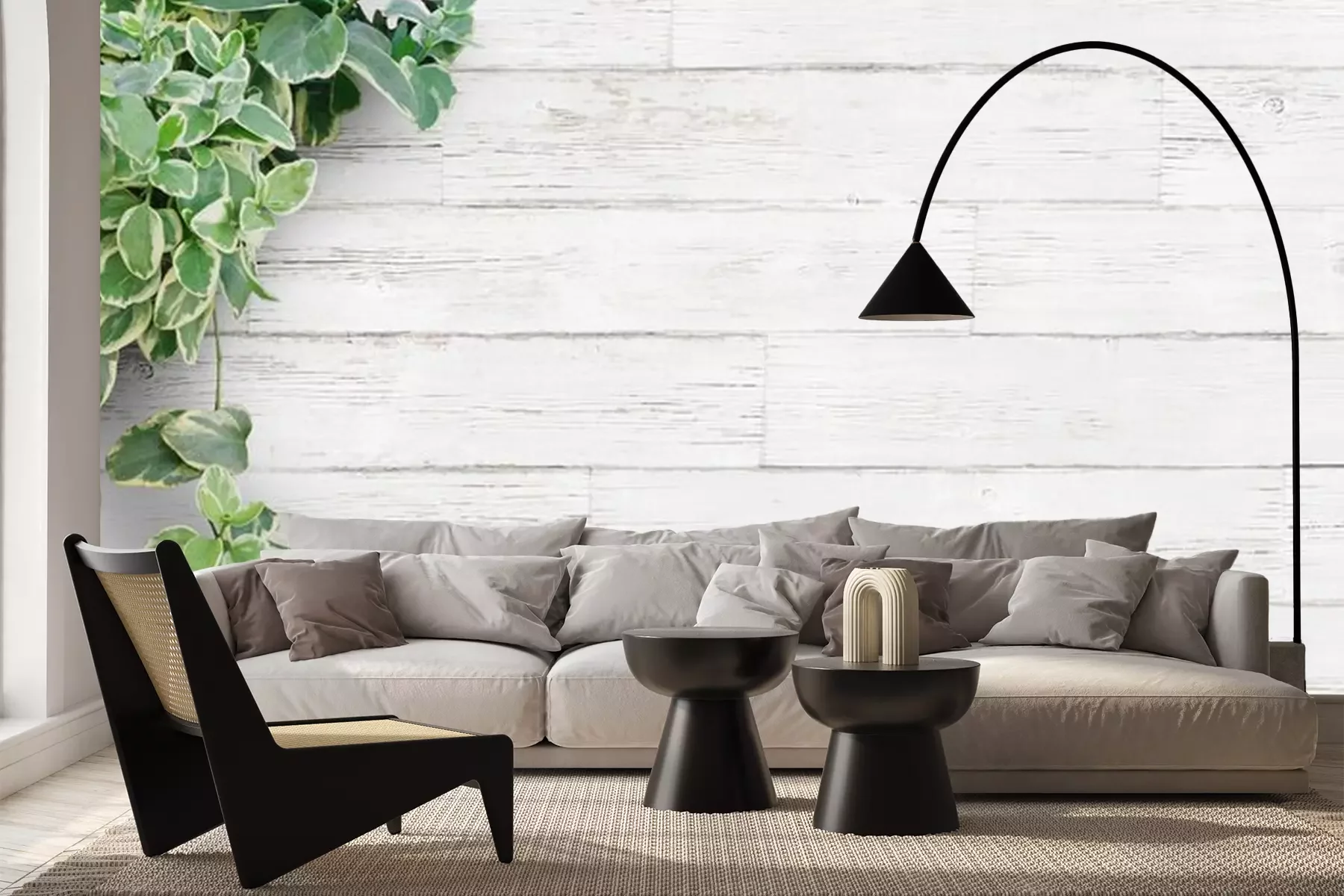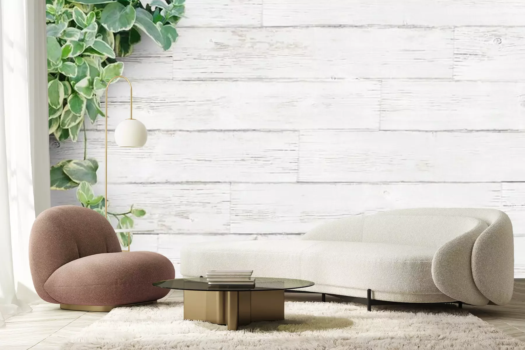 Fotobehang Groene plant op lichtgekleurde panelen