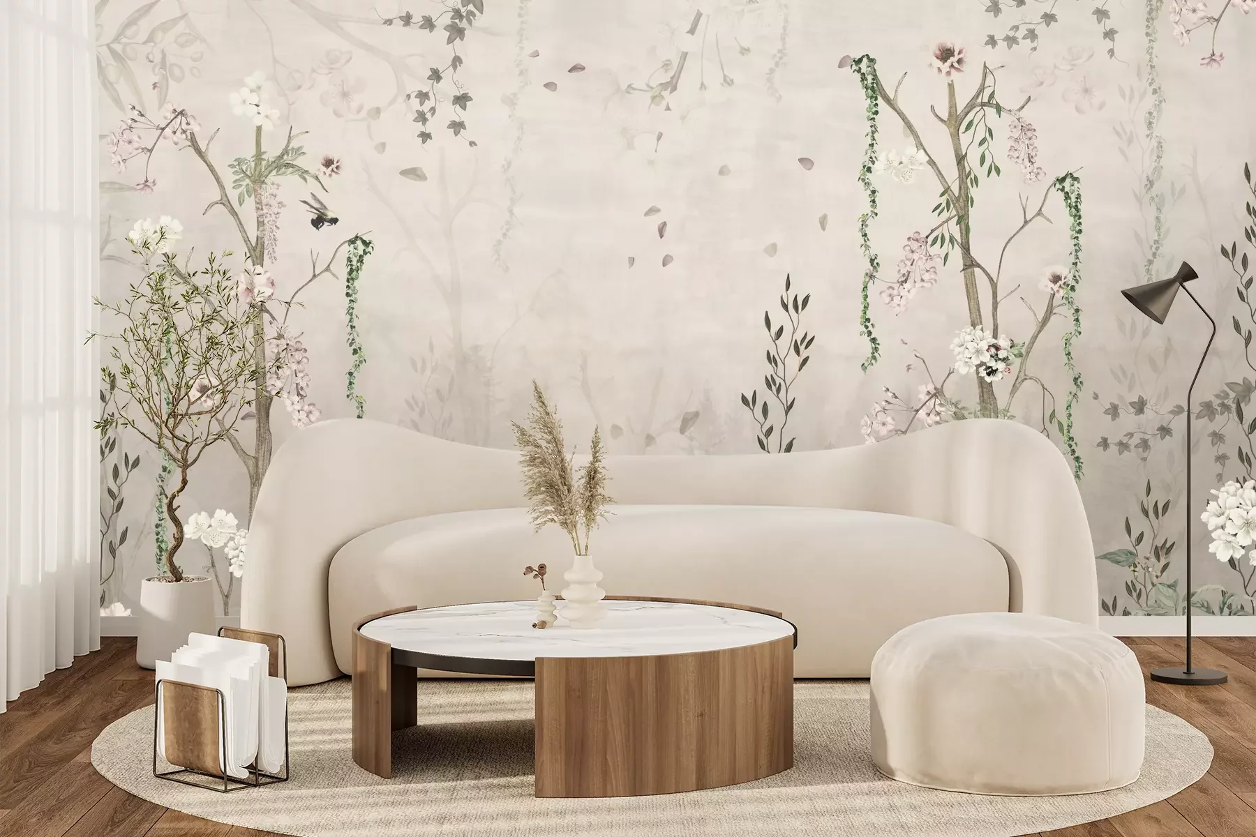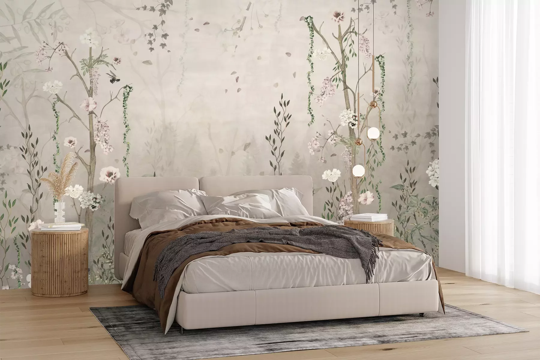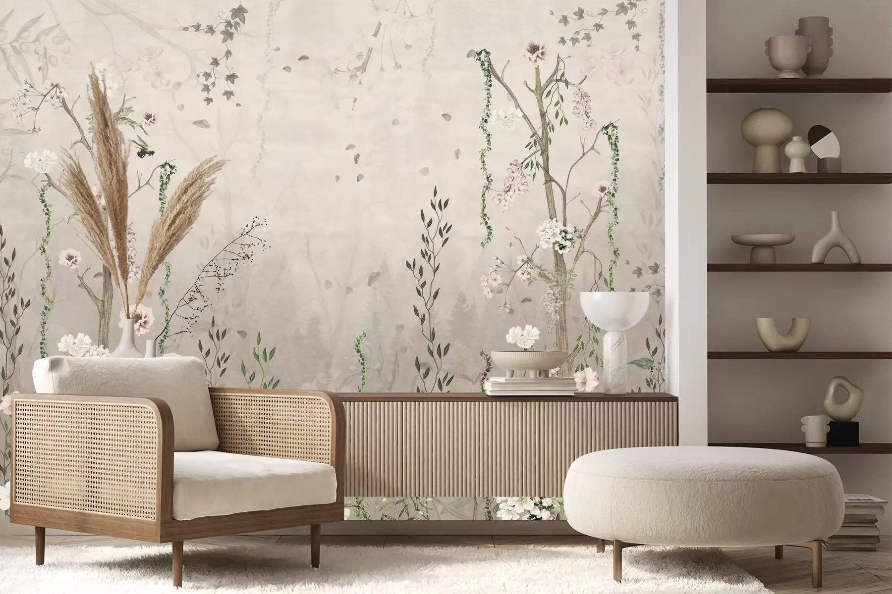 Het materiaal Premium+ is een gestructureerd vinyl op vlies met een gewicht van 255 g/m², dat kleine oneffenheden in de muur effectief camoufleert. De subtiele structuur van fijn zand geeft het oppervlak een exclusieve uitstraling, terwijl de halfmatte afwerking de diepte van de kleuren benadrukt. Het materiaal is dampdoorlatend, waardoor het ook in de keuken en badkamer kan worden gebruikt. De maximale breedte van één baan bedraagt 100 cm – bij grotere afmetingen wordt het fotobehang in meerdere gelijke banen verdeeld. De lijm wordt direct op de muur aangebracht en het behang wordt rand-aan-rand geplakt, wat zorgt voor een esthetisch resultaat zonder zichtbare naden. Het oppervlak kan gemakkelijk worden schoongemaakt door het voorzichtig af te nemen met een vochtige doek.