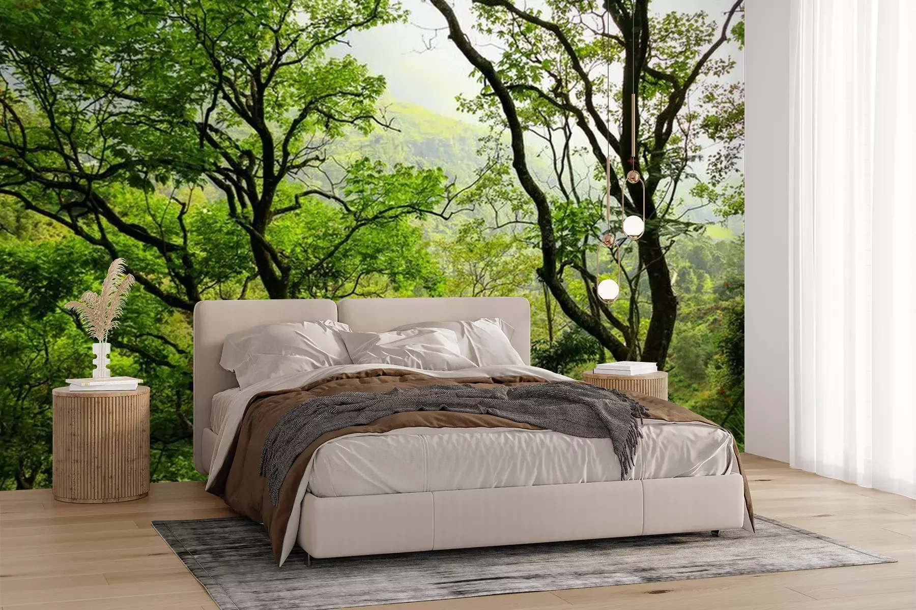 Het materiaal Premium+ is een gestructureerd vinyl op vlies met een gewicht van 255 g/m², dat kleine oneffenheden in de muur effectief camoufleert. De subtiele structuur van fijn zand geeft het oppervlak een exclusieve uitstraling, terwijl de halfmatte afwerking de diepte van de kleuren benadrukt. Het materiaal is dampdoorlatend, waardoor het ook in de keuken en badkamer kan worden gebruikt. De maximale breedte van één baan bedraagt 100 cm – bij grotere afmetingen wordt het fotobehang in meerdere gelijke banen verdeeld. De lijm wordt direct op de muur aangebracht en het behang wordt rand-aan-rand geplakt, wat zorgt voor een esthetisch resultaat zonder zichtbare naden. Het oppervlak kan gemakkelijk worden schoongemaakt door het voorzichtig af te nemen met een vochtige doek.