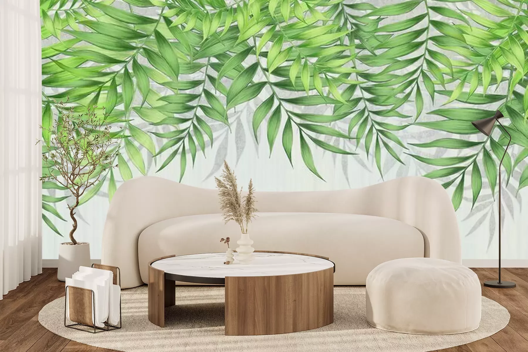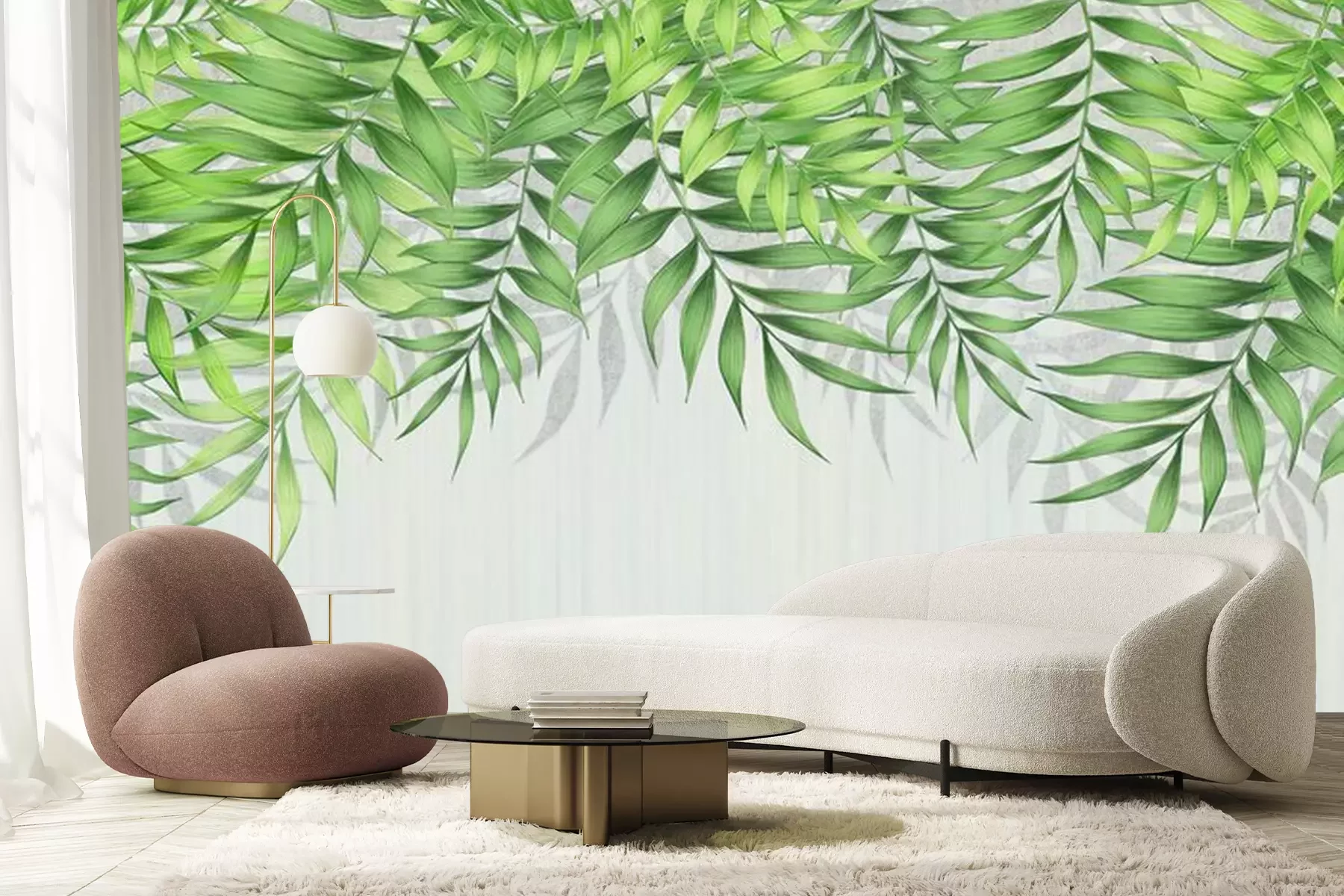Fotobehang Groene tropische bladeren die van bovenaf hangen