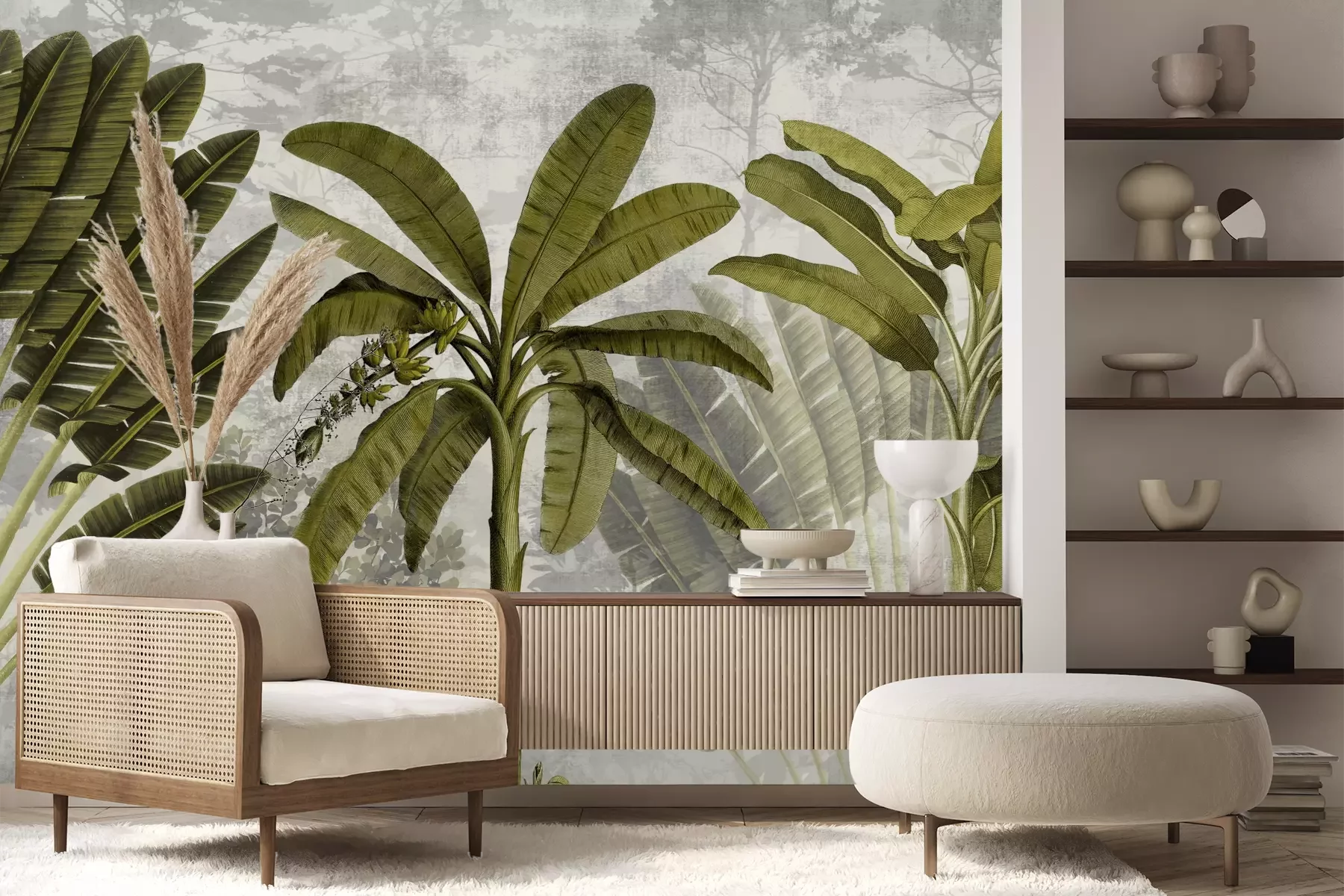 Het materiaal Premium+ is een gestructureerd vinyl op vlies met een gewicht van 255 g/m², dat kleine oneffenheden in de muur effectief camoufleert. De subtiele structuur van fijn zand geeft het oppervlak een exclusieve uitstraling, terwijl de halfmatte afwerking de diepte van de kleuren benadrukt. Het materiaal is dampdoorlatend, waardoor het ook in de keuken en badkamer kan worden gebruikt. De maximale breedte van één baan bedraagt 100 cm – bij grotere afmetingen wordt het fotobehang in meerdere gelijke banen verdeeld. De lijm wordt direct op de muur aangebracht en het behang wordt rand-aan-rand geplakt, wat zorgt voor een esthetisch resultaat zonder zichtbare naden. Het oppervlak kan gemakkelijk worden schoongemaakt door het voorzichtig af te nemen met een vochtige doek.